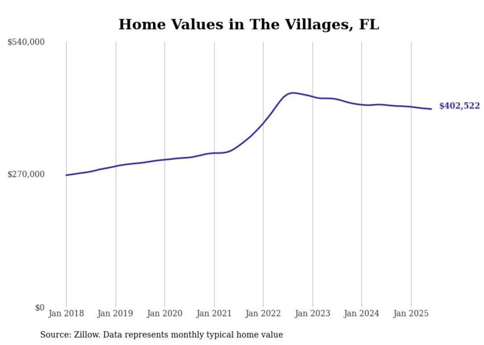 Stacker compiled a list of cities with the most expensive homes in the The Villages, FL metro area using data from Zillow. Charts show the monthly typical home value since January 2018.