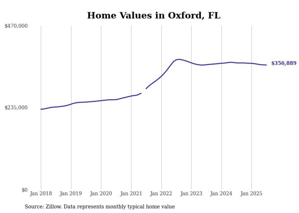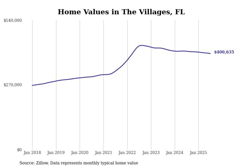 Stacker compiled a list of cities with the most expensive homes in the The Villages metro area using data from Zillow. Charts show the monthly typical home value since January 2018. All 8 cities and towns with data available were included in the list.