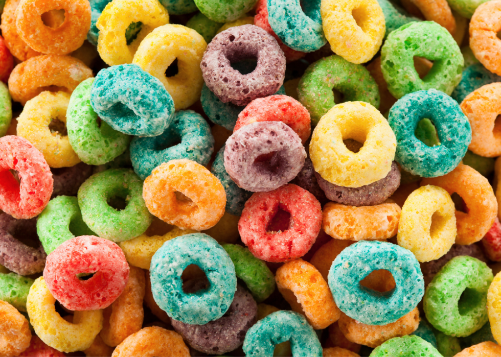 This colorful breakfast cereal gets its rainbow hue by using additives Yellow 5, Yellow 6, and Red 40, which must contain warning labels in the European Union. They are also banned in Norway and Austria. They are permitted in the U.S. even though they are known to cause itching and hives for some.