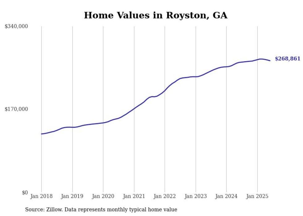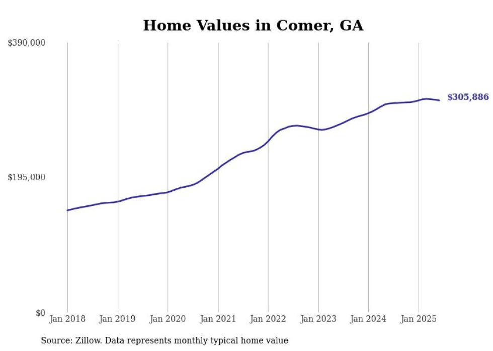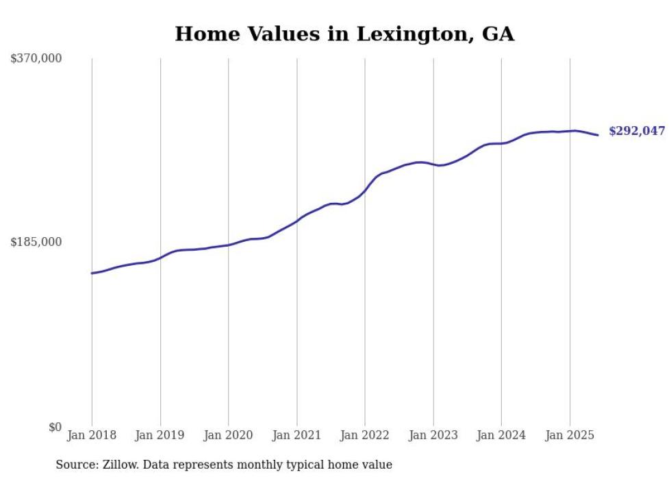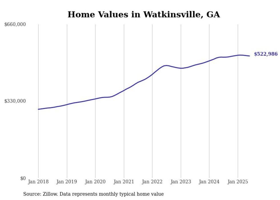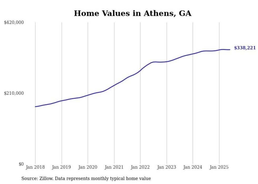 Stacker compiled a list of cities with the most expensive homes in the Athens-Clarke County, GA metro area using data from Zillow. Charts show the monthly typical home value since January 2018.