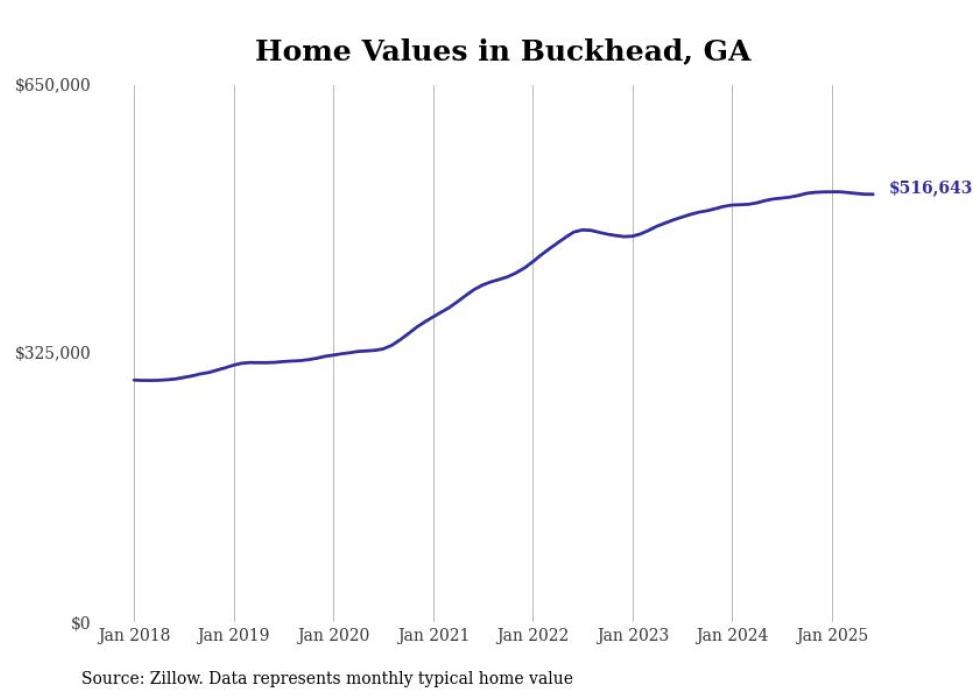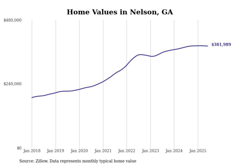 Stacker compiled a list of cities with the most expensive homes in the Atlanta-Sandy Springs-Alpharetta, GA metro area using data from Zillow. Charts show the monthly typical home value since January 2018.
