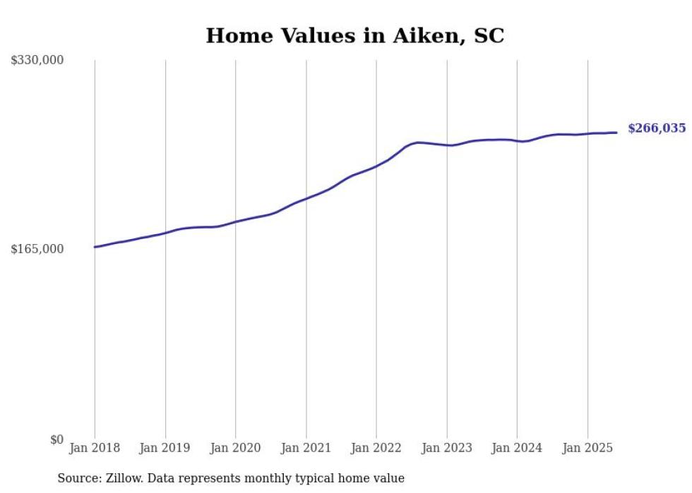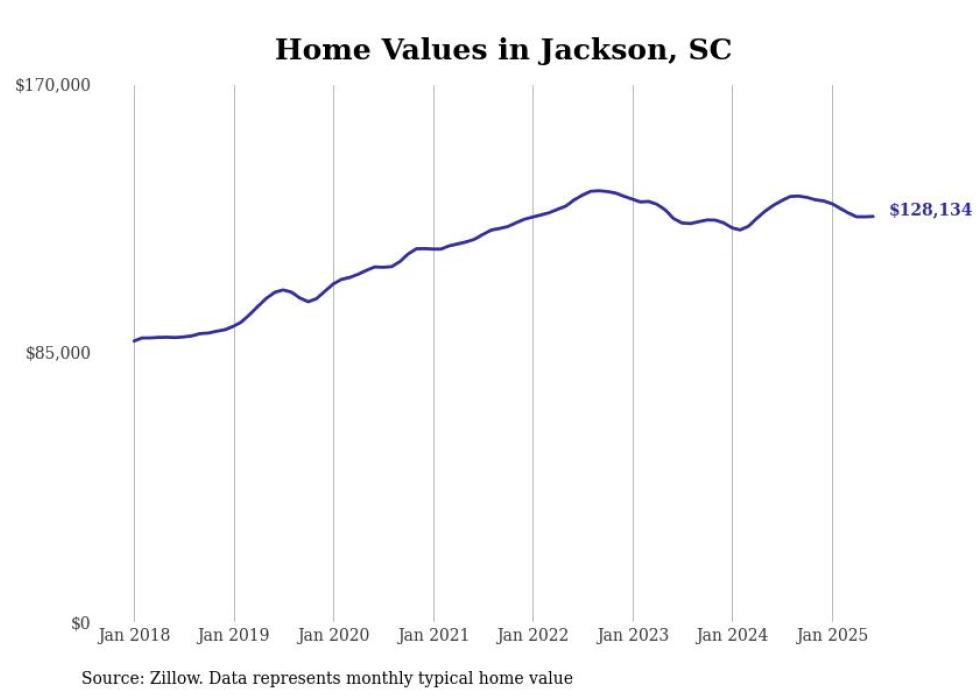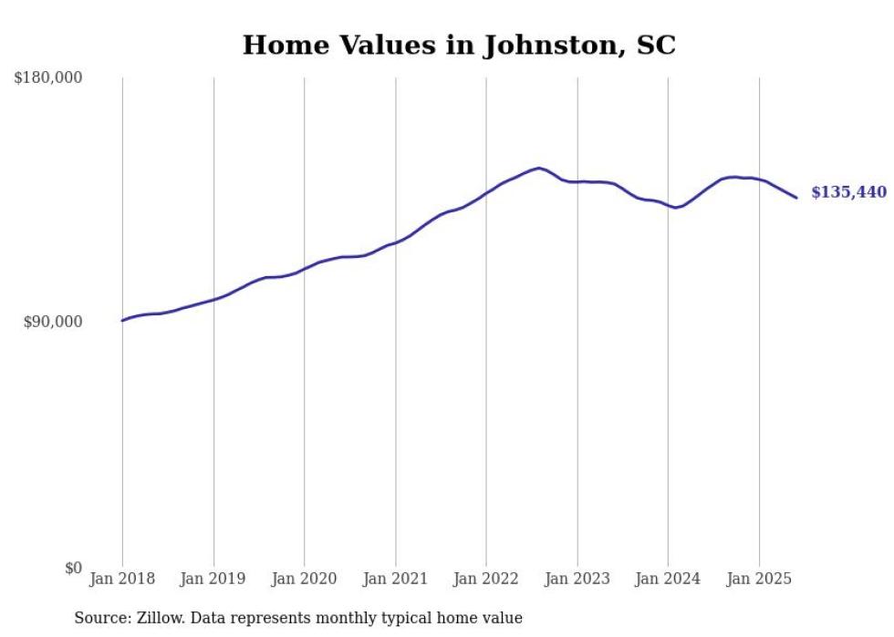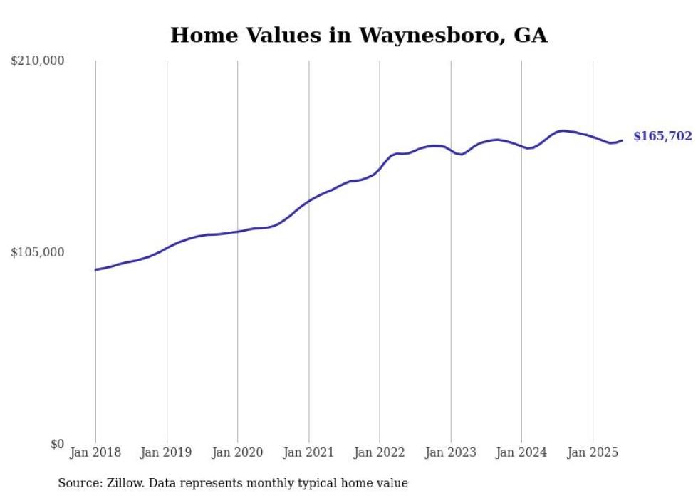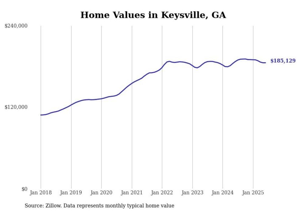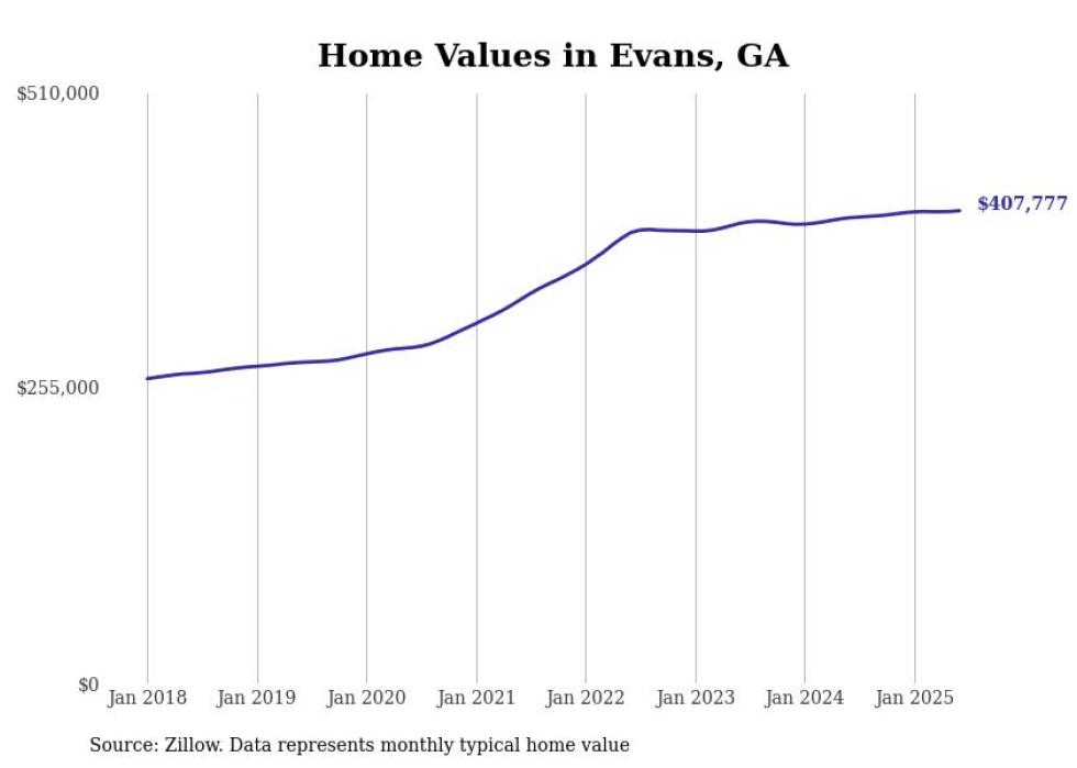Stacker compiled a list of cities with the most expensive homes in the Augusta-Richmond County, GA-SC metro area using data from Zillow. Charts show the monthly typical home value since January 2018.