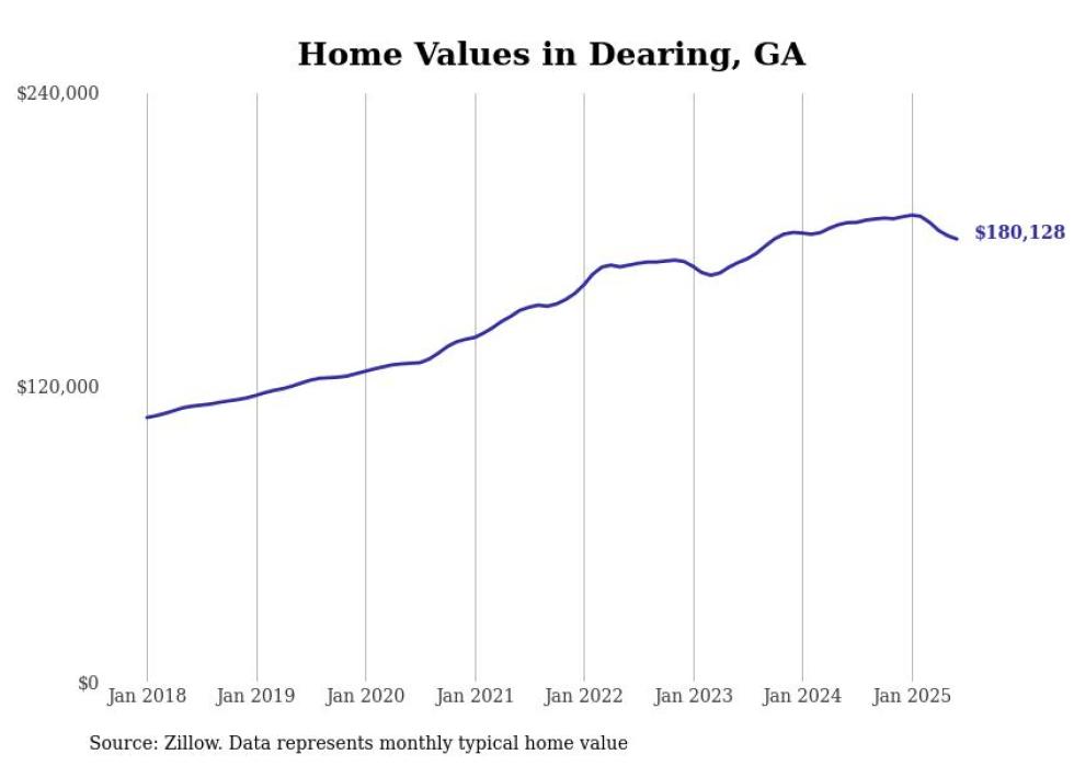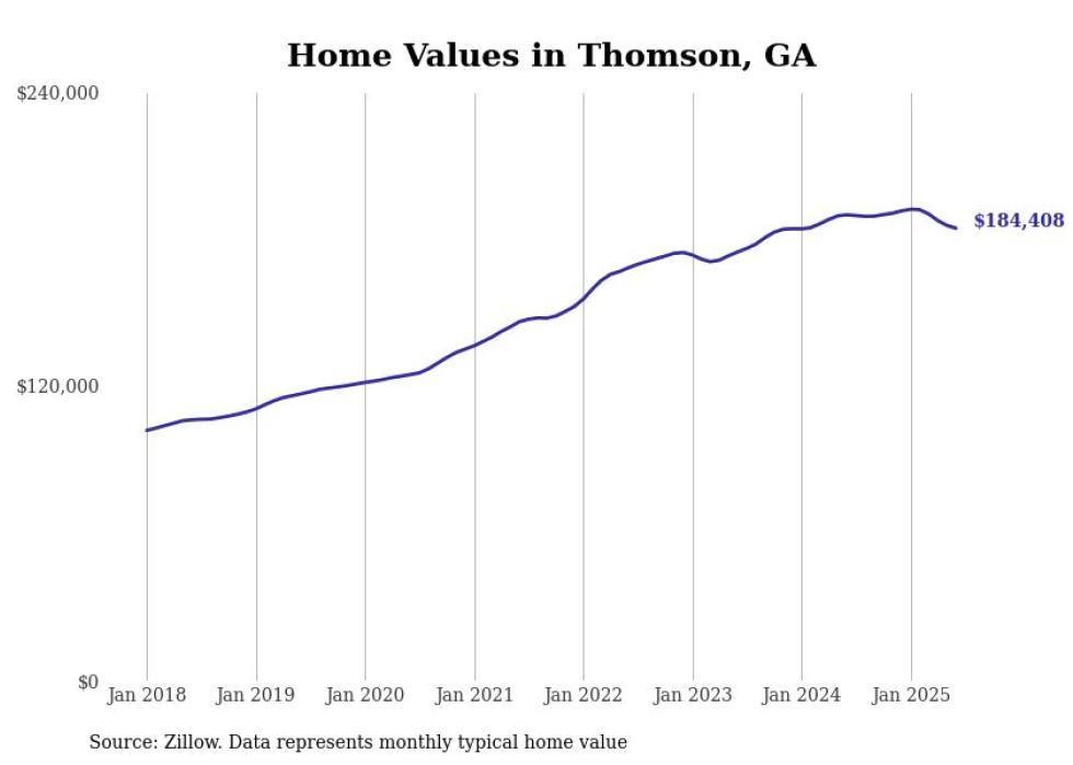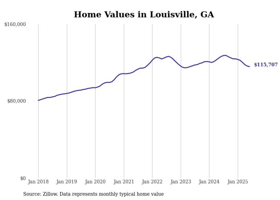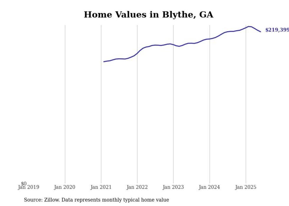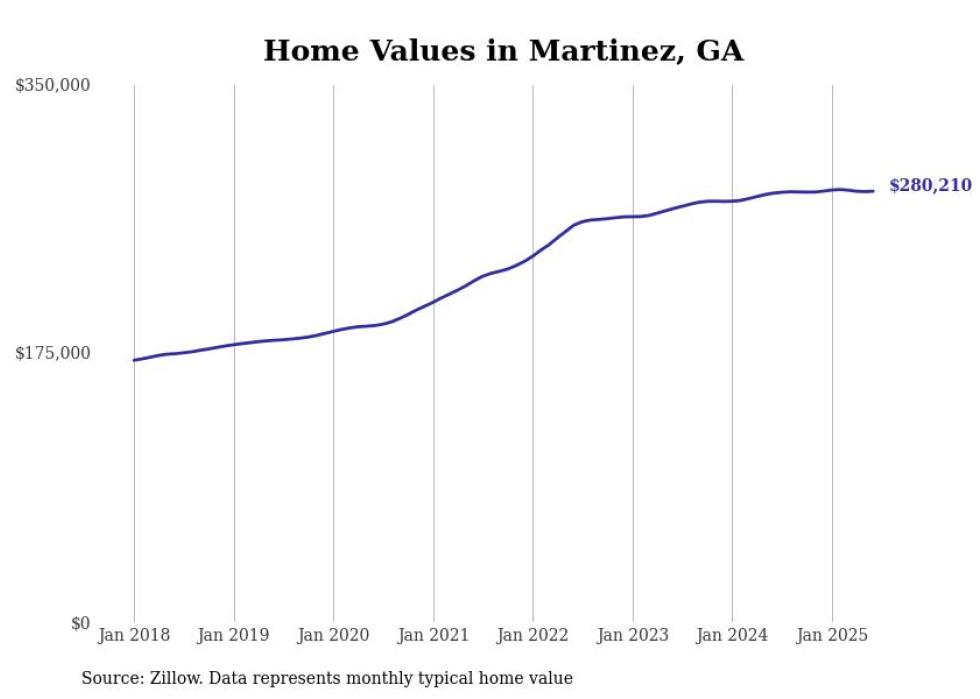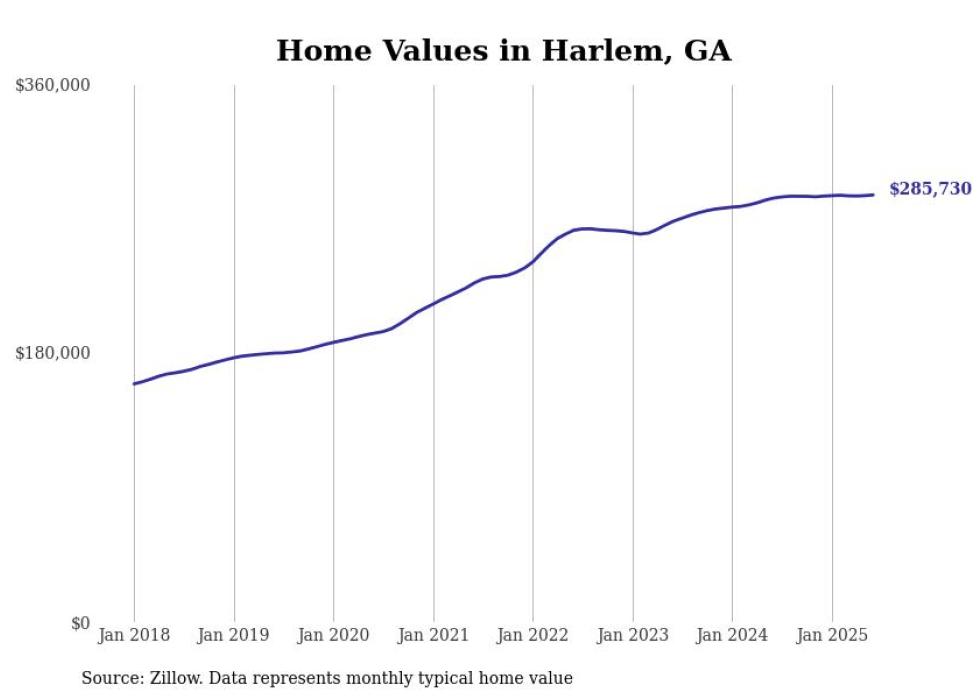 Stacker compiled a list of cities with the most expensive homes in the Augusta-Richmond County, GA-SC metro area using data from Zillow. Charts show the monthly typical home value since January 2018.