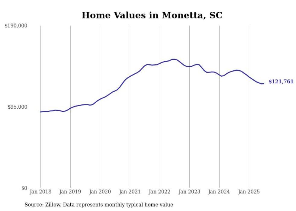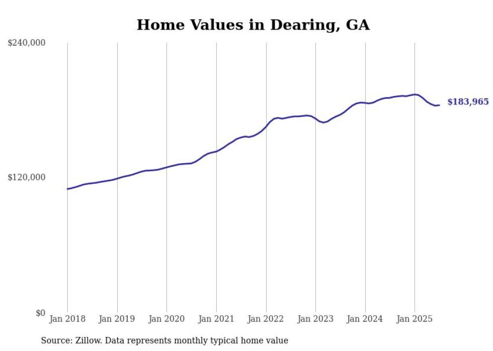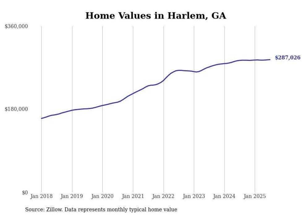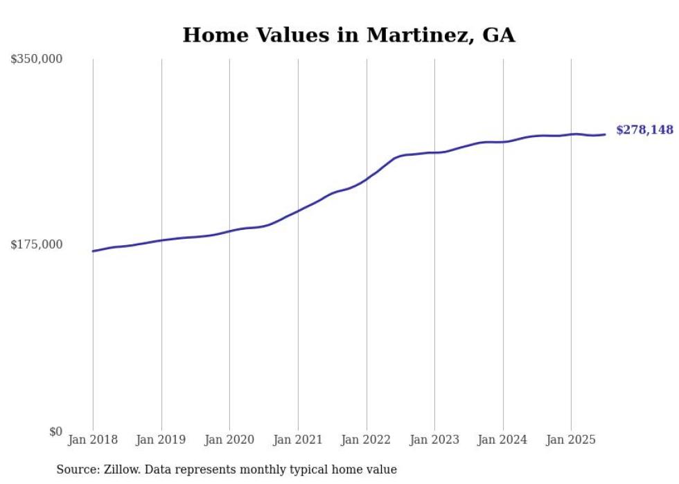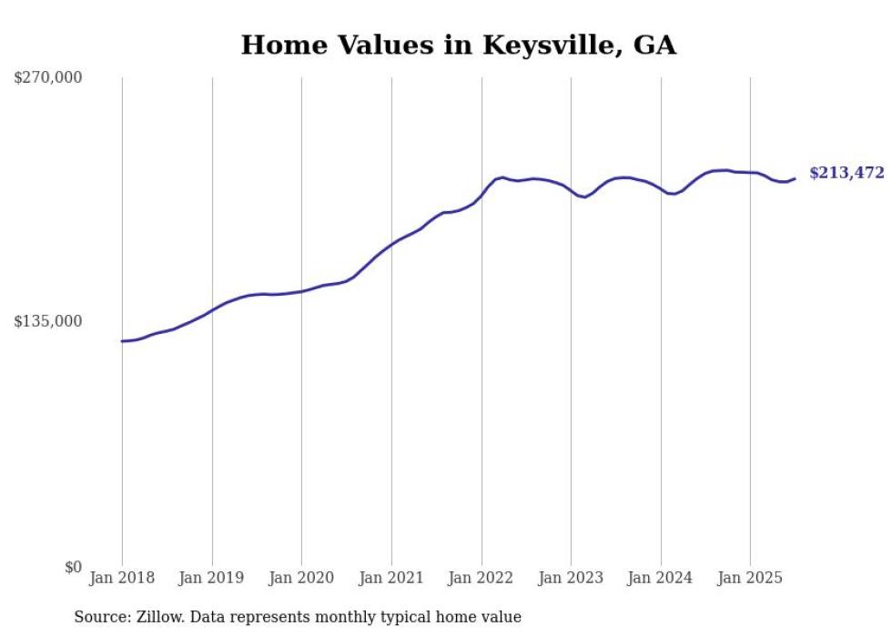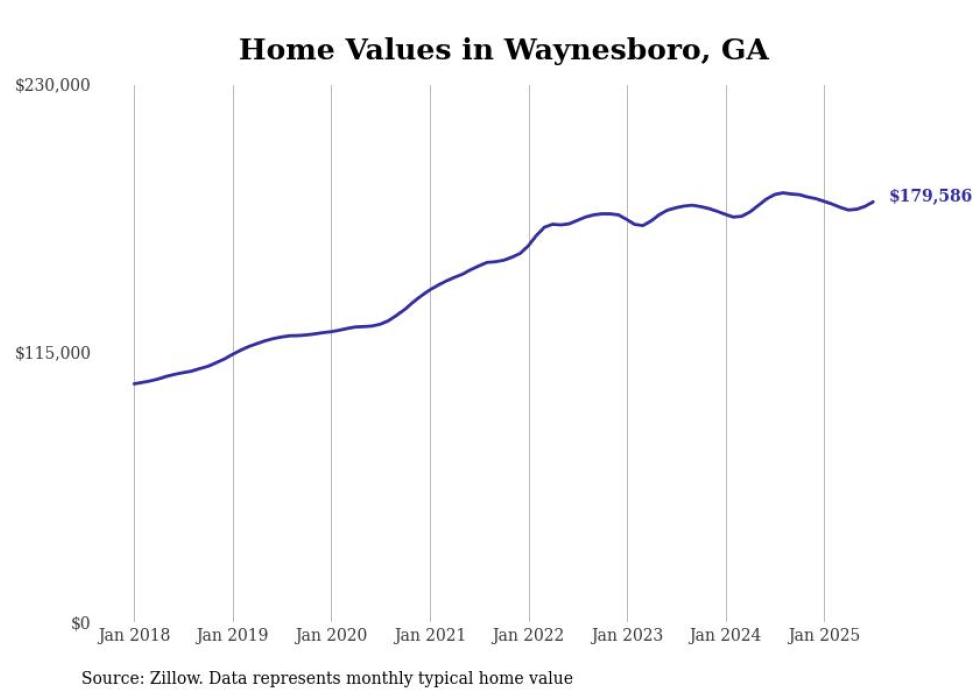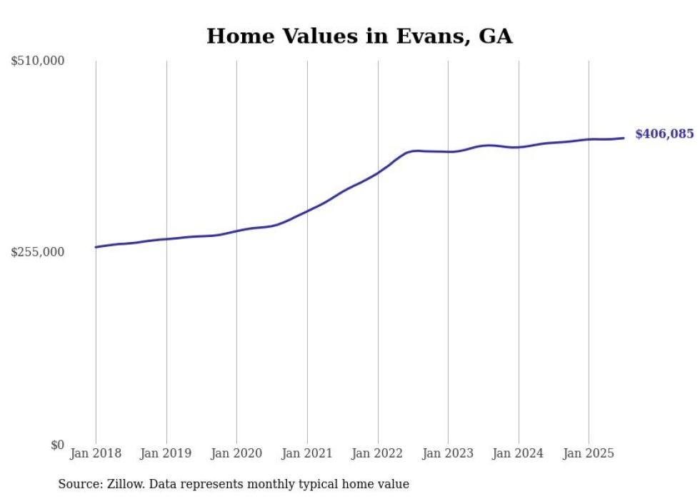 Stacker compiled a list of cities with the most expensive homes in the Augusta metro area using data from Zillow. Charts show the monthly typical home value since January 2018. Data was available for 34 cities and towns.