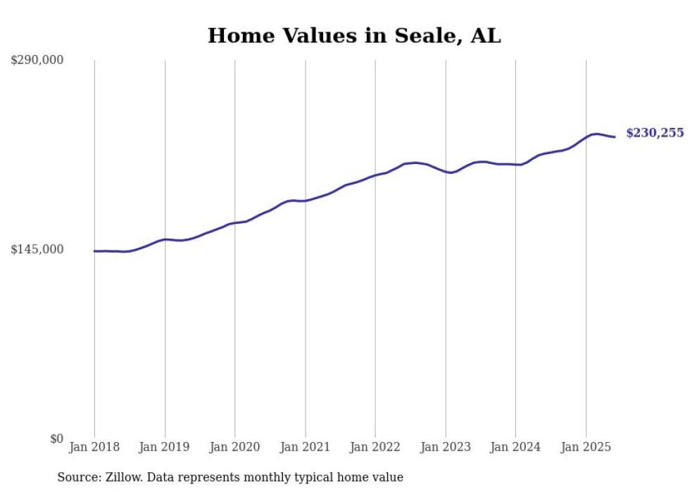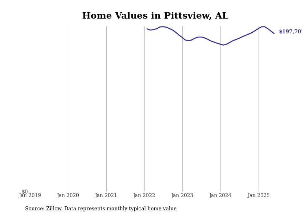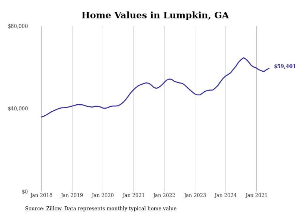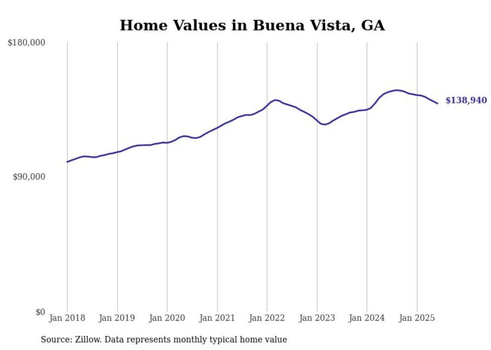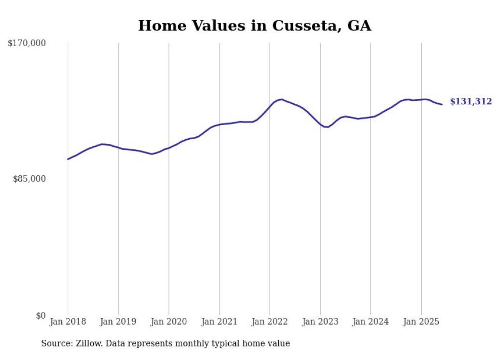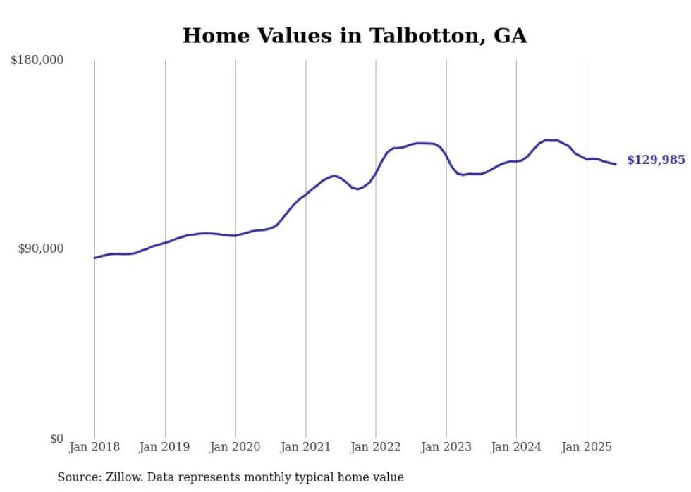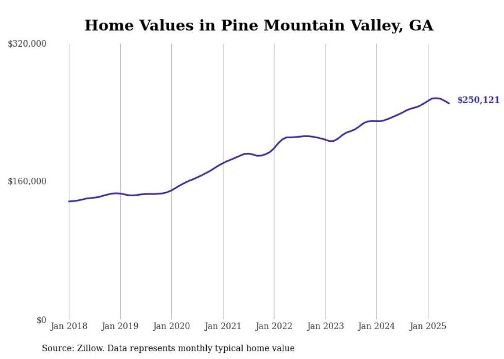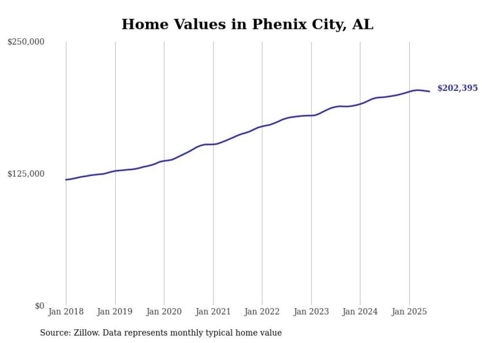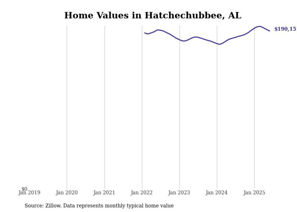 Stacker compiled a list of cities with the most expensive homes in the Columbus, GA-AL metro area using data from Zillow. Charts show the monthly typical home value since January 2018.