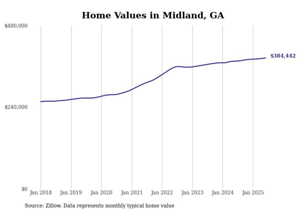 Cities with the fastest-growing home prices in the Columbus, Georgia metro area