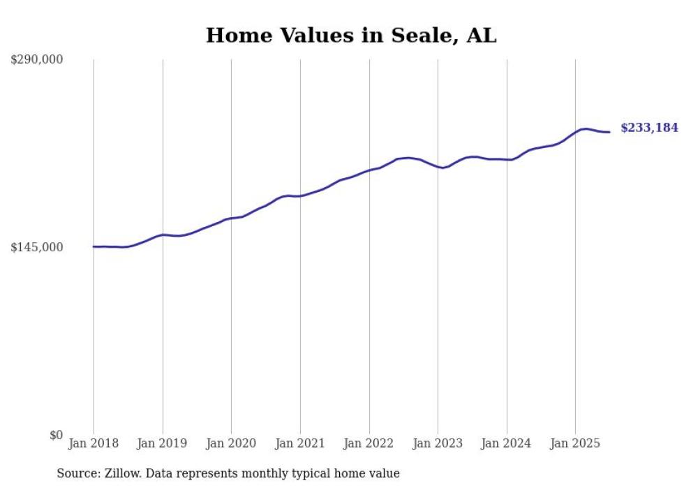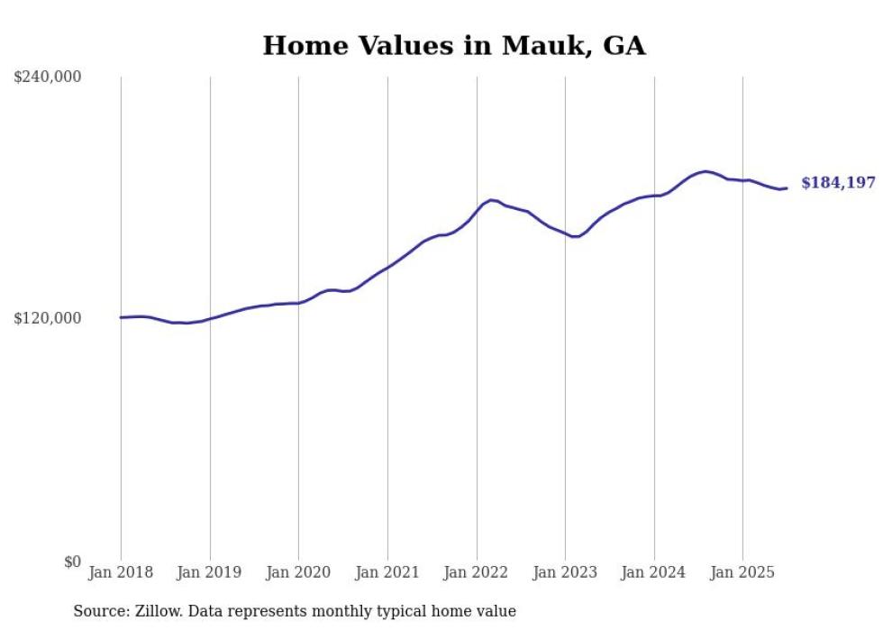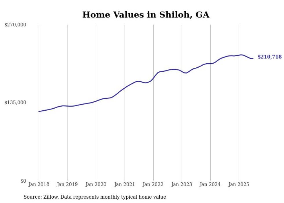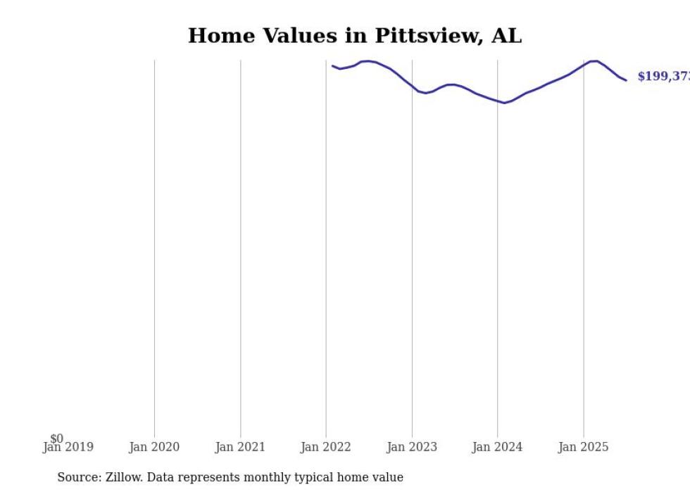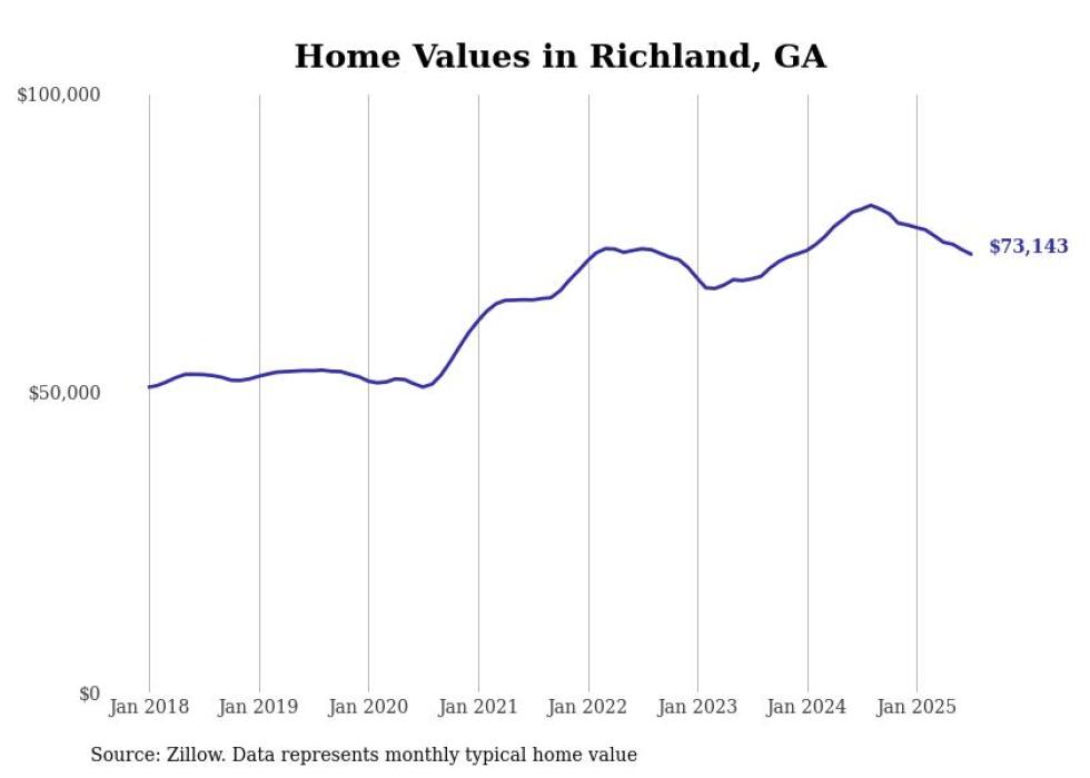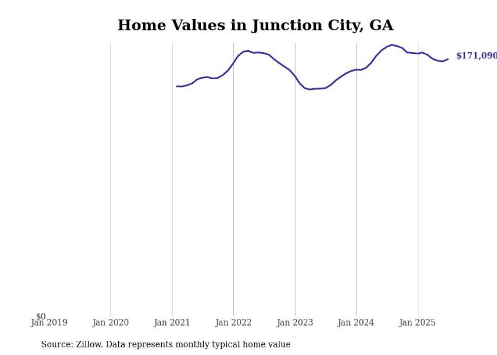 Stacker compiled a list of cities with the most expensive homes in the Columbus, Georgia metro area using data from Zillow. Charts show the monthly typical home value since January 2018. All 23 cities and towns with data available were included in the list.