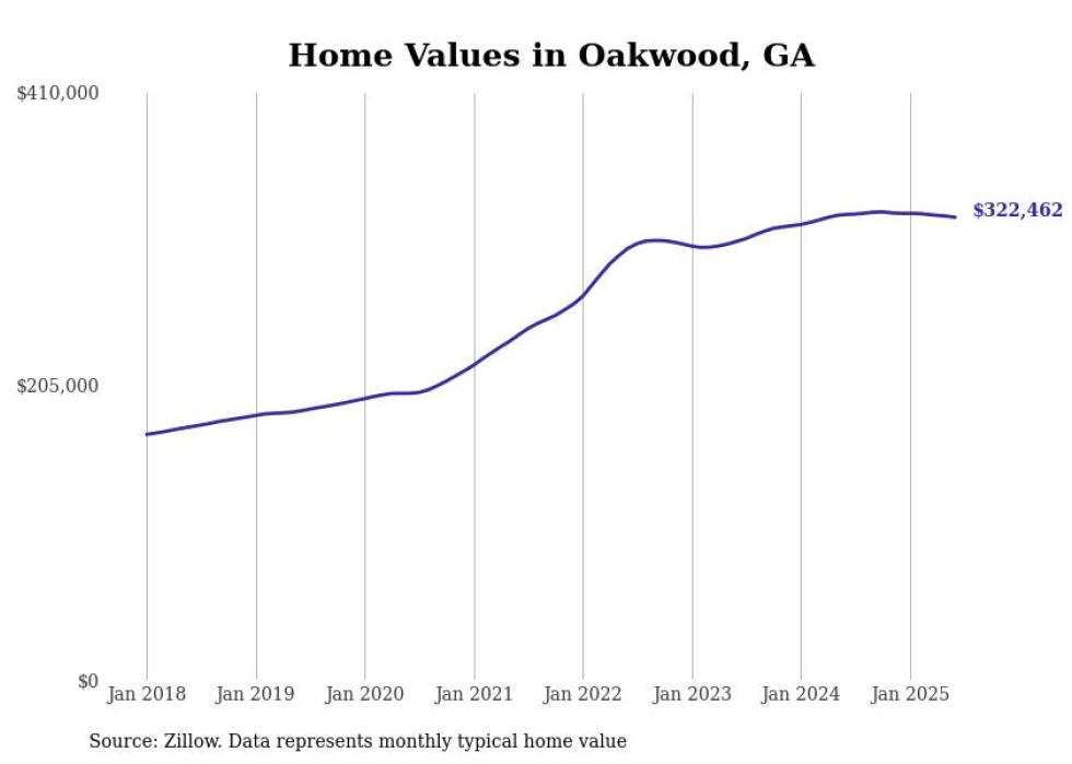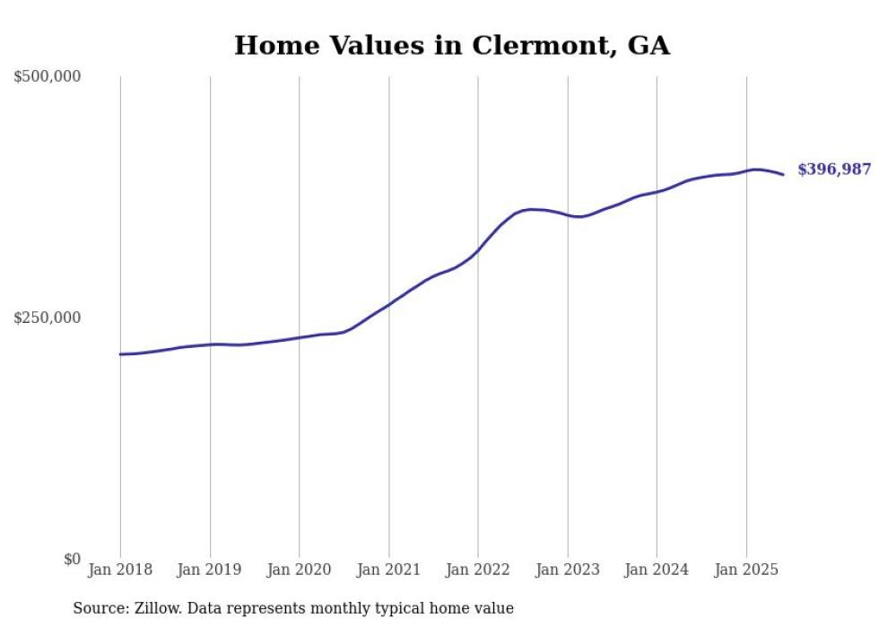 Cities with the fastest-growing home prices in the Gainesville, Georgia metro area
