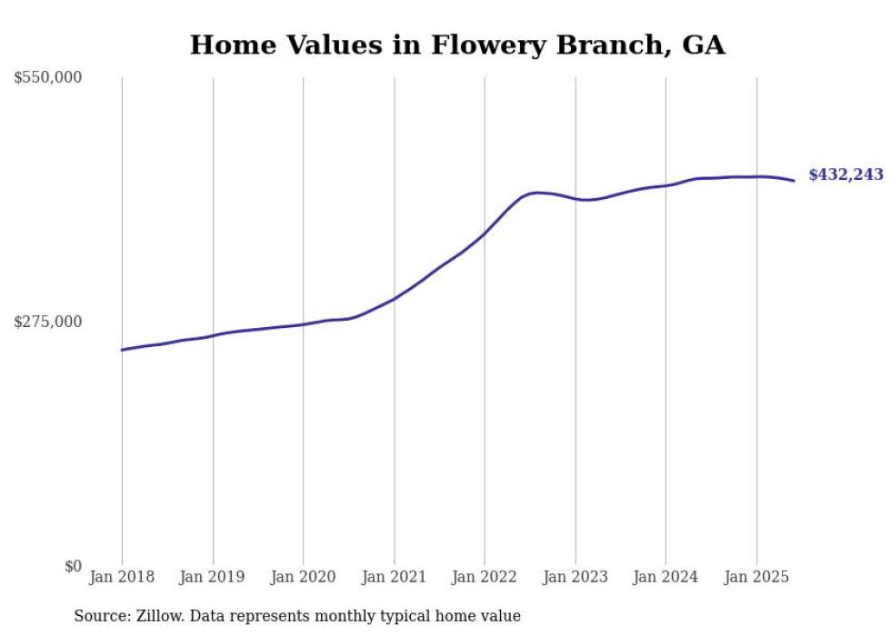 Stacker compiled a list of cities with the most expensive homes in the Gainesville, GA metro area using data from Zillow. Charts show the monthly typical home value since January 2018.