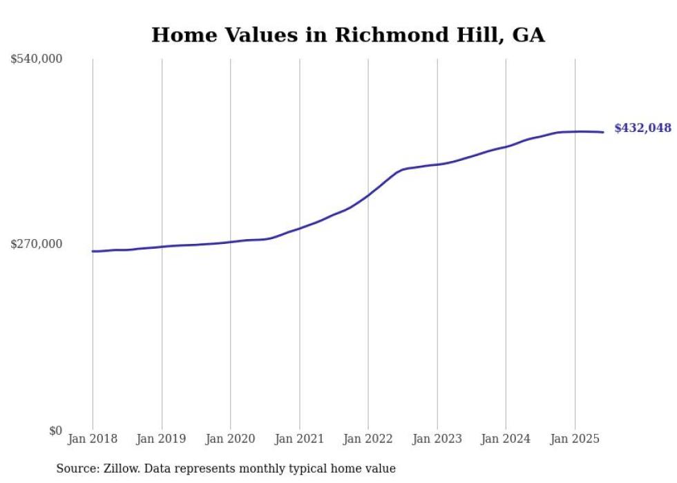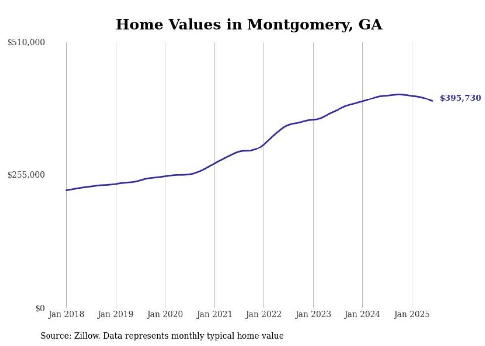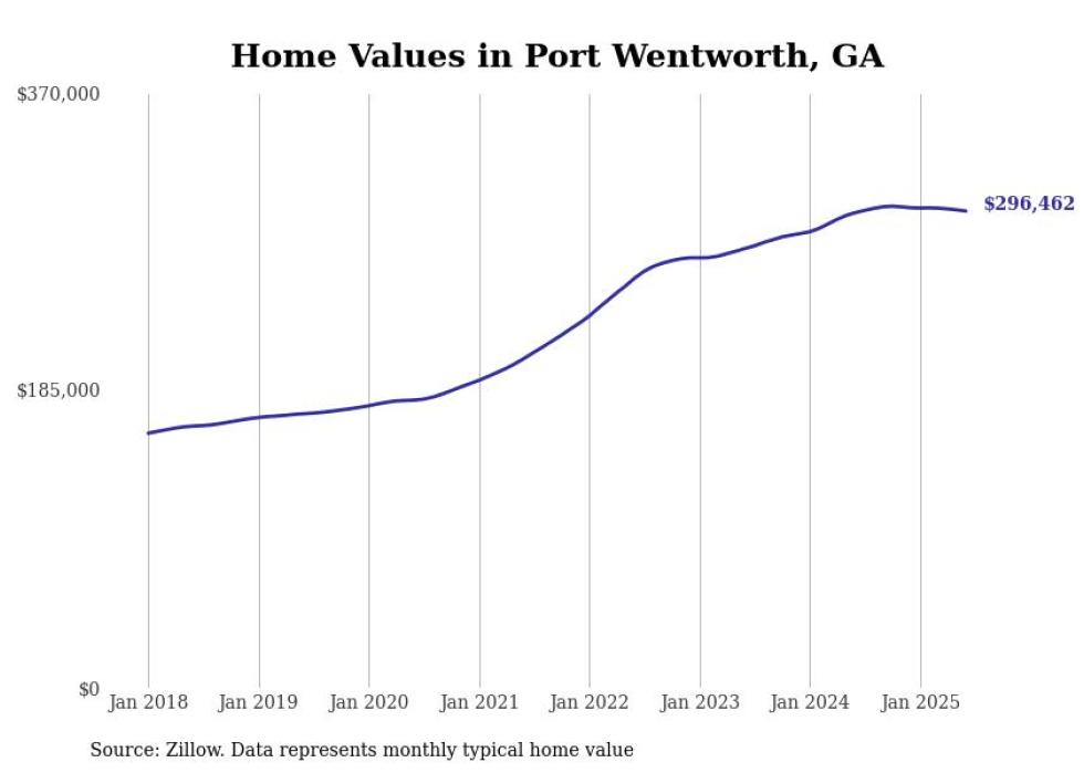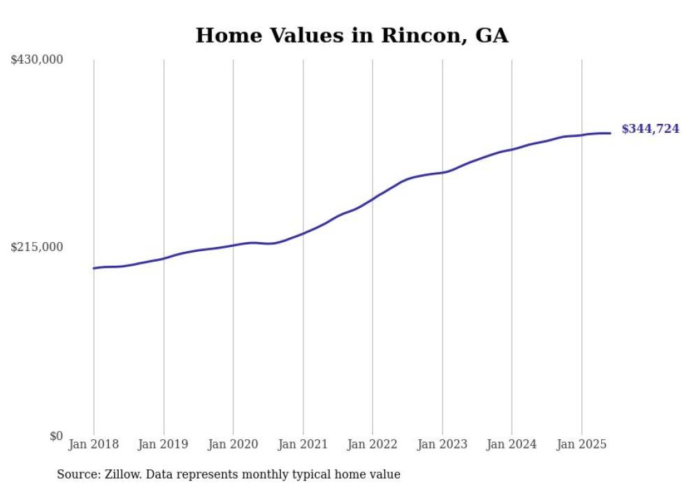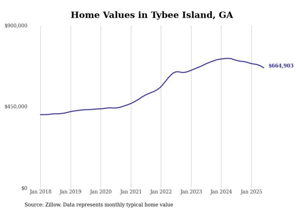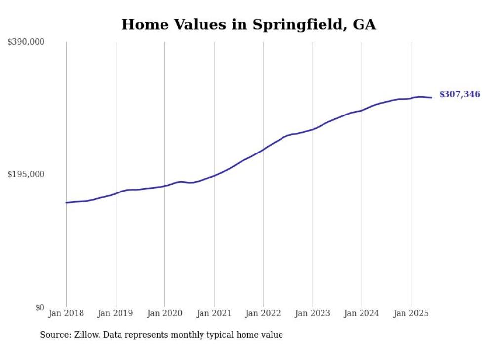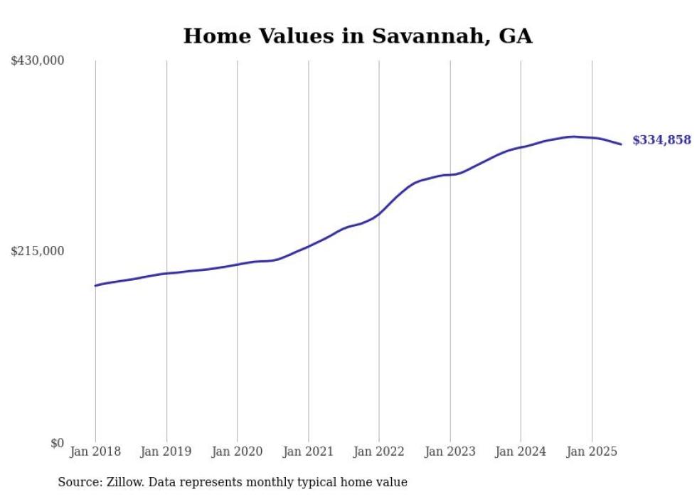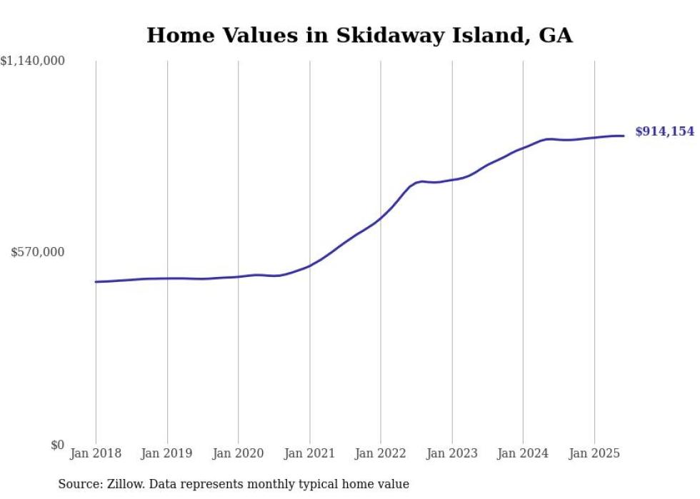 Stacker compiled a list of cities with the most expensive homes in the Savannah, GA metro area using data from Zillow. Charts show the monthly typical home value since January 2018.