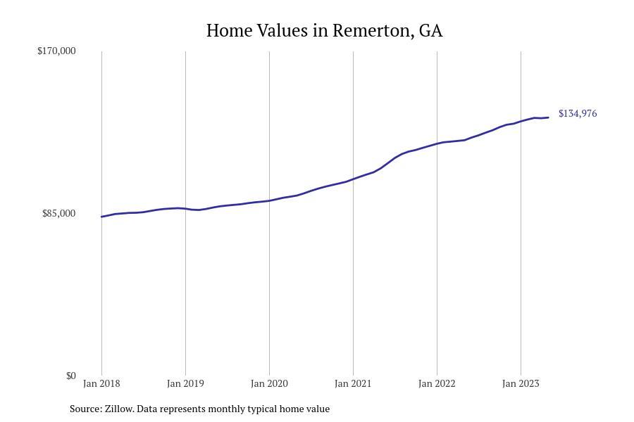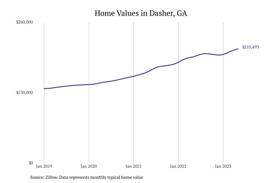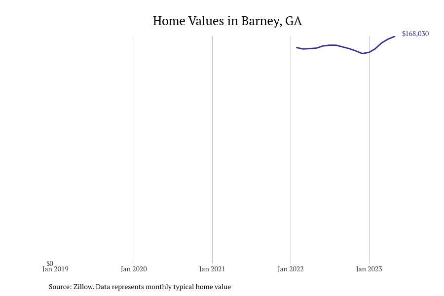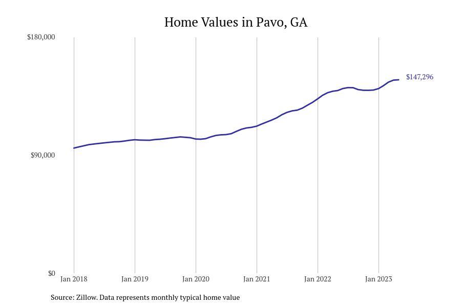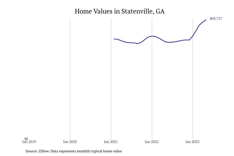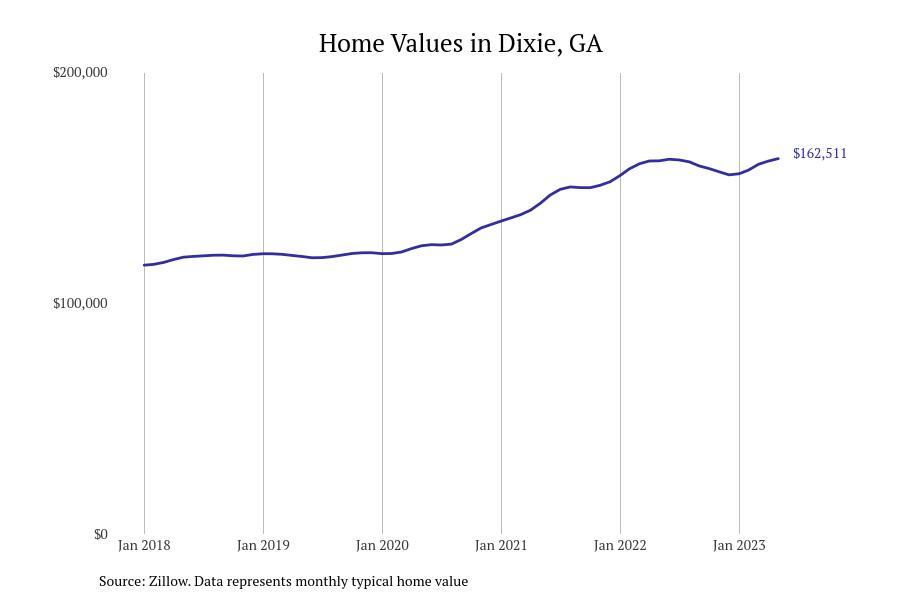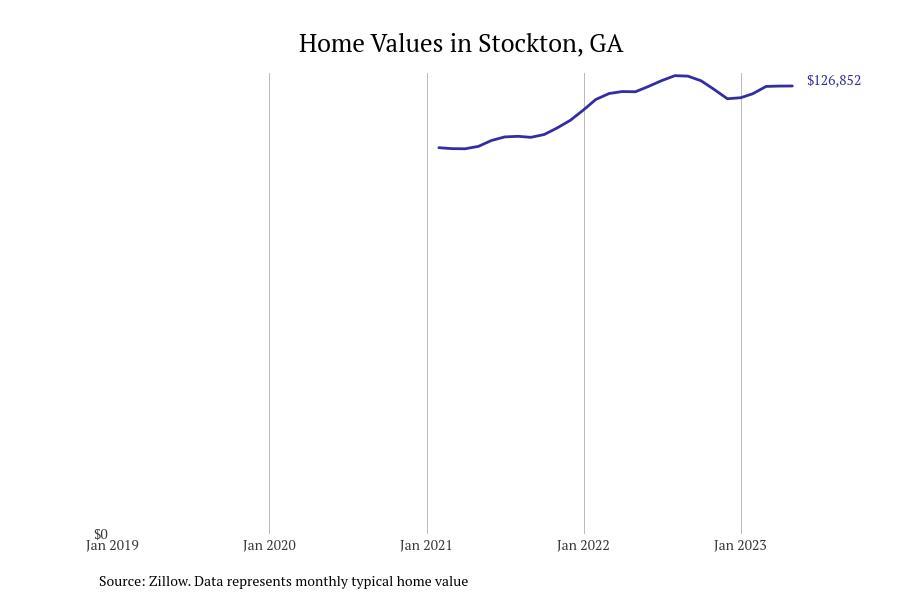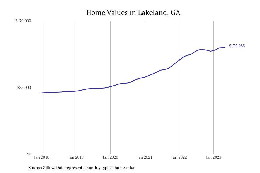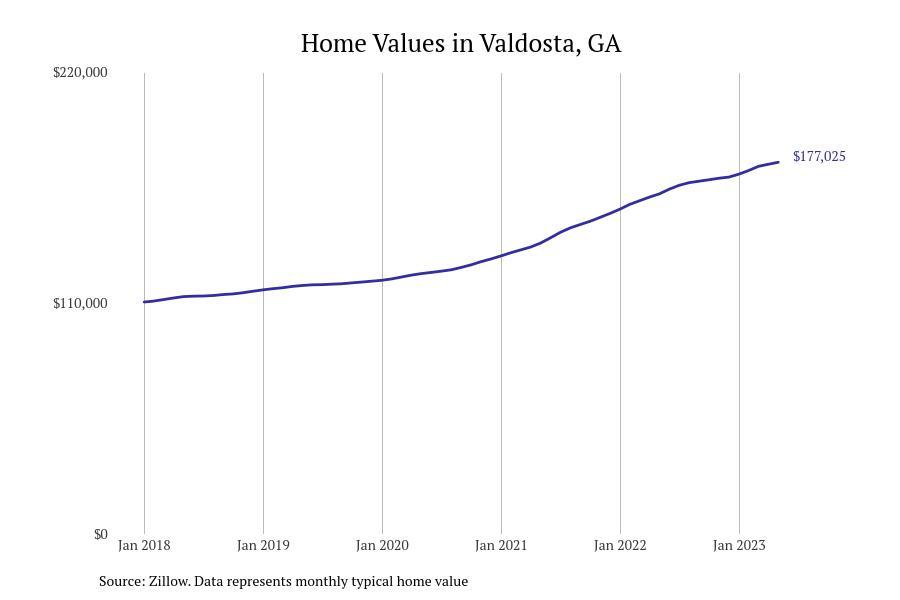 Stacker compiled a list of cities with the fastest-growing home prices in the Valdosta, GA metro area using data from Zillow. Cities are ranked by 1-year price change as of May 2023. The typical home value in the United States increased over the last year by 0.9% to $346,856. All 17 cities and towns with data available were included in the list.