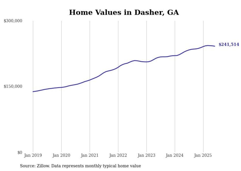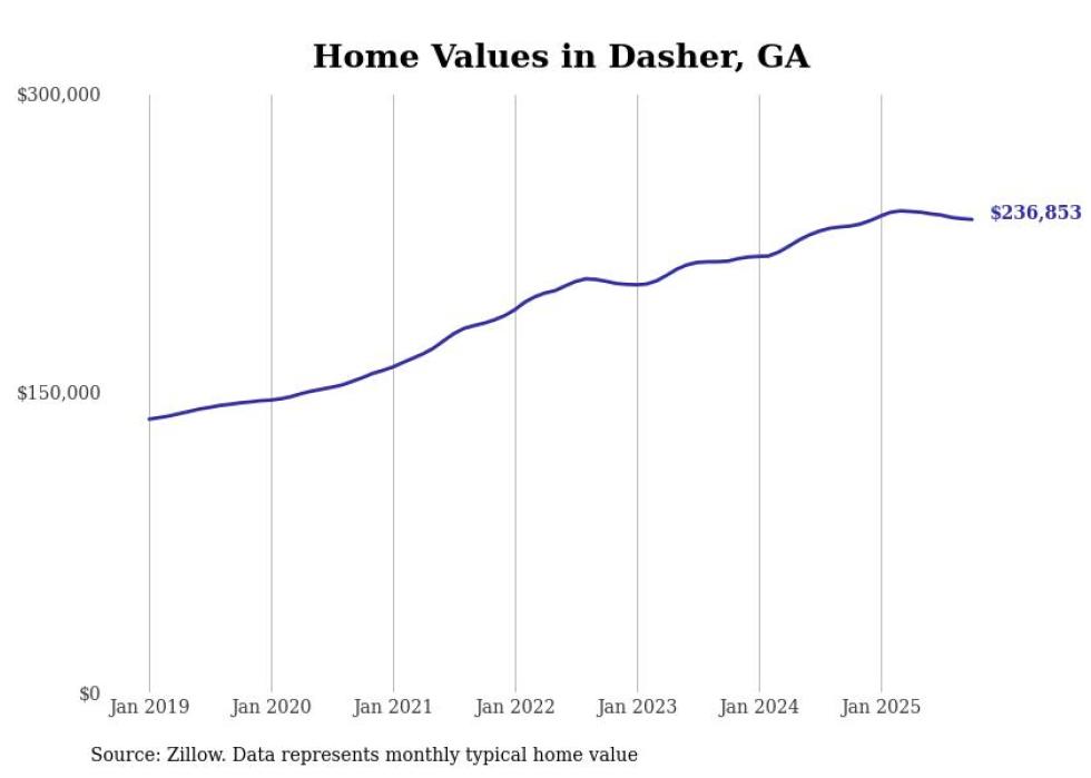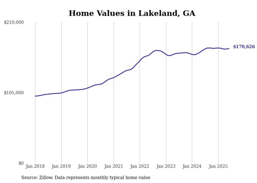 Stacker compiled a list of cities with the most expensive homes in the Valdosta, GA metro area using data from Zillow. Charts show the monthly typical home value since January 2018.