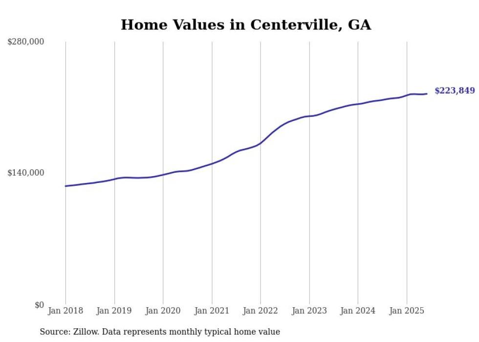 Cities with the fastest-growing home prices in the Warner Robins metro area