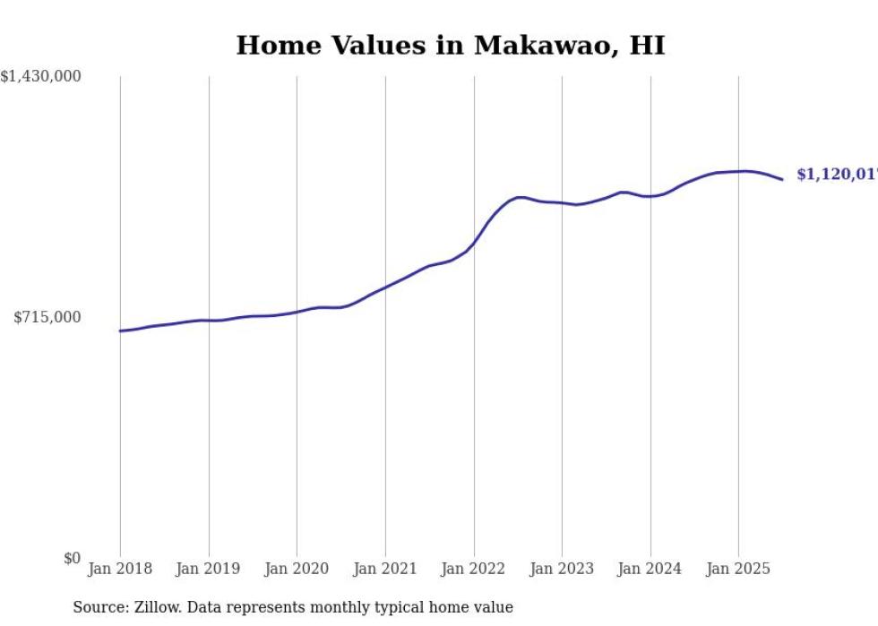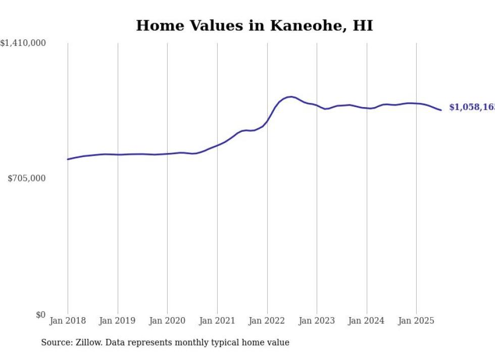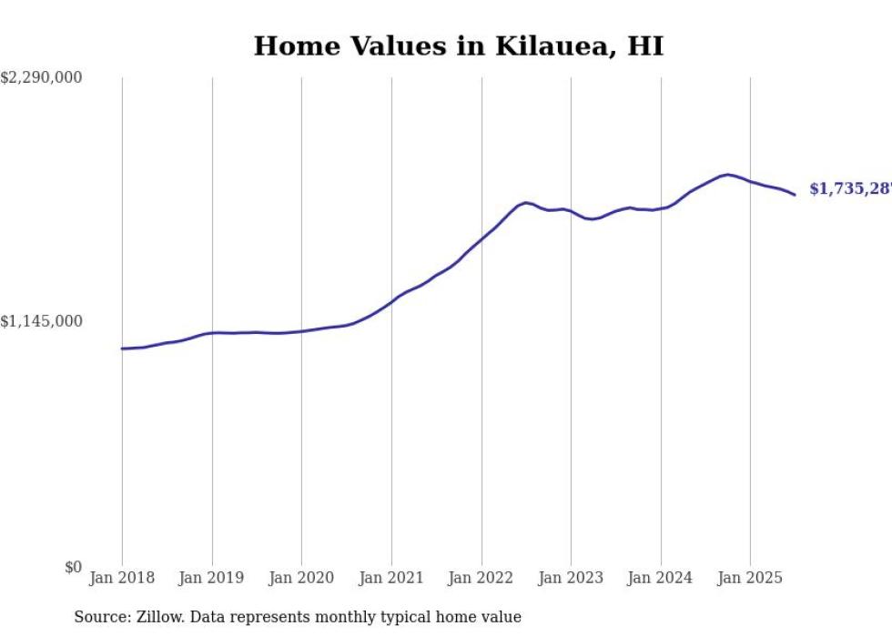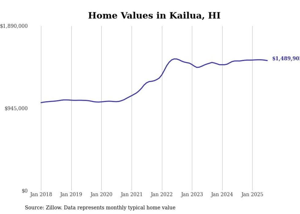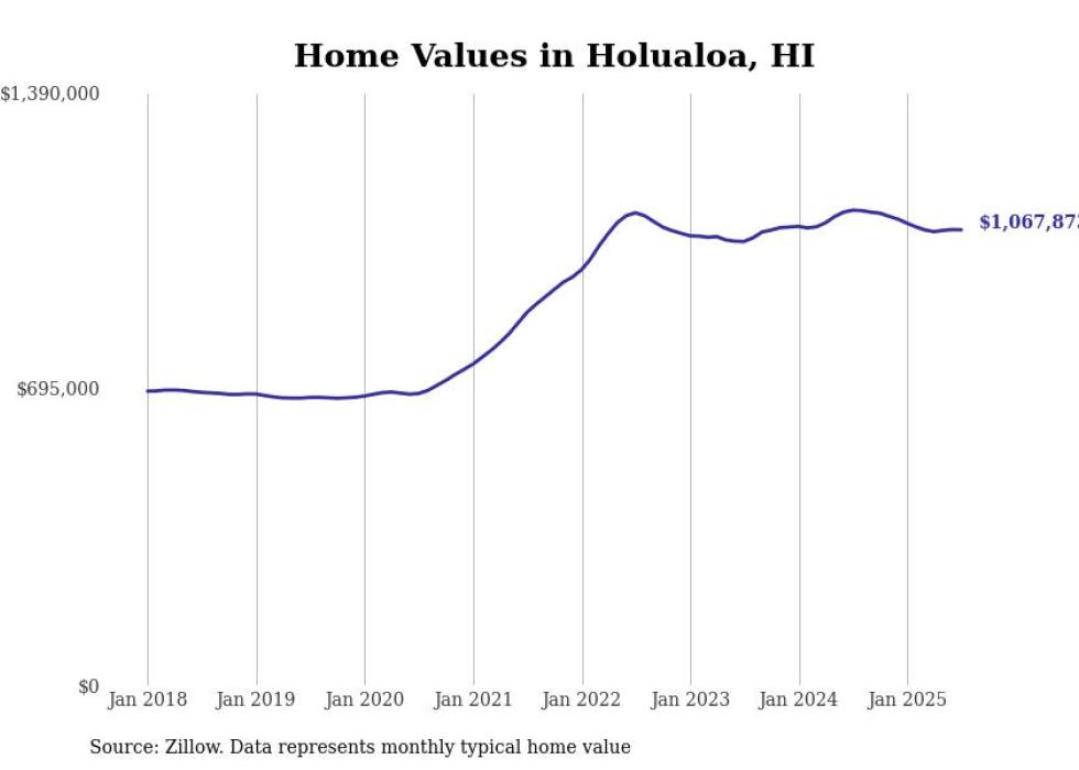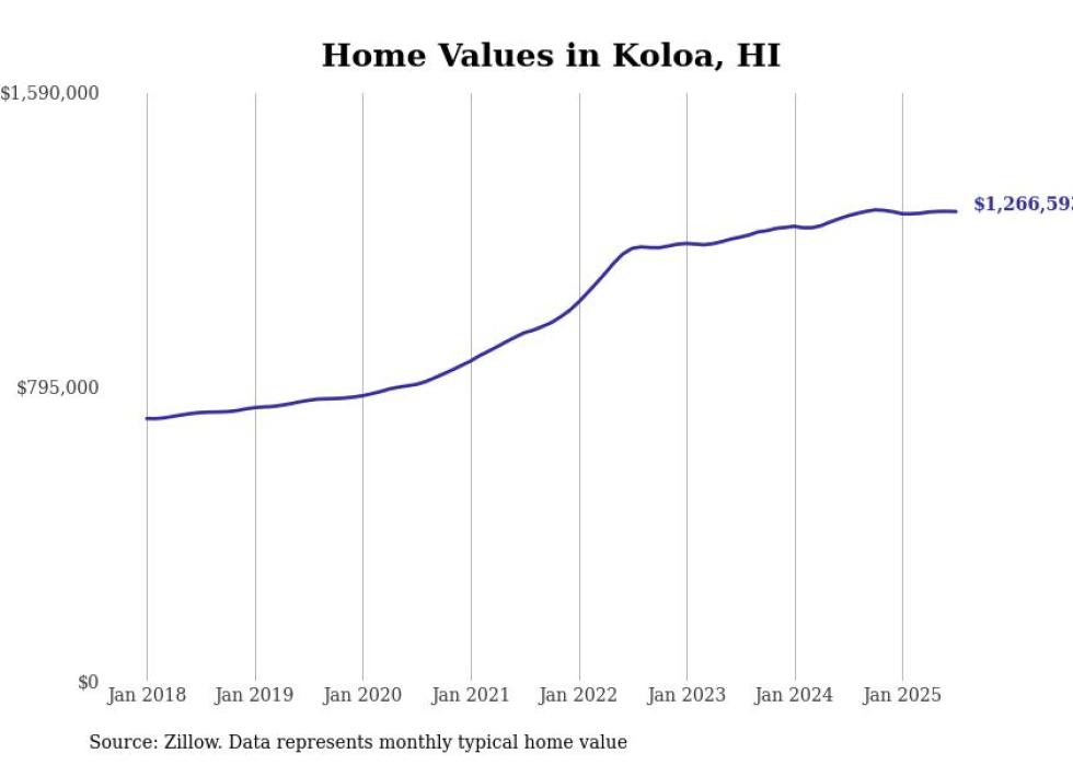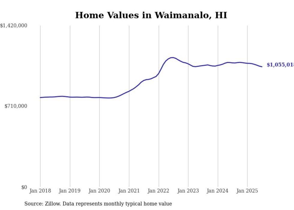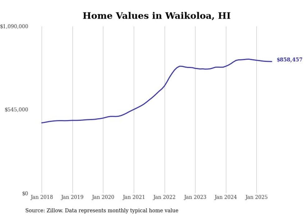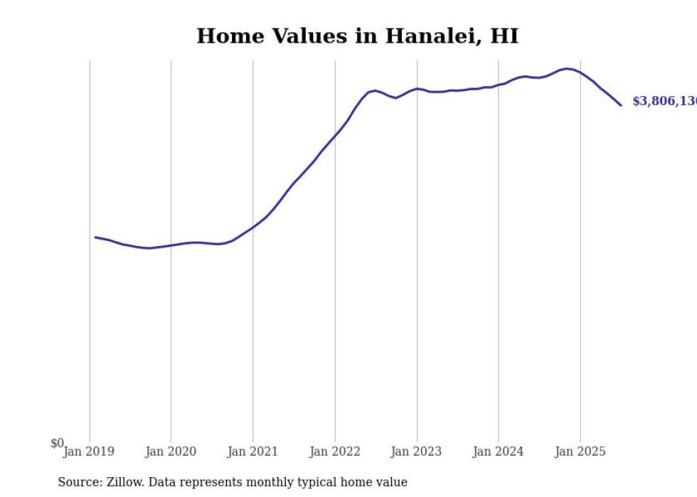 Stacker compiled a list of cities with the most expensive homes in Hawaii using data from Zillow. Cities are ranked by the Zillow Home Values Index for all homes as of July 2025. The charts in this story were created automatically using Matplotlib.