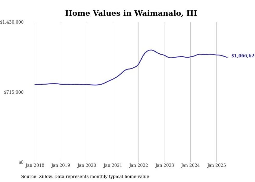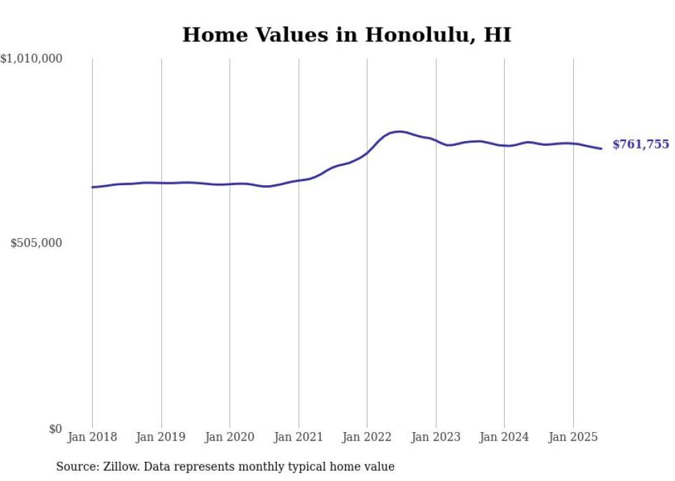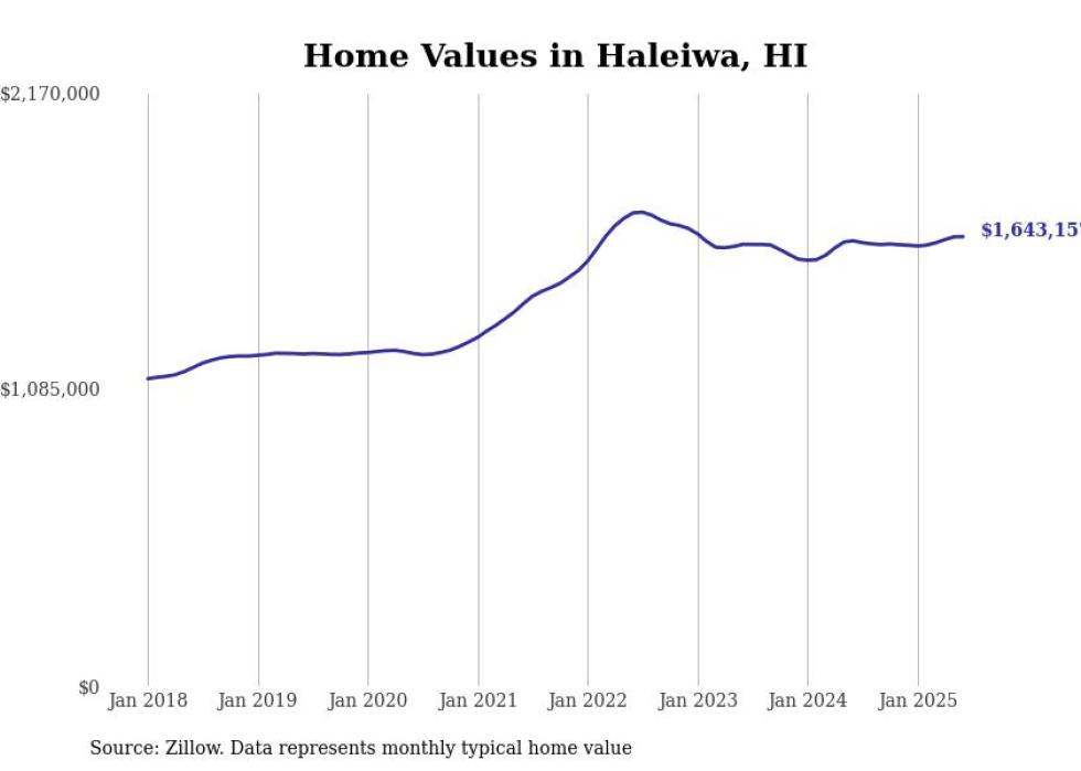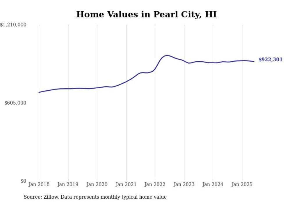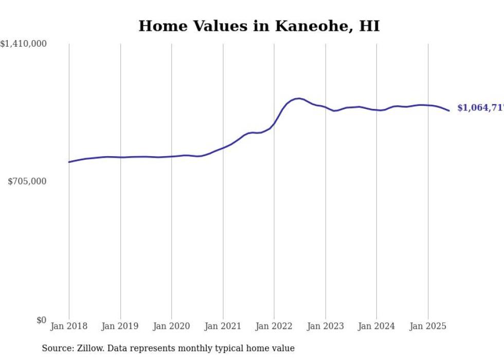 Stacker compiled a list of cities with the most expensive homes in the Urban Honolulu, HI metro area using data from Zillow. Charts show the monthly typical home value since January 2018.
