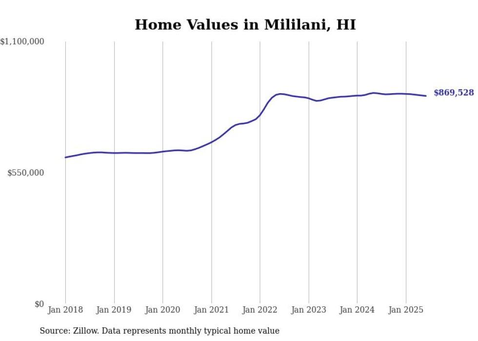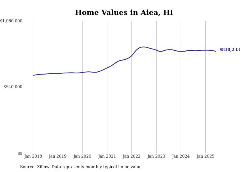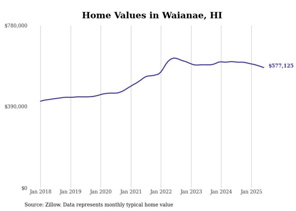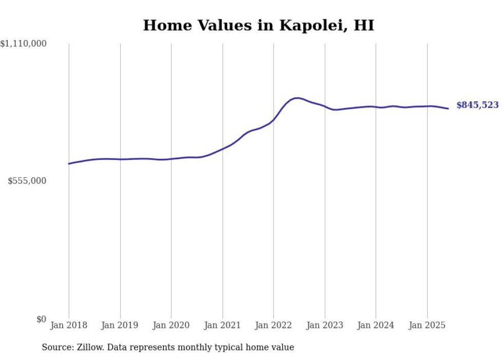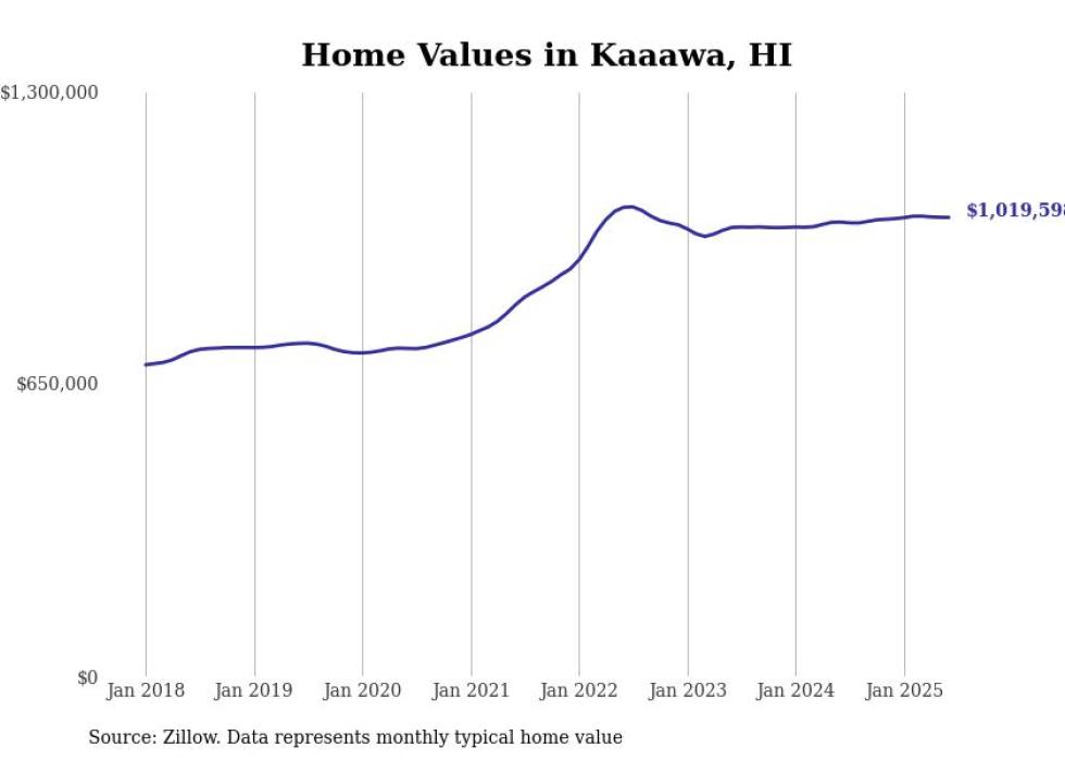 Stacker compiled a list of cities with the most expensive homes in the Urban Honolulu, HI metro area using data from Zillow. Charts show the monthly typical home value since January 2018.