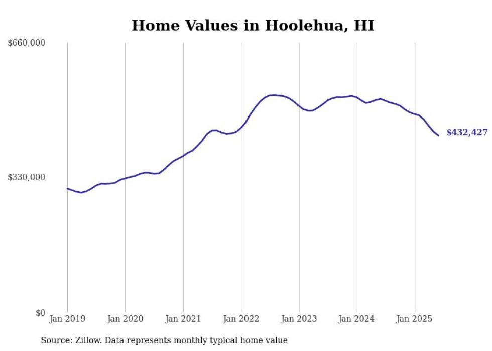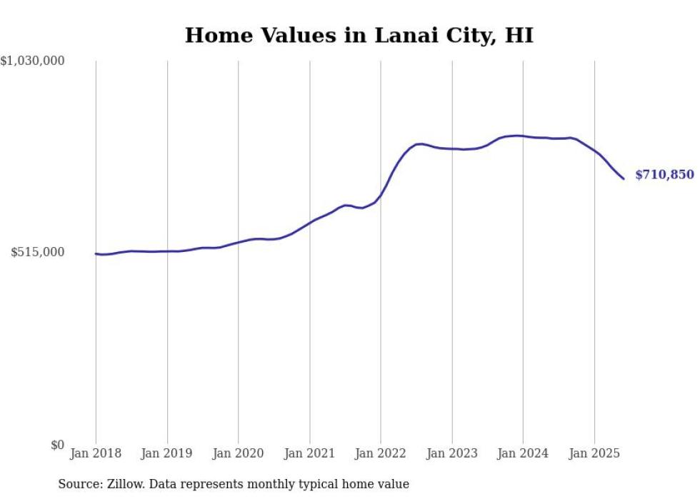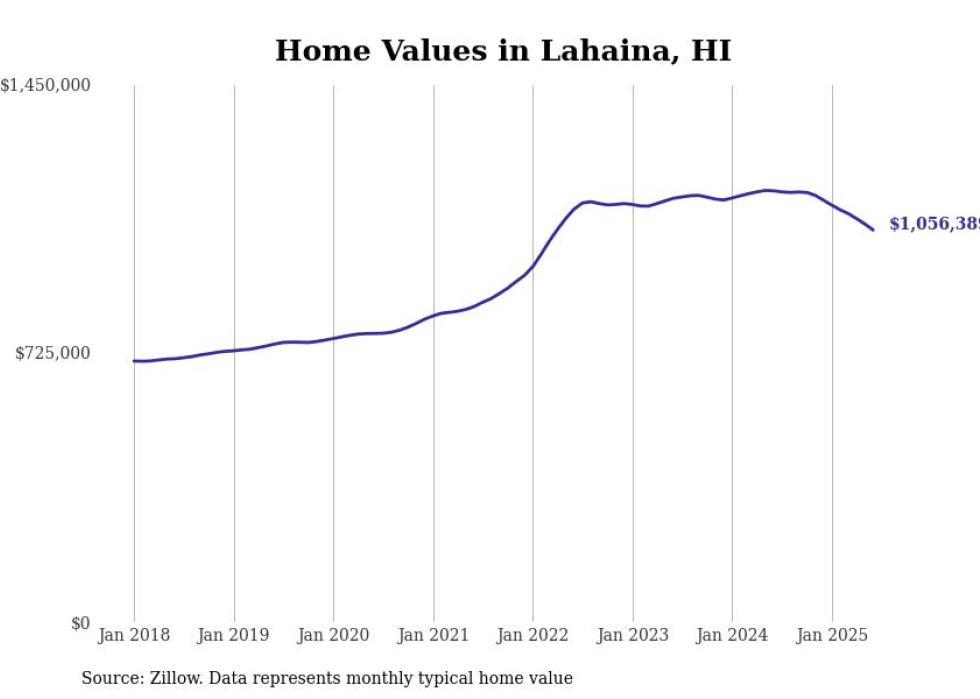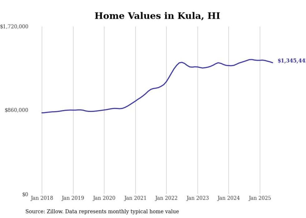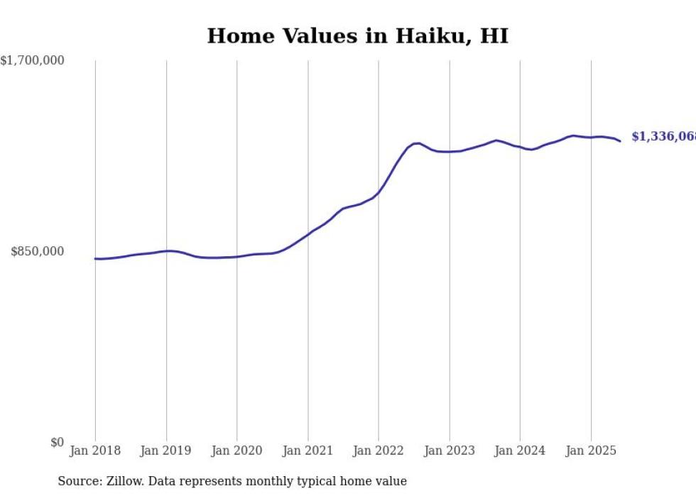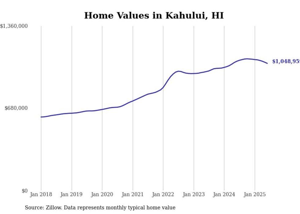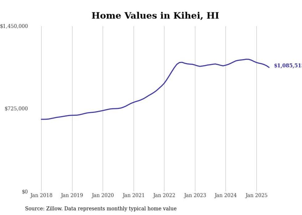 Stacker compiled a list of cities with the most expensive homes in the Kahului-Wailuku-Lahaina, HI metro area using data from Zillow. Charts show the monthly typical home value since January 2018.