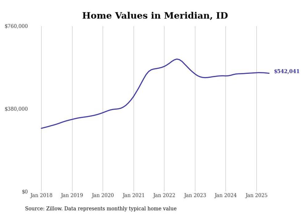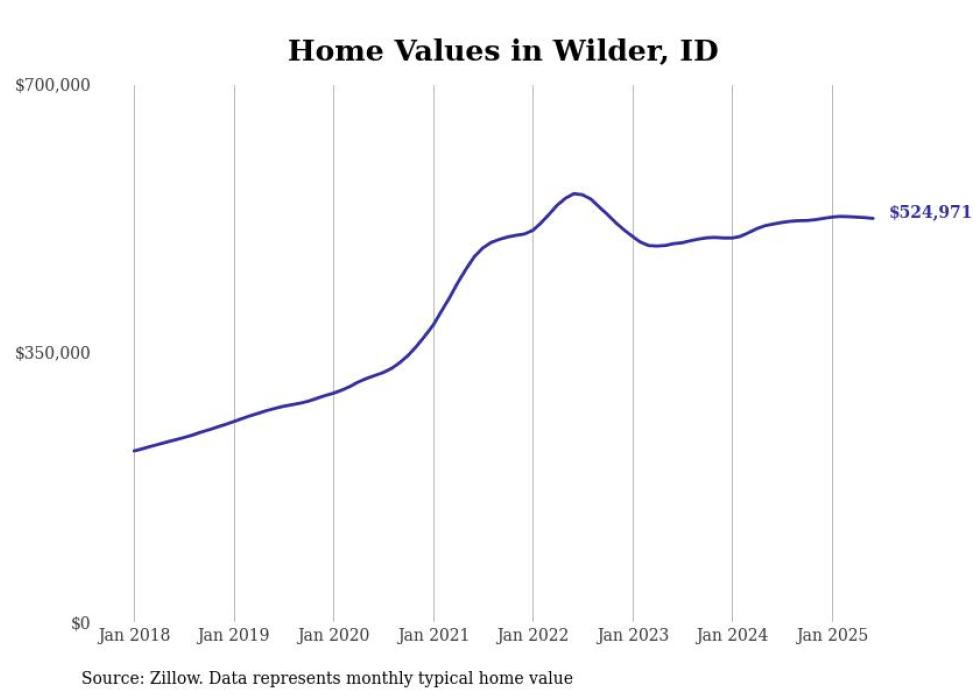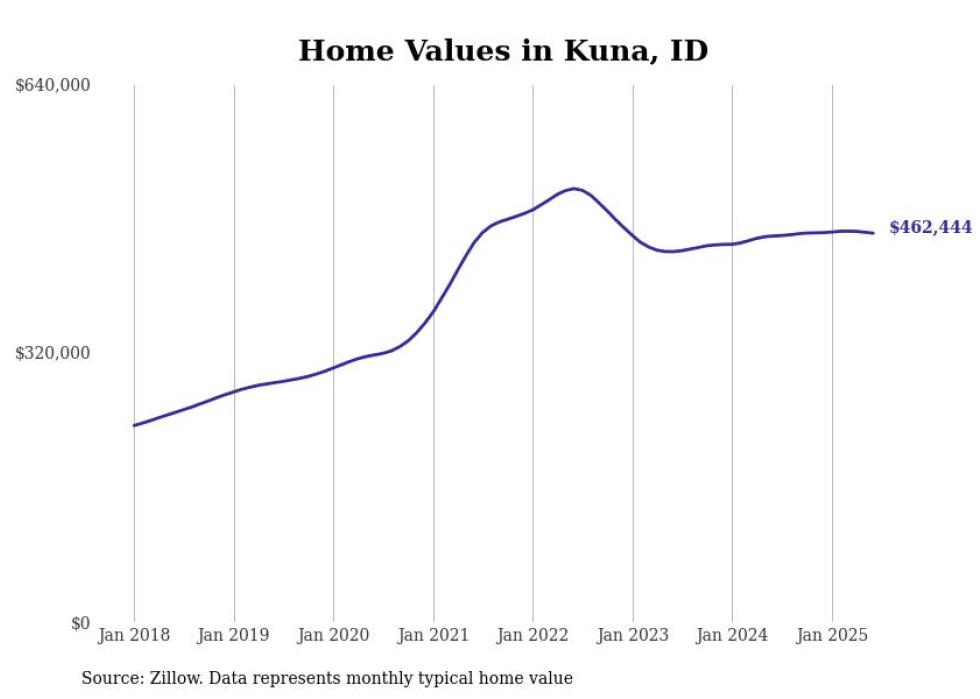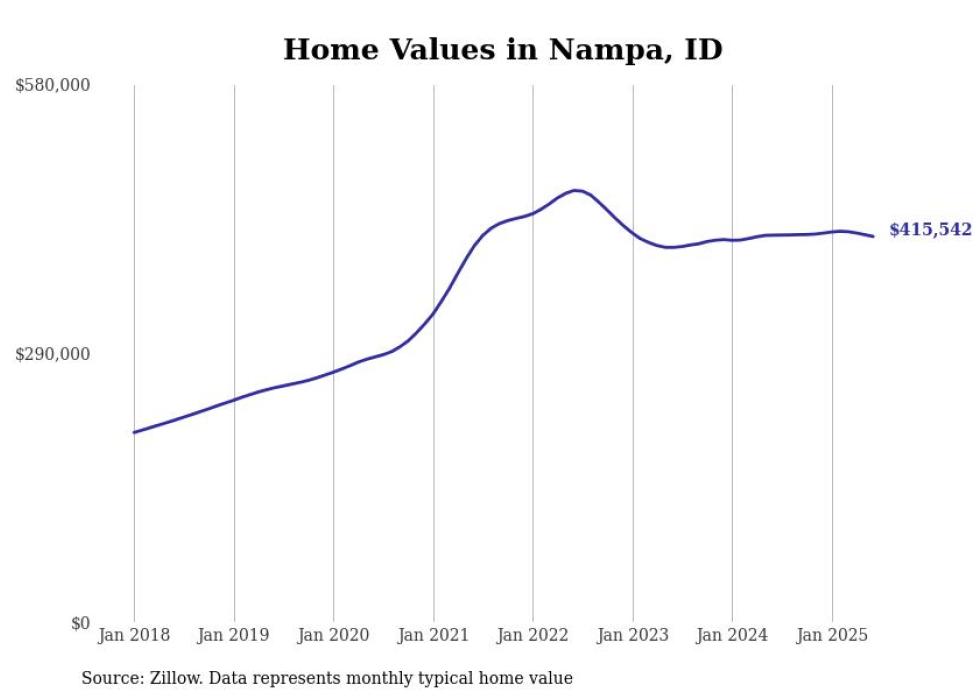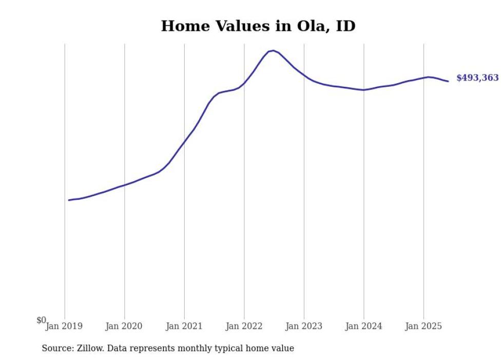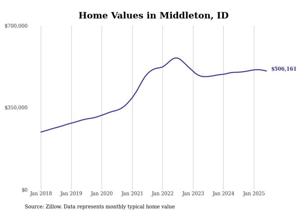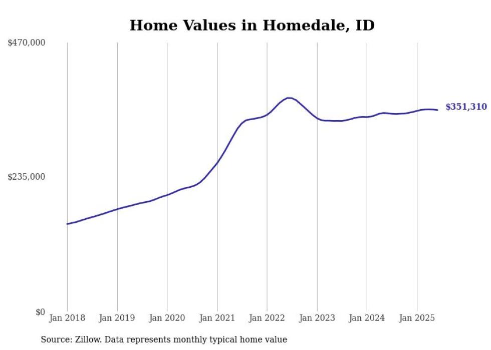 Stacker compiled a list of cities with the most expensive homes in the Boise City, ID metro area using data from Zillow. Charts show the monthly typical home value since January 2018.