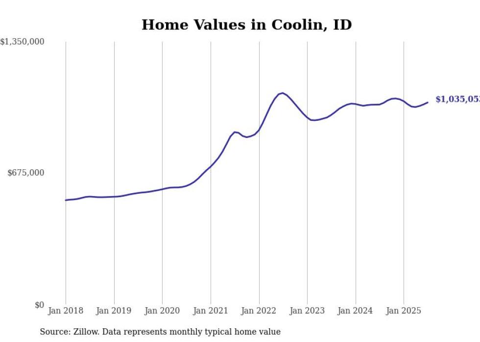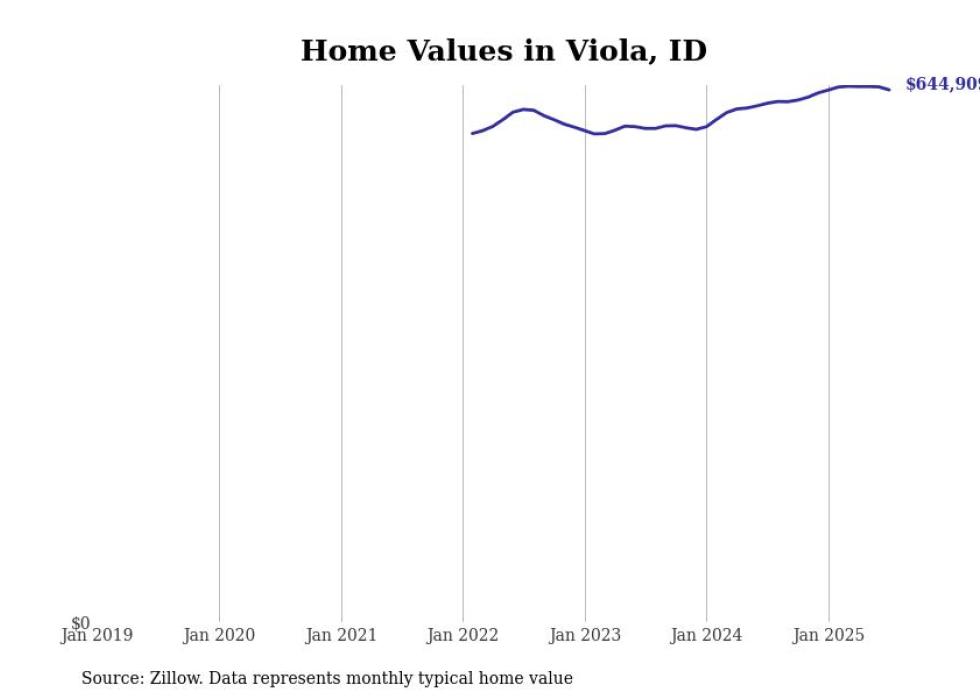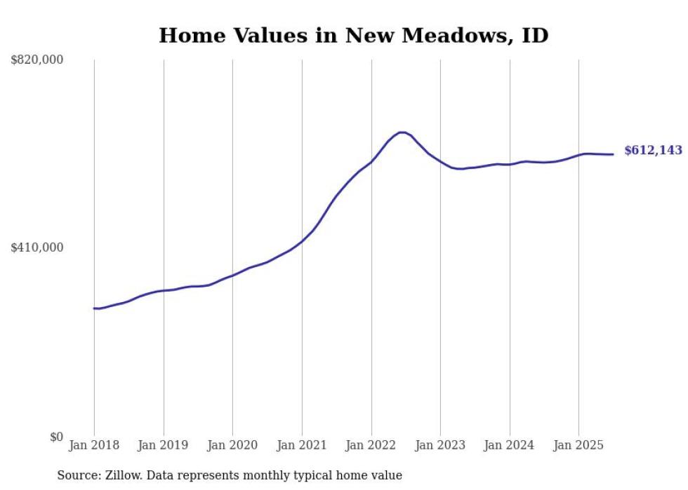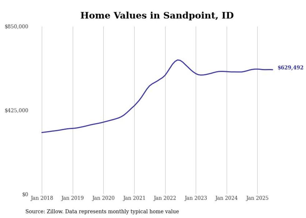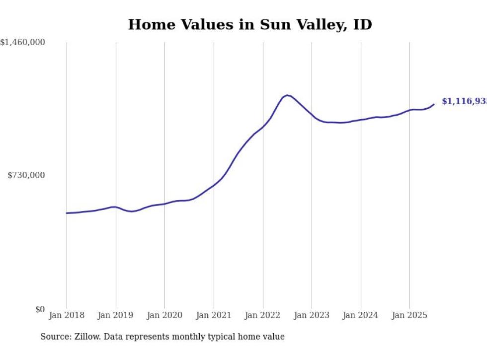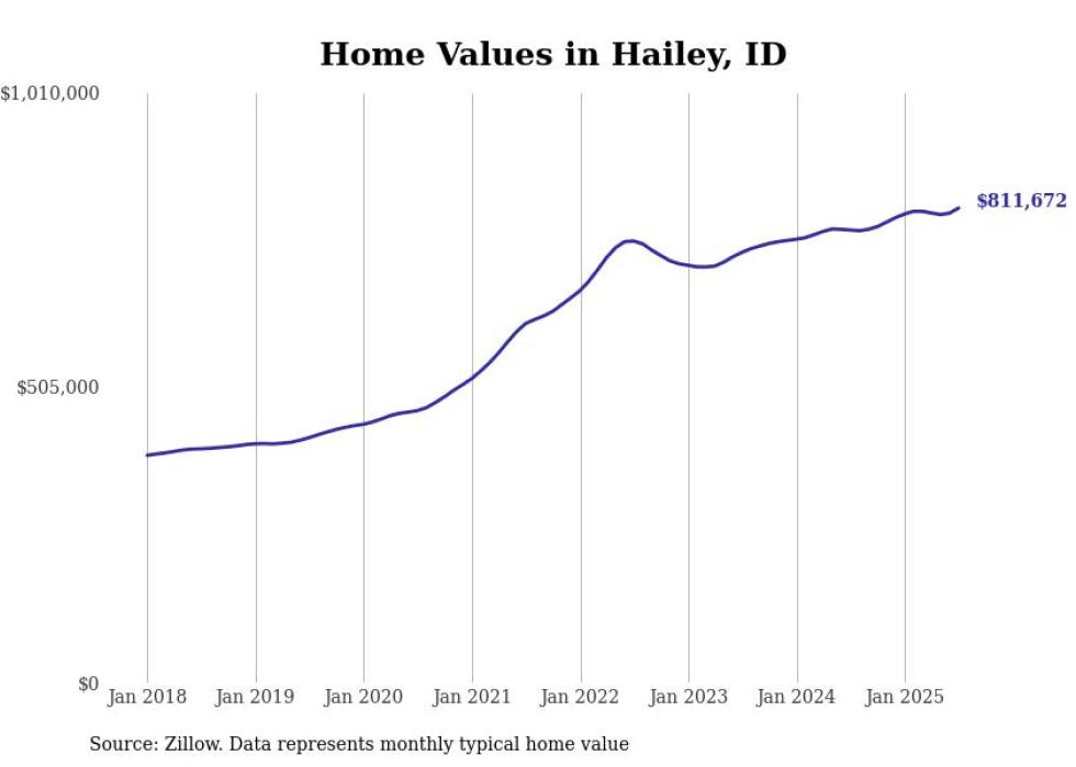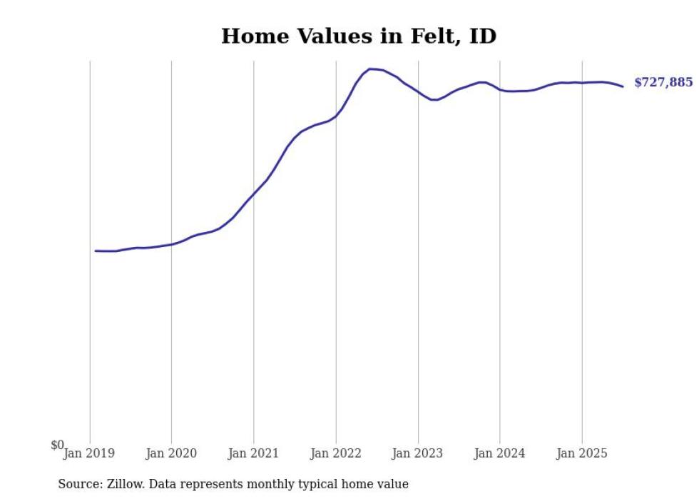 Stacker compiled a list of cities with the most expensive homes in Idaho using data from Zillow. Cities are ranked by the Zillow Home Values Index for all homes as of July 2025. The charts in this story were created automatically using Matplotlib.