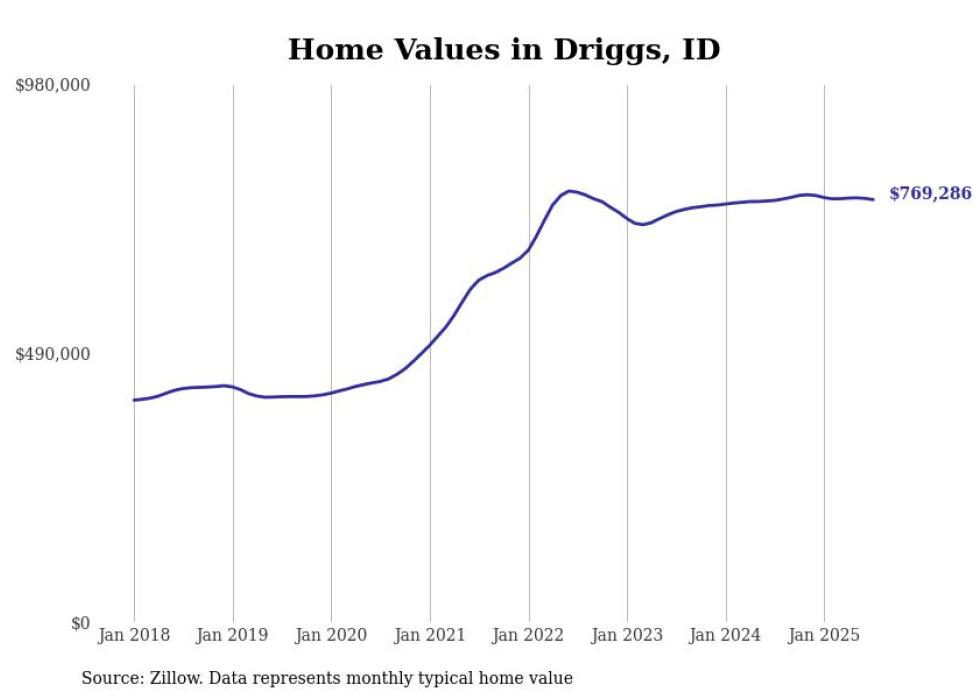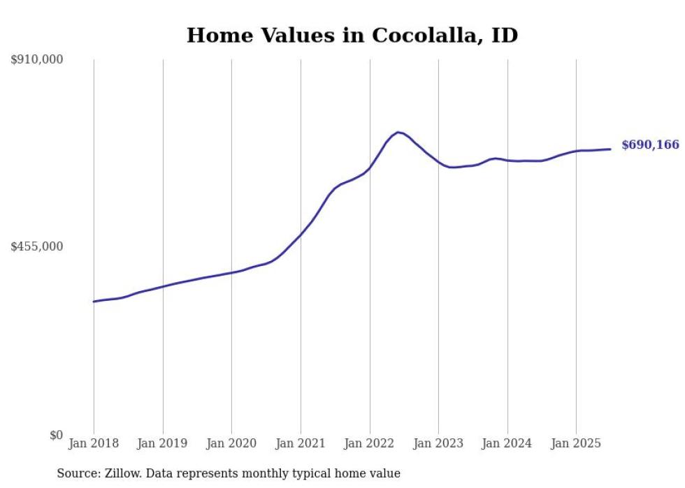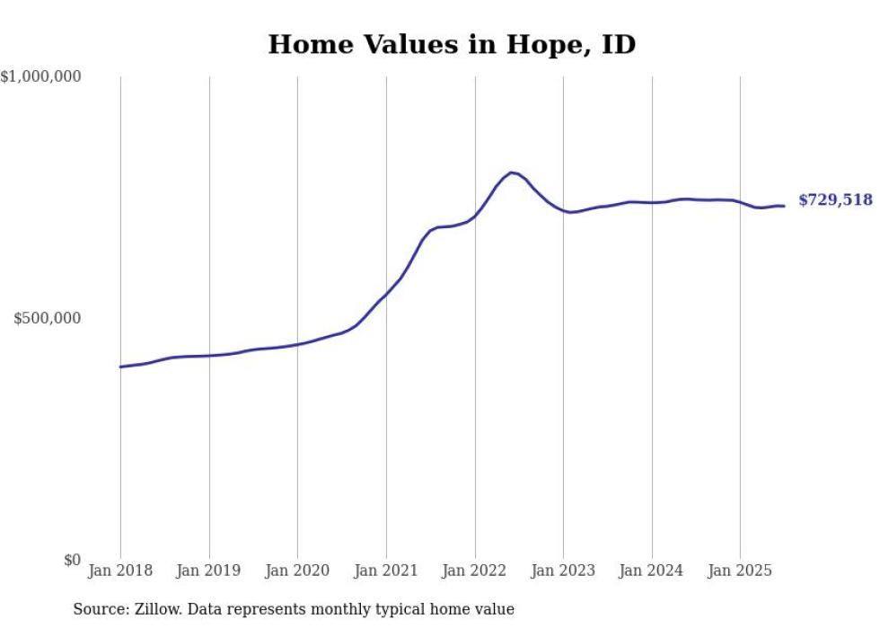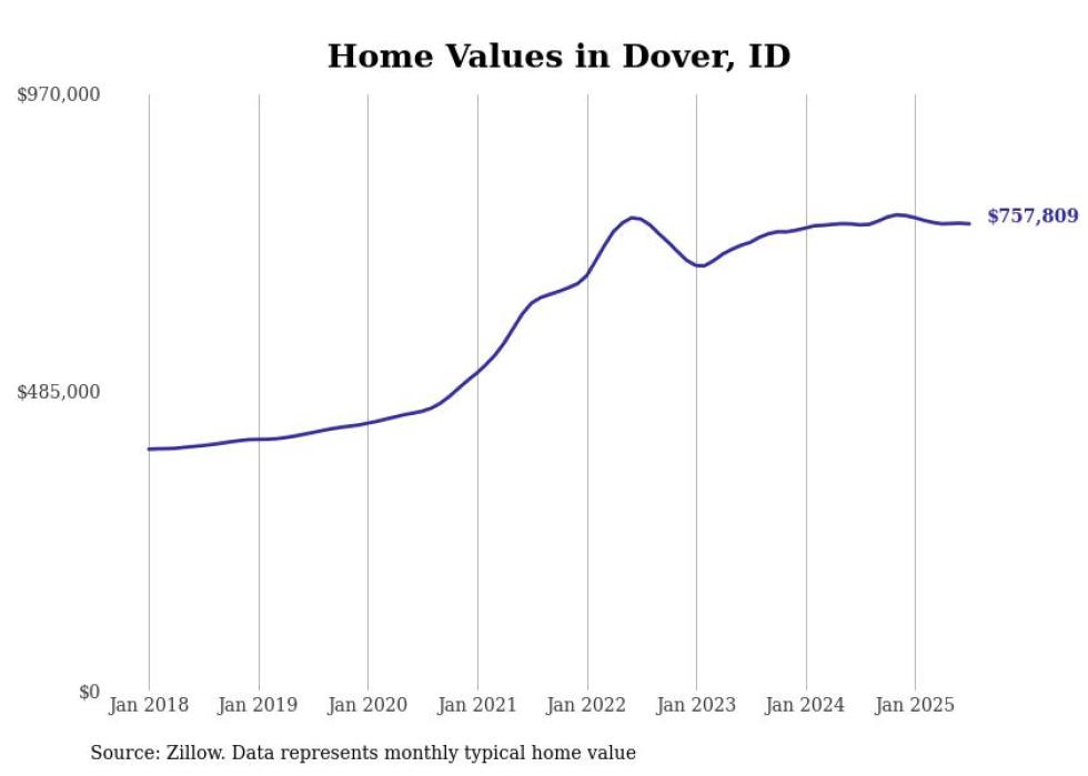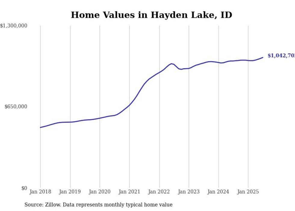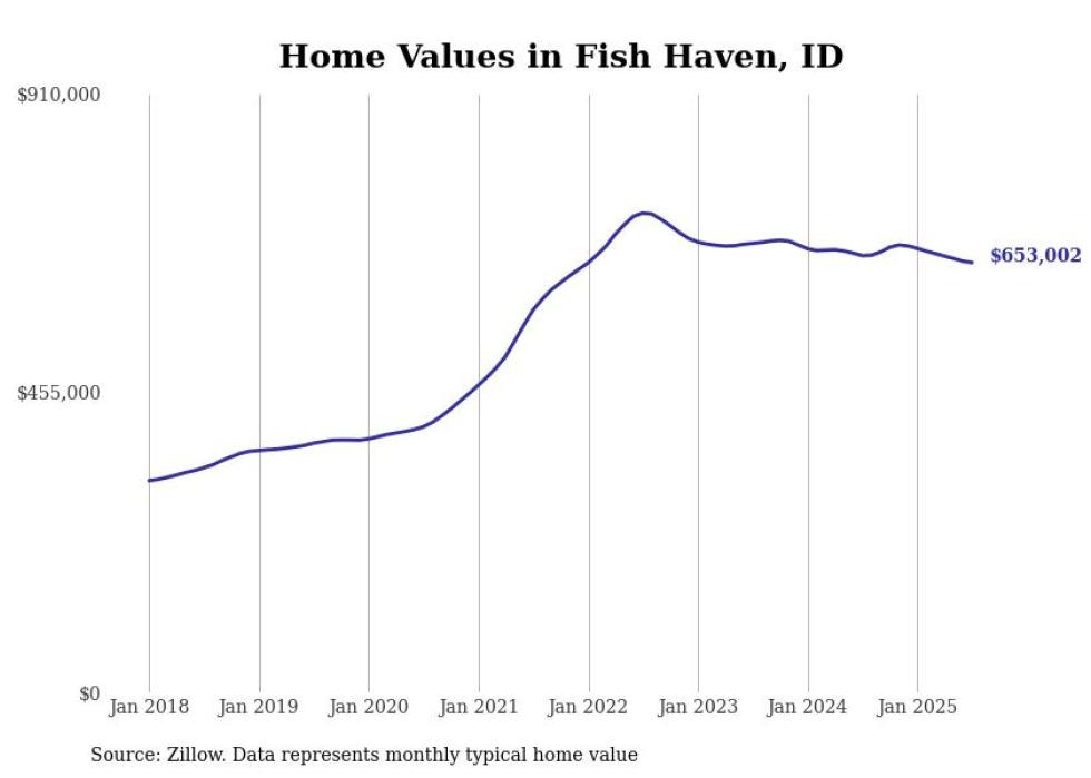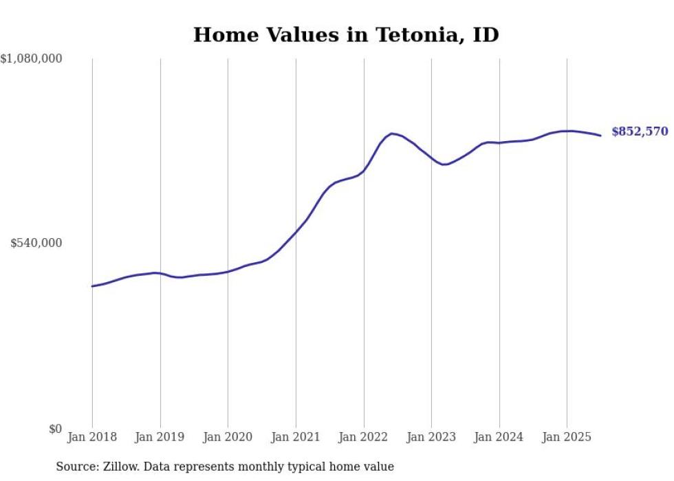 Stacker compiled a list of cities with the most expensive homes in Idaho using data from Zillow. Cities are ranked by the Zillow Home Values Index for all homes as of July 2025. The charts in this story were created automatically using Matplotlib.