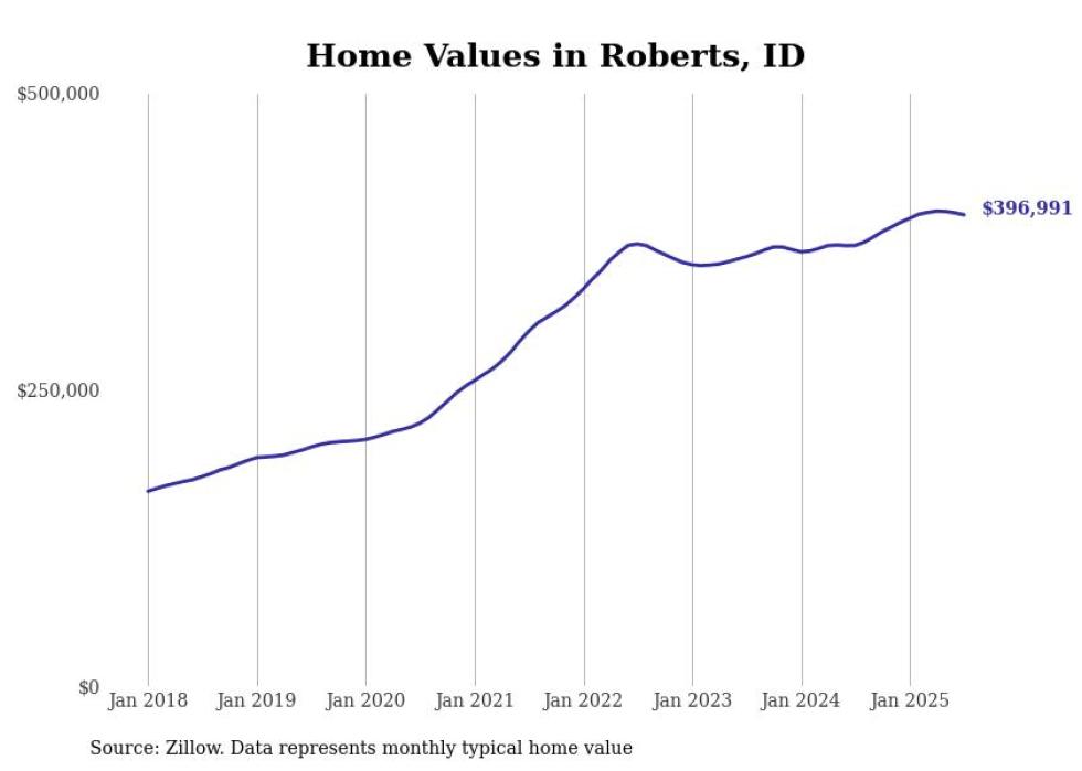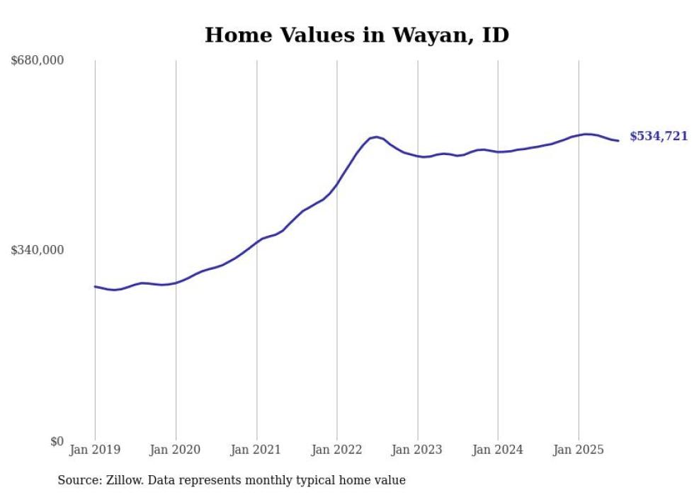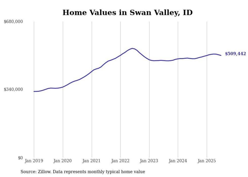 Stacker compiled a list of cities with the most expensive homes in the Idaho Falls metro area using data from Zillow. Charts show the monthly typical home value since January 2018. All 11 cities and towns with data available were included in the list.