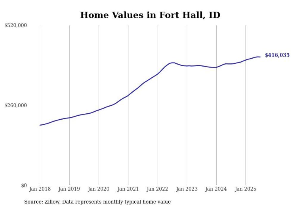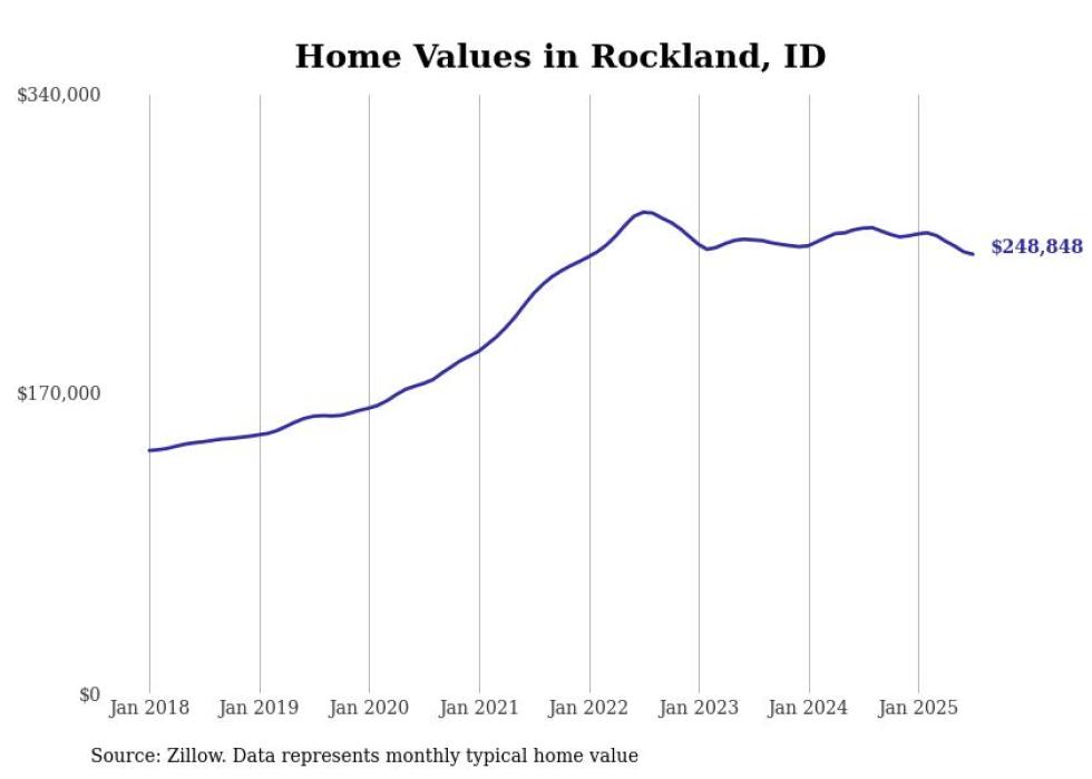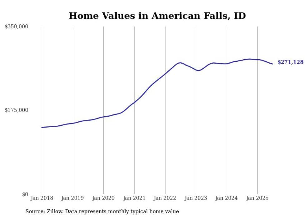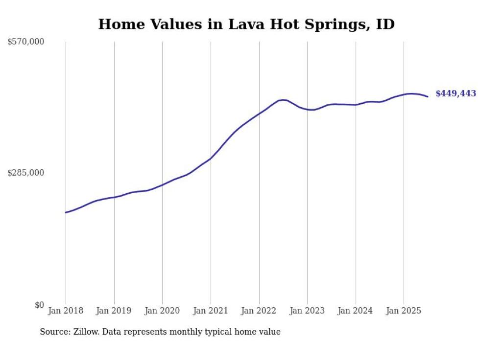 Stacker compiled a list of cities with the most expensive homes in the Pocatello metro area using data from Zillow. Charts show the monthly typical home value since January 2018. All 9 cities and towns with data available were included in the list.