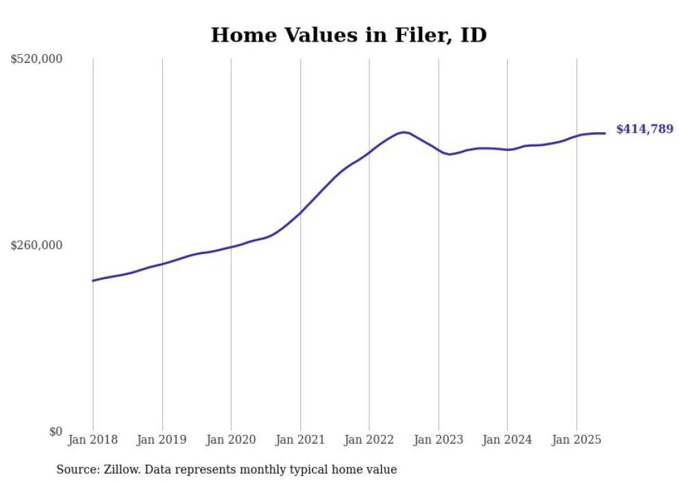 Stacker compiled a list of cities with the most expensive homes in the Twin Falls, ID metro area using data from Zillow. Charts show the monthly typical home value since January 2018.