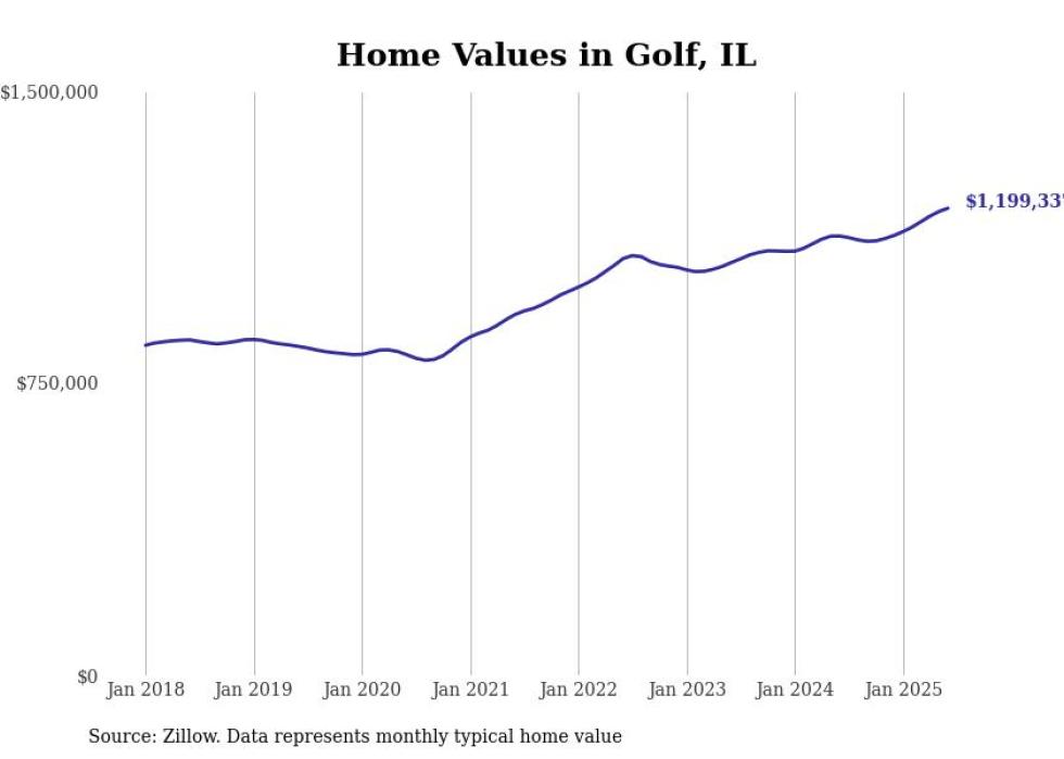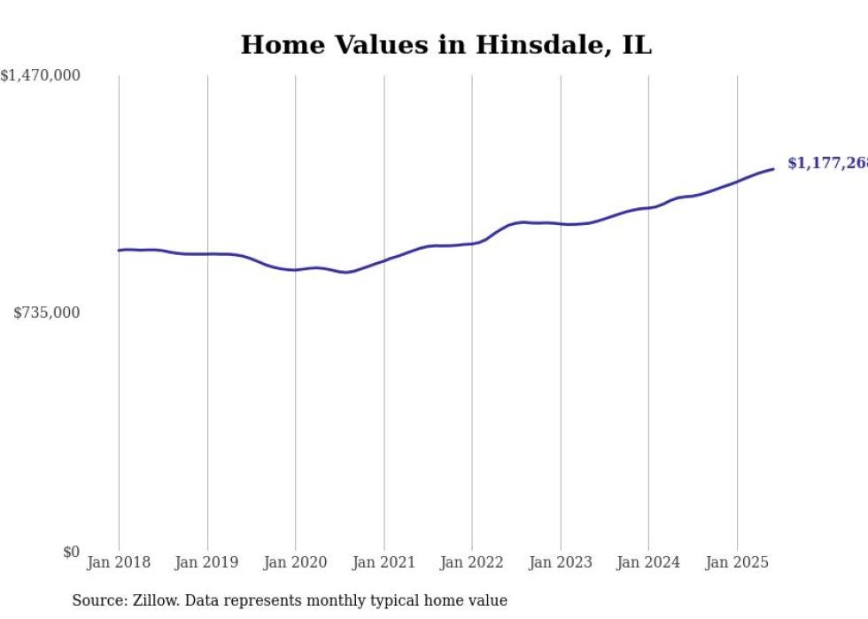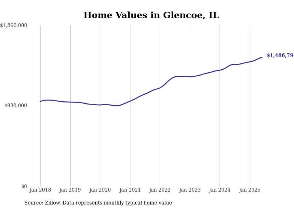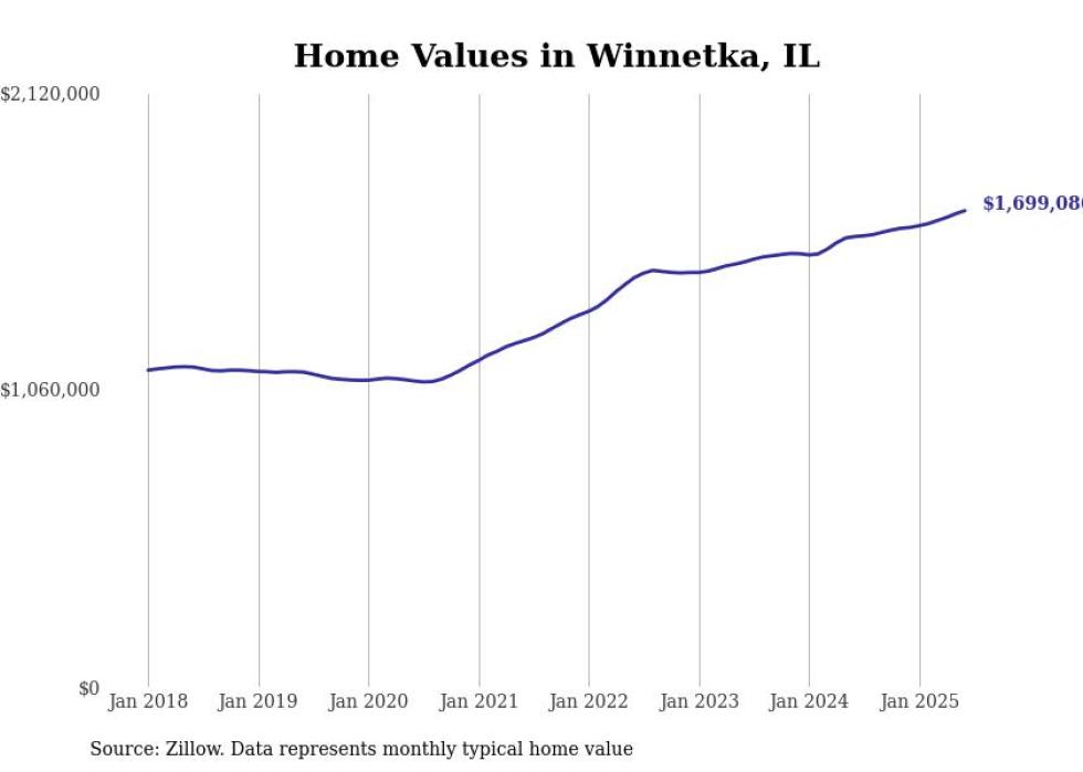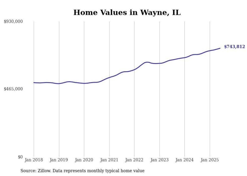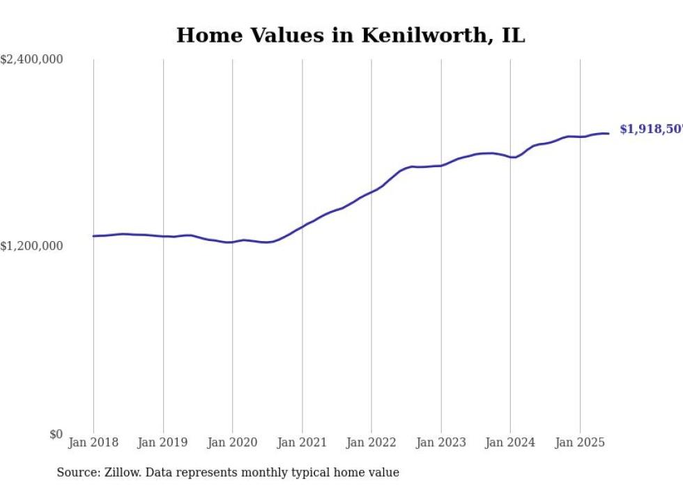 Stacker compiled a list of cities with the most expensive homes in the Chicago-Naperville-Elgin, IL-IN-WI metro area using data from Zillow. Charts show the monthly typical home value since January 2018.