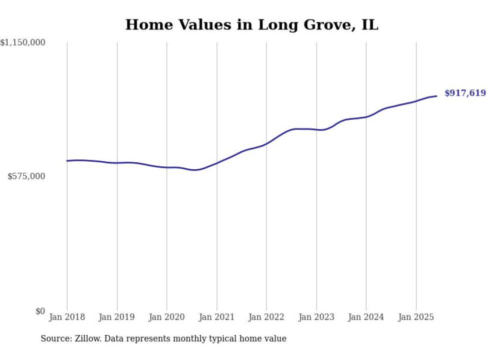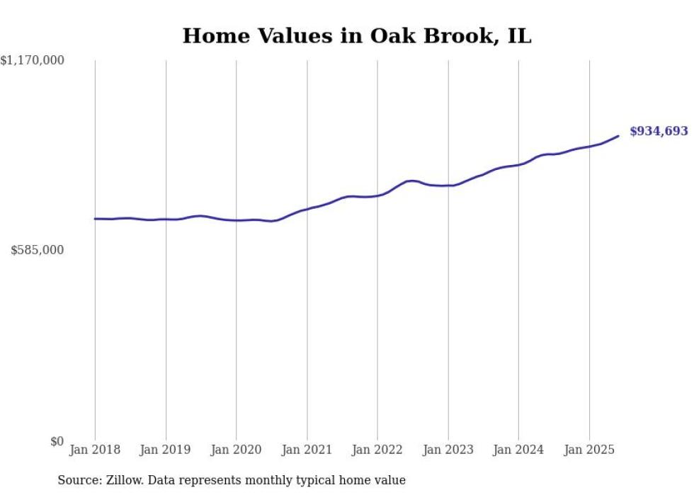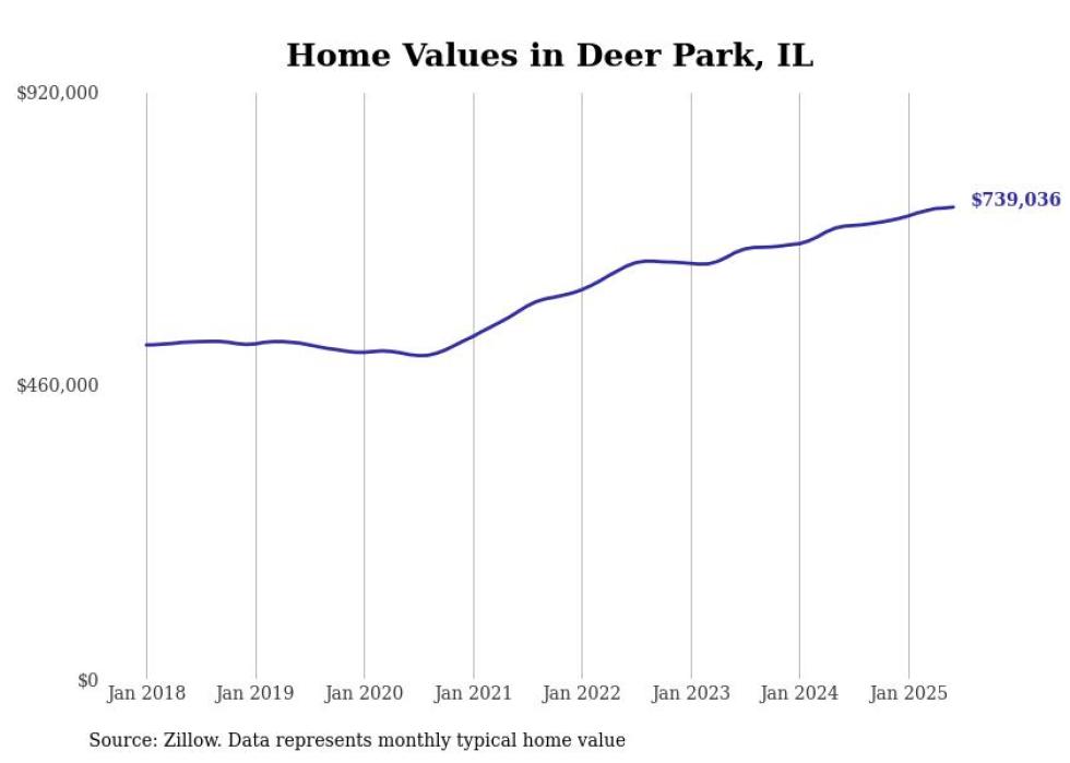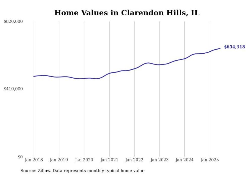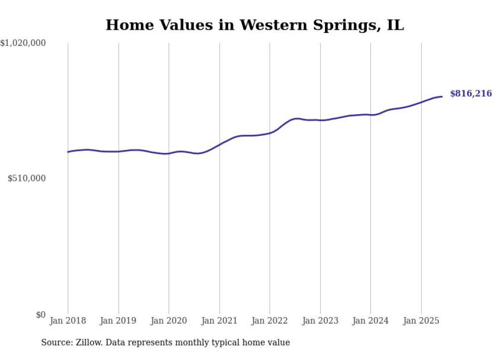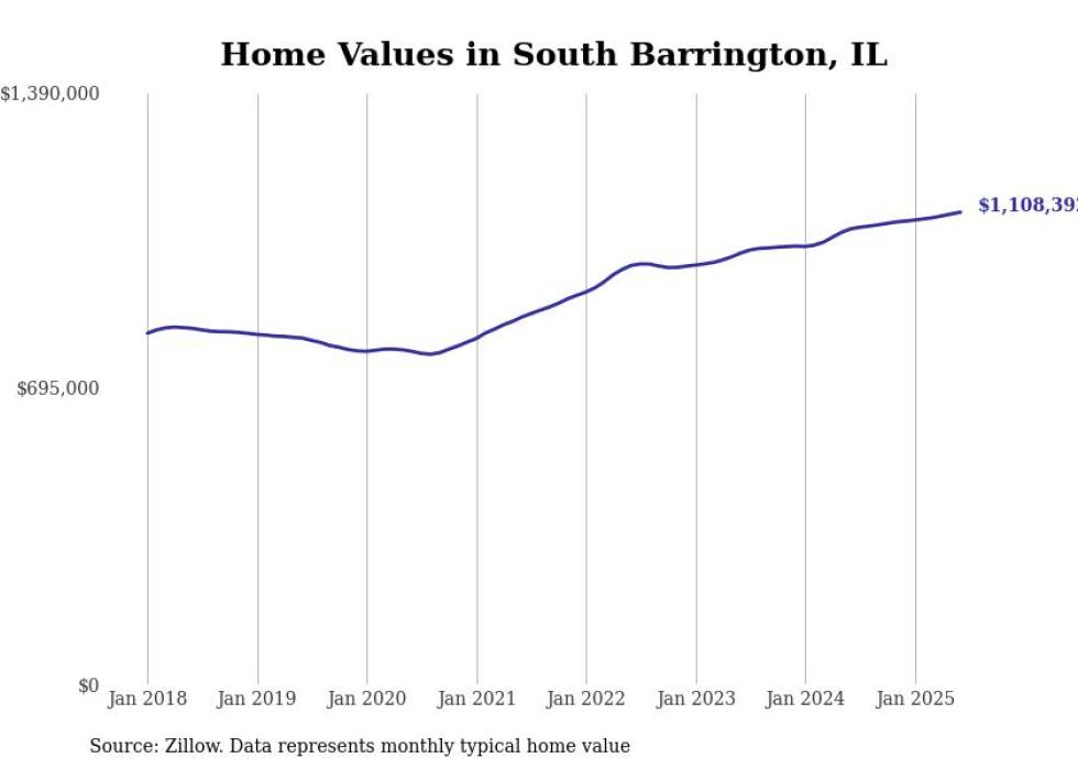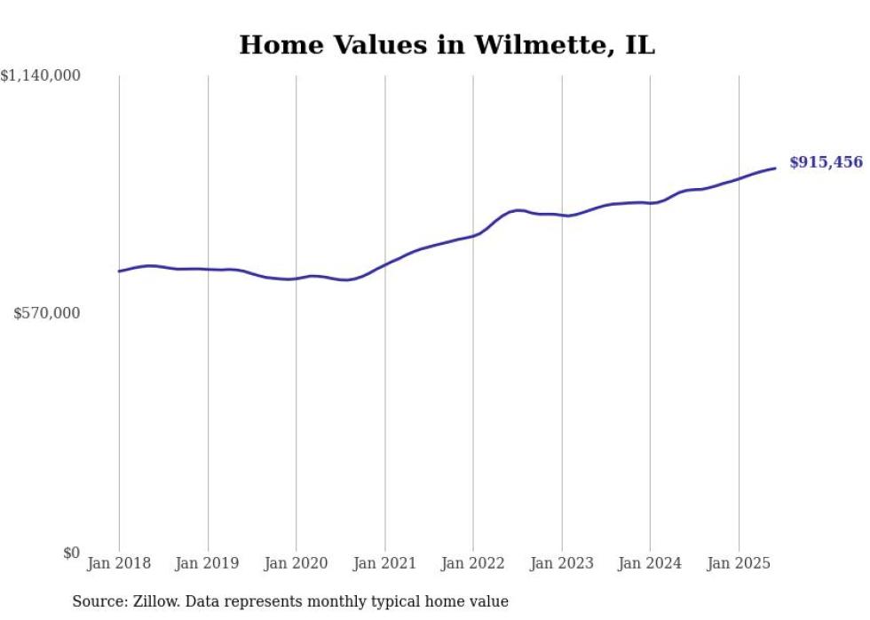 Stacker compiled a list of cities with the most expensive homes in the Chicago-Naperville-Elgin, IL-IN-WI metro area using data from Zillow. Charts show the monthly typical home value since January 2018.