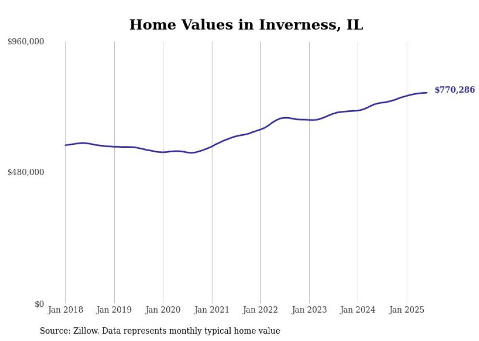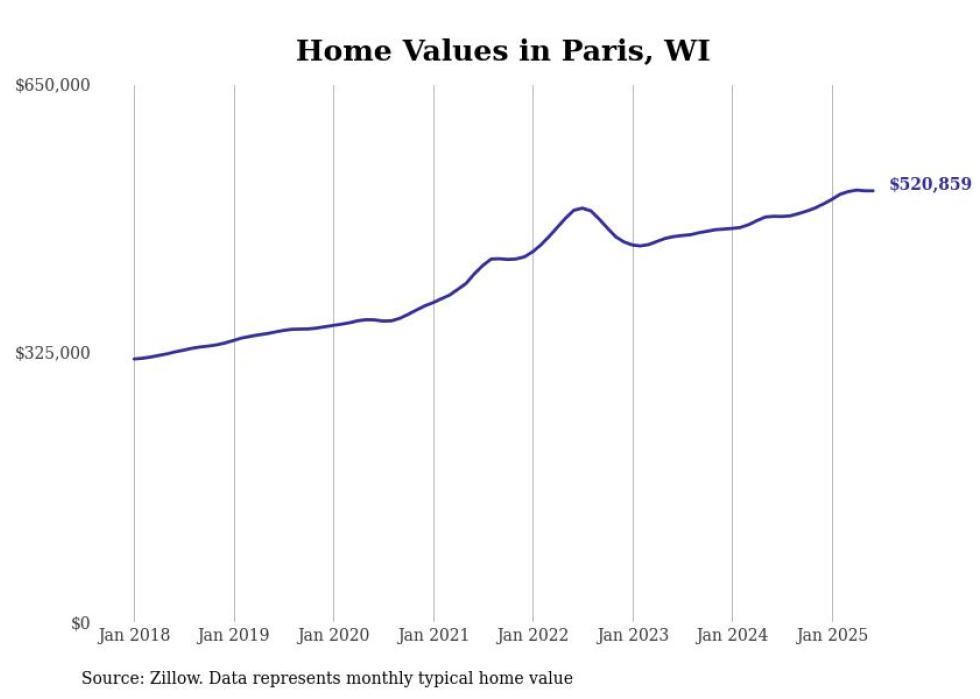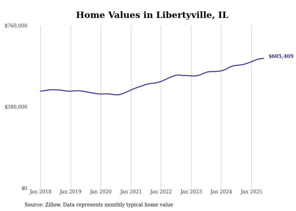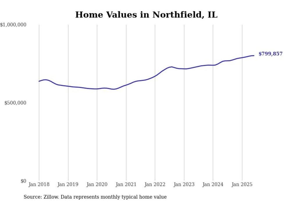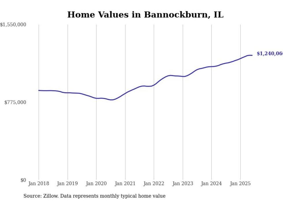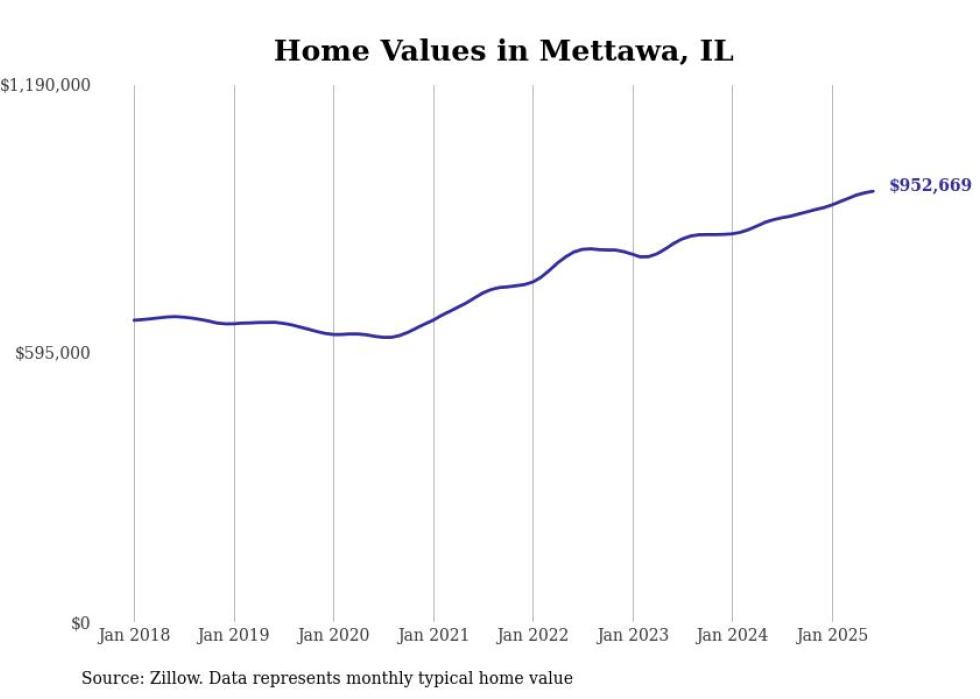 Stacker compiled a list of cities with the most expensive homes in the Chicago-Naperville-Elgin, IL-IN-WI metro area using data from Zillow. Charts show the monthly typical home value since January 2018.