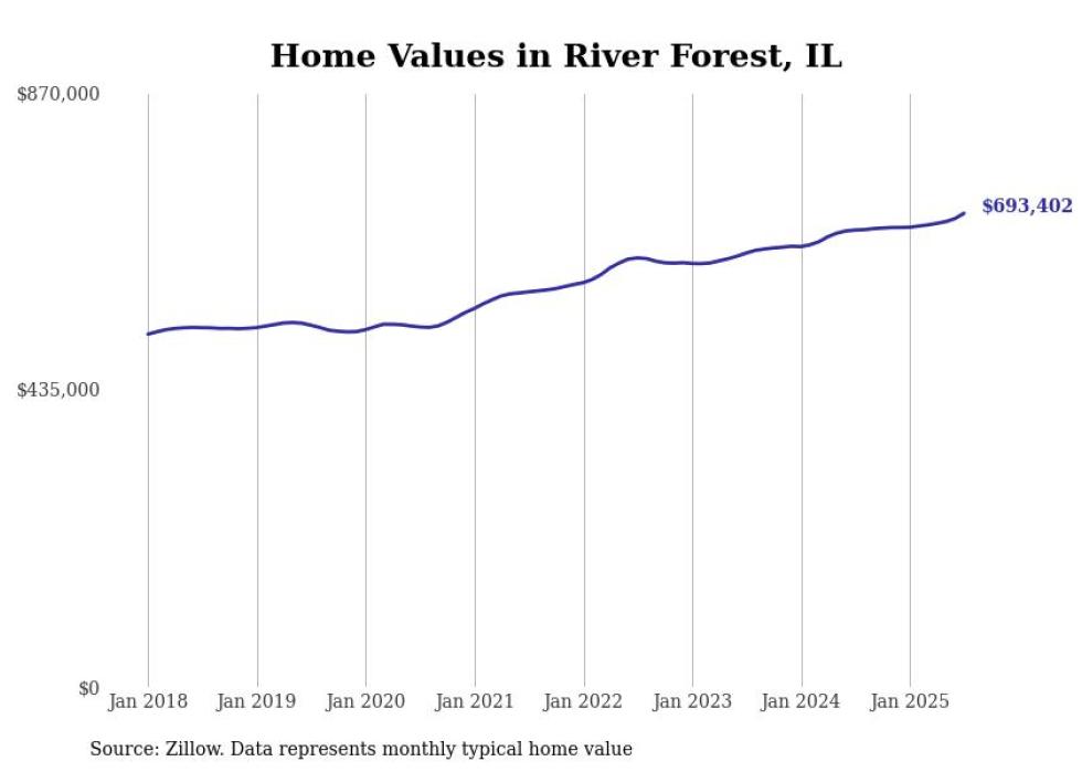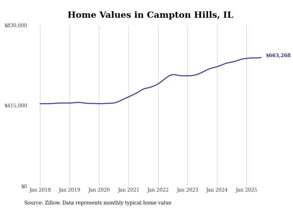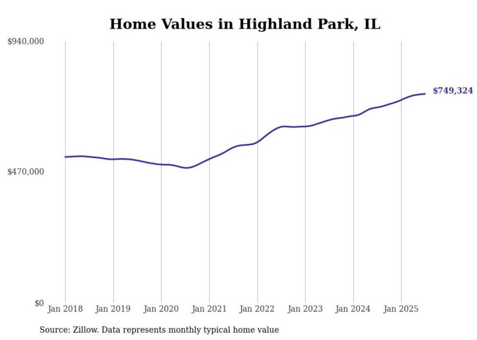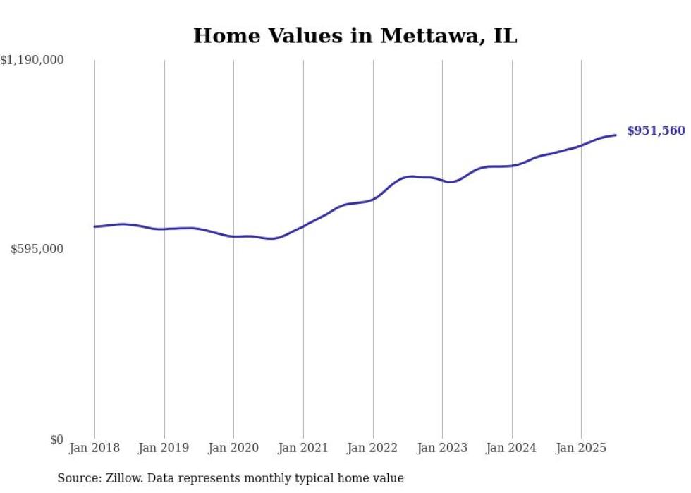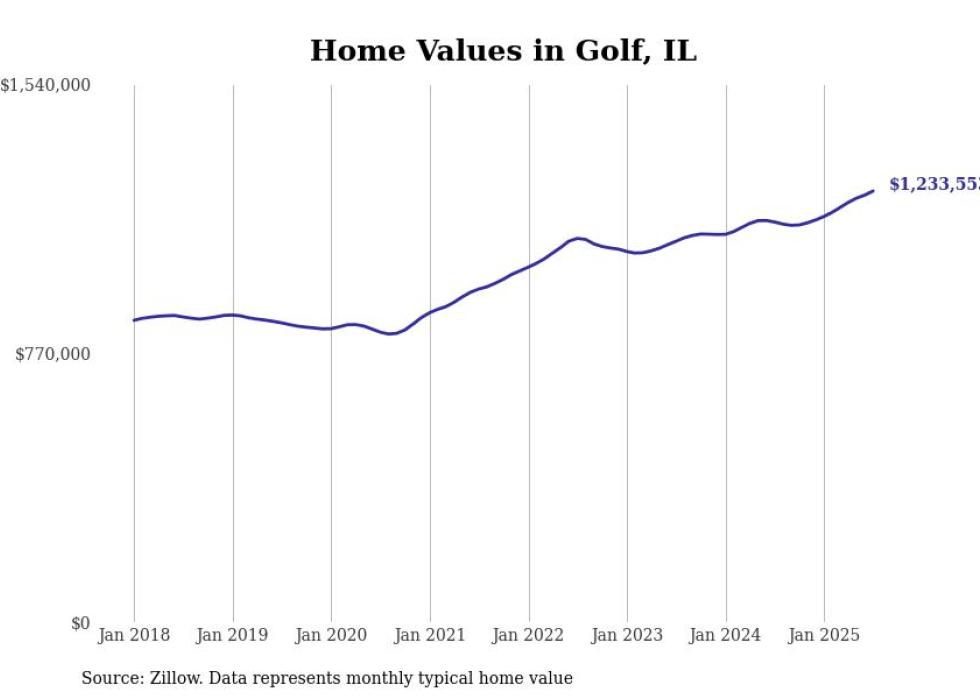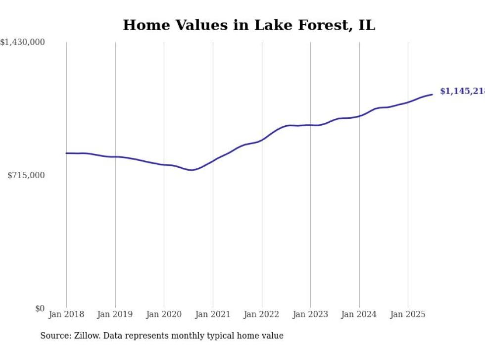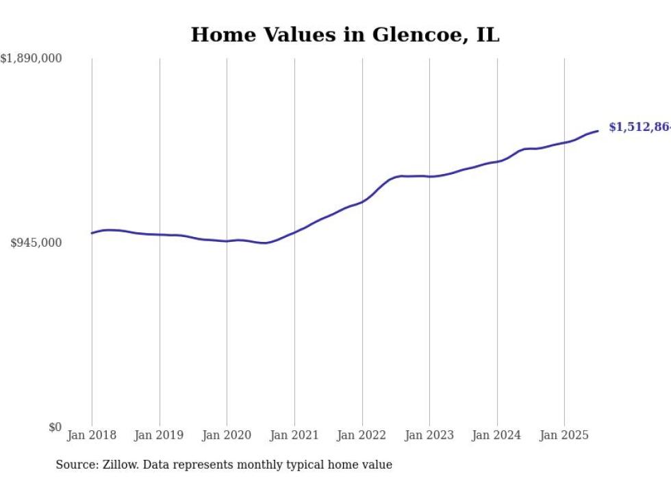 Stacker compiled a list of cities with the most expensive homes in Illinois using data from Zillow. Cities are ranked by the Zillow Home Values Index for all homes as of July 2025. The charts in this story were created automatically using Matplotlib.