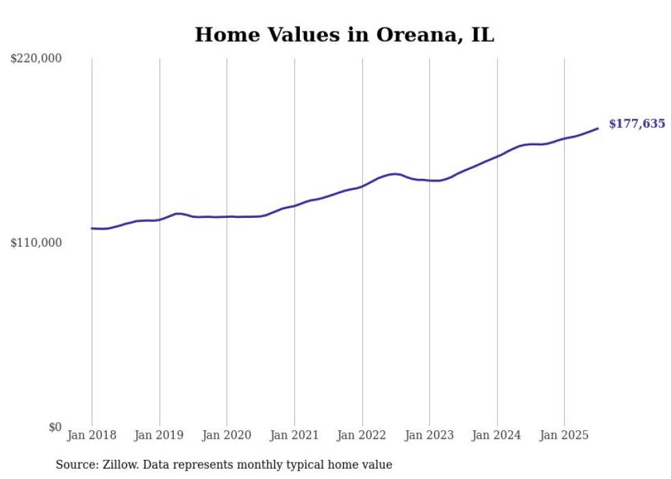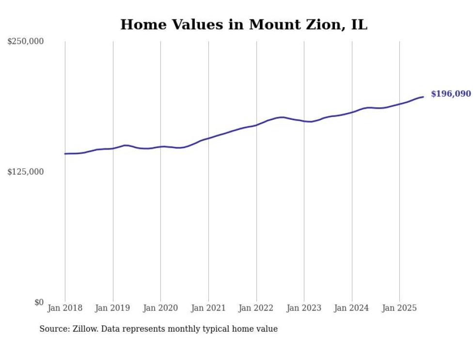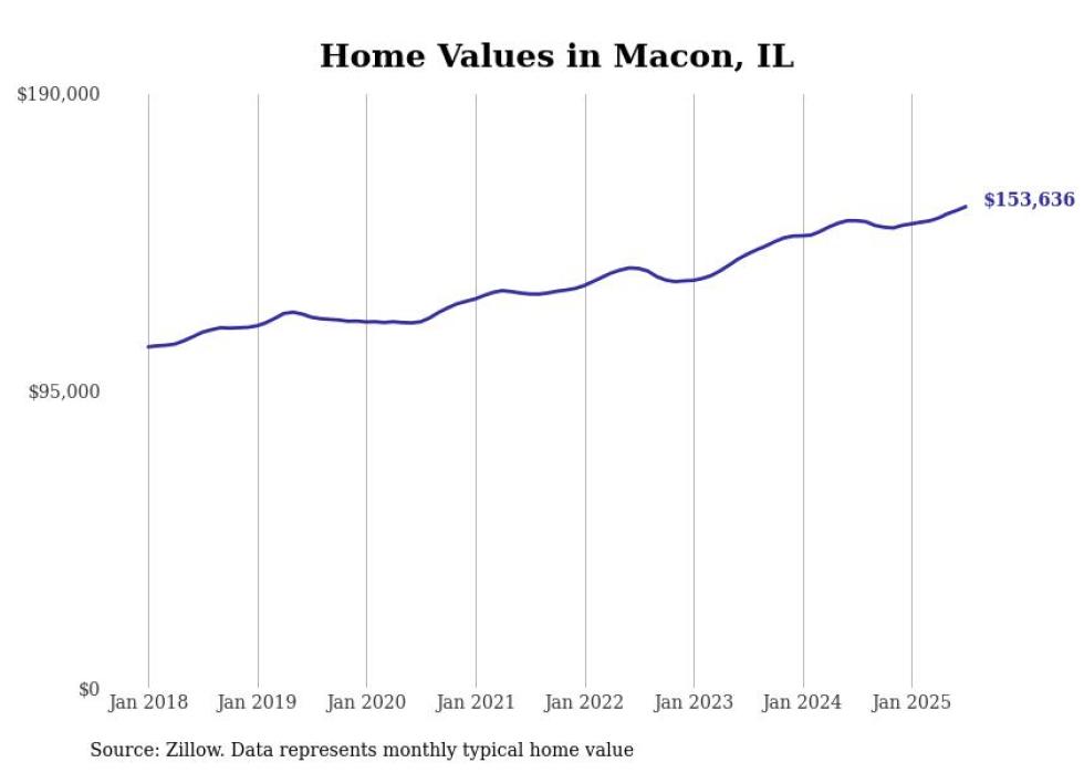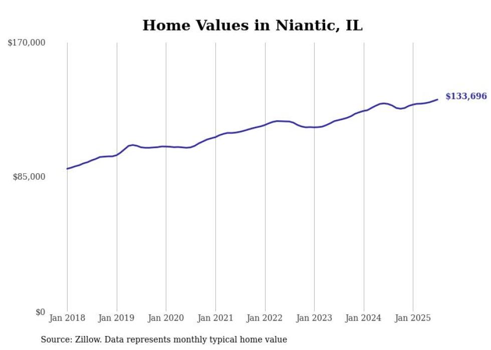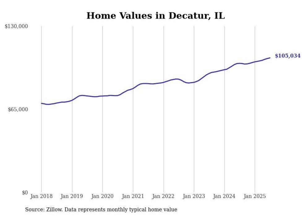 Stacker compiled a list of cities with the most expensive homes in the Decatur, Illinois metro area using data from Zillow. Charts show the monthly typical home value since January 2018. All 12 cities and towns with data available were included in the list.