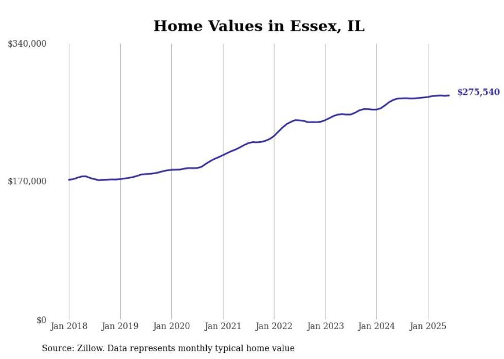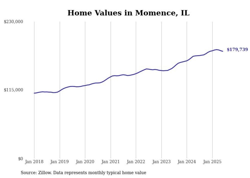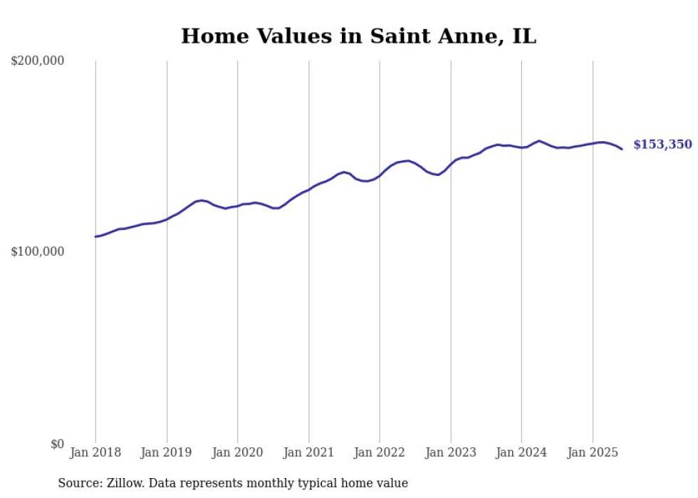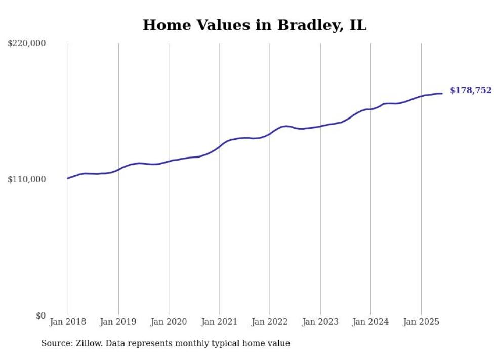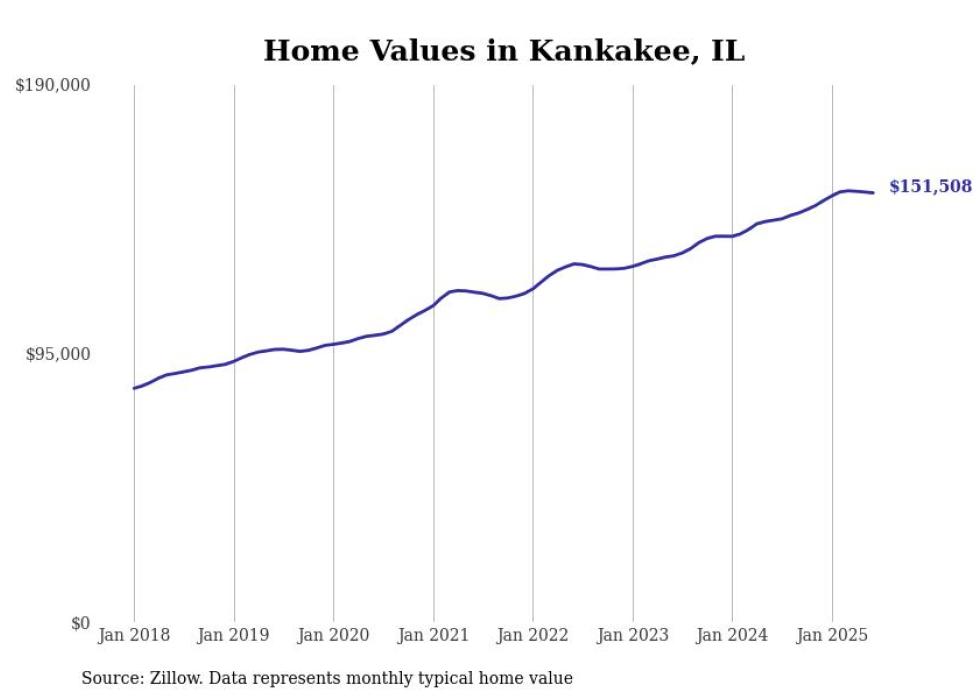Stacker compiled a list of cities with the most expensive homes in the Kankakee, IL metro area using data from Zillow. Charts show the monthly typical home value since January 2018.
