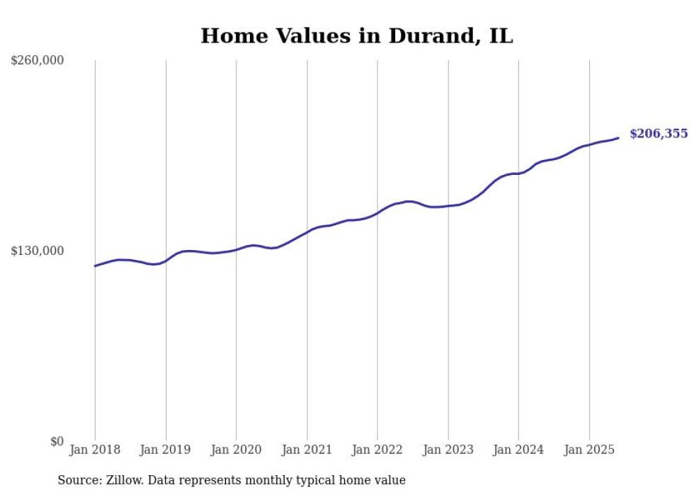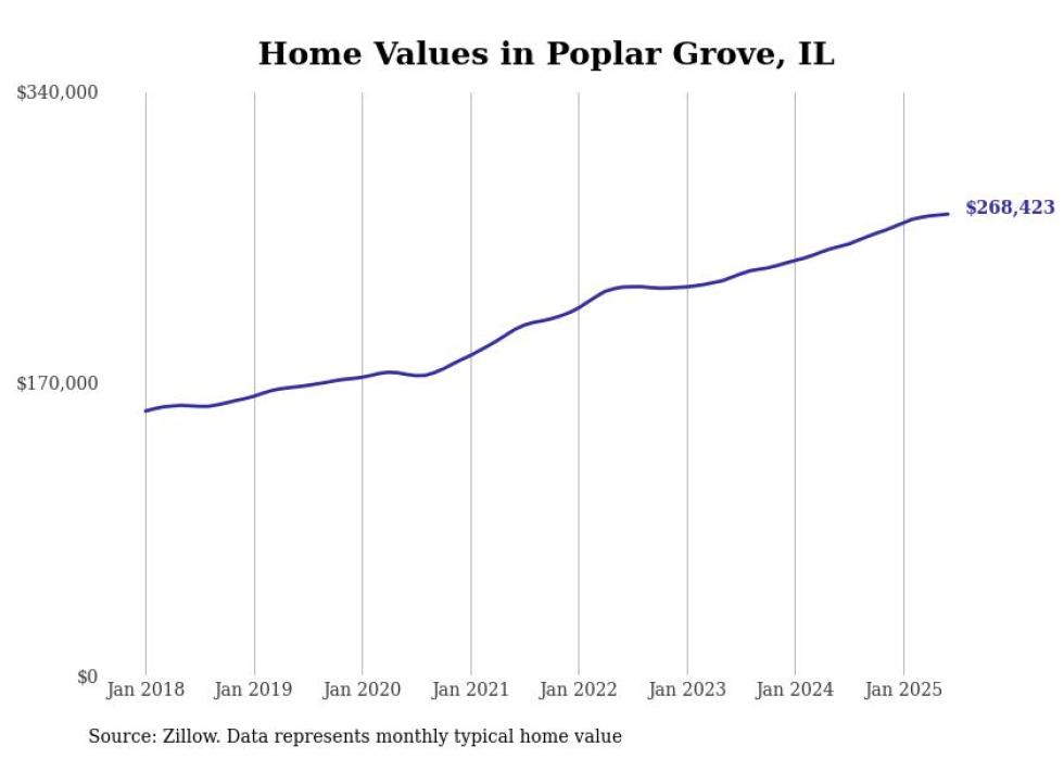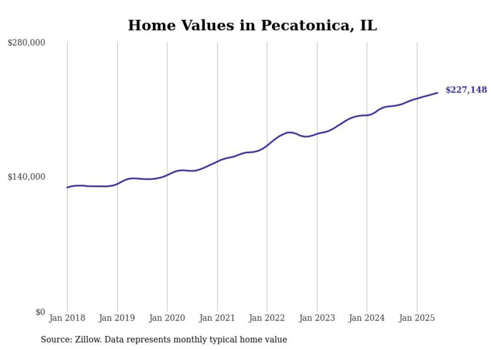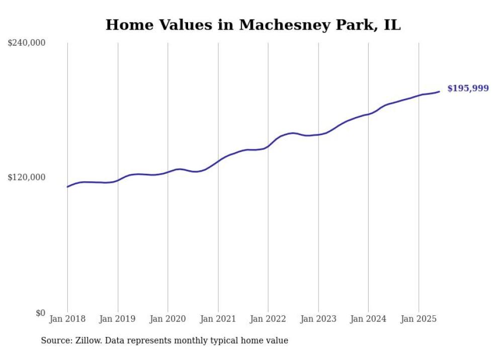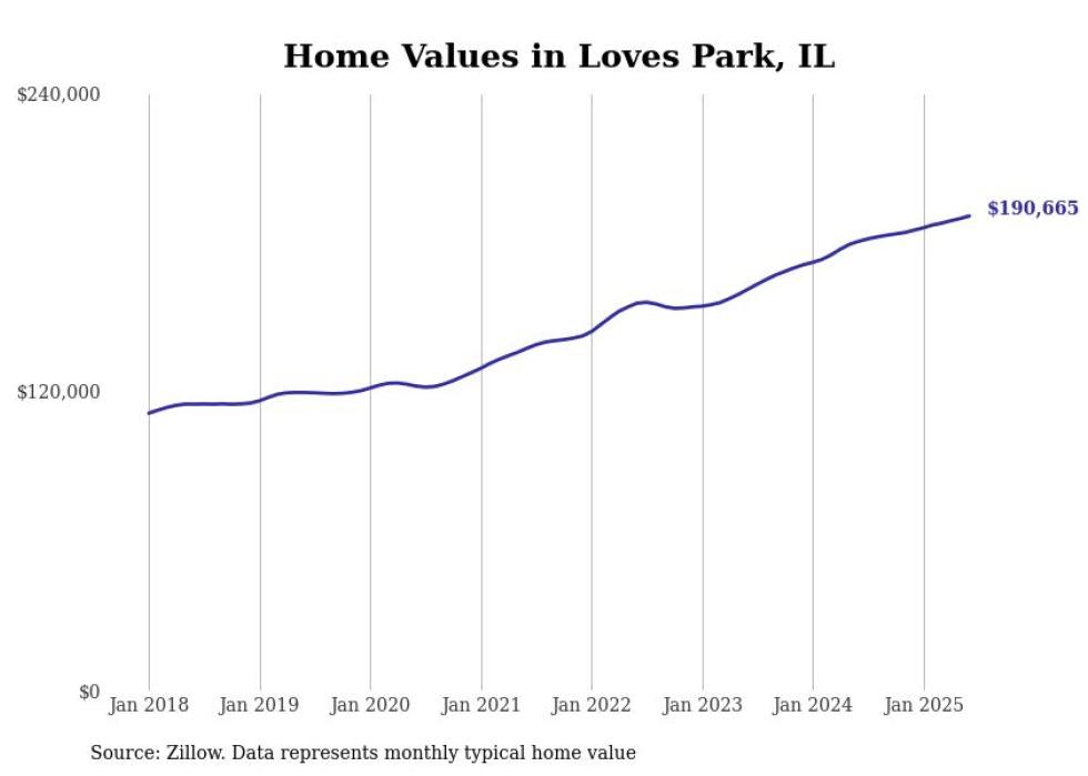 Stacker compiled a list of cities with the most expensive homes in the Rockford, IL metro area using data from Zillow. Charts show the monthly typical home value since January 2018.