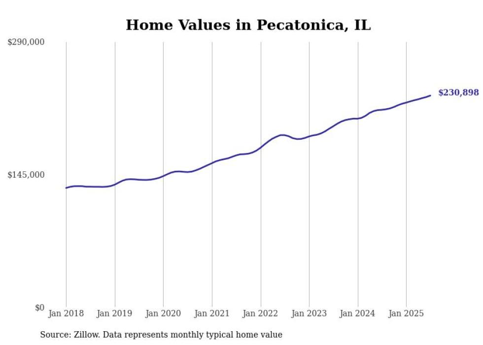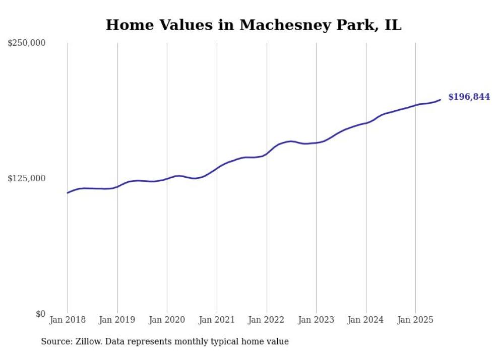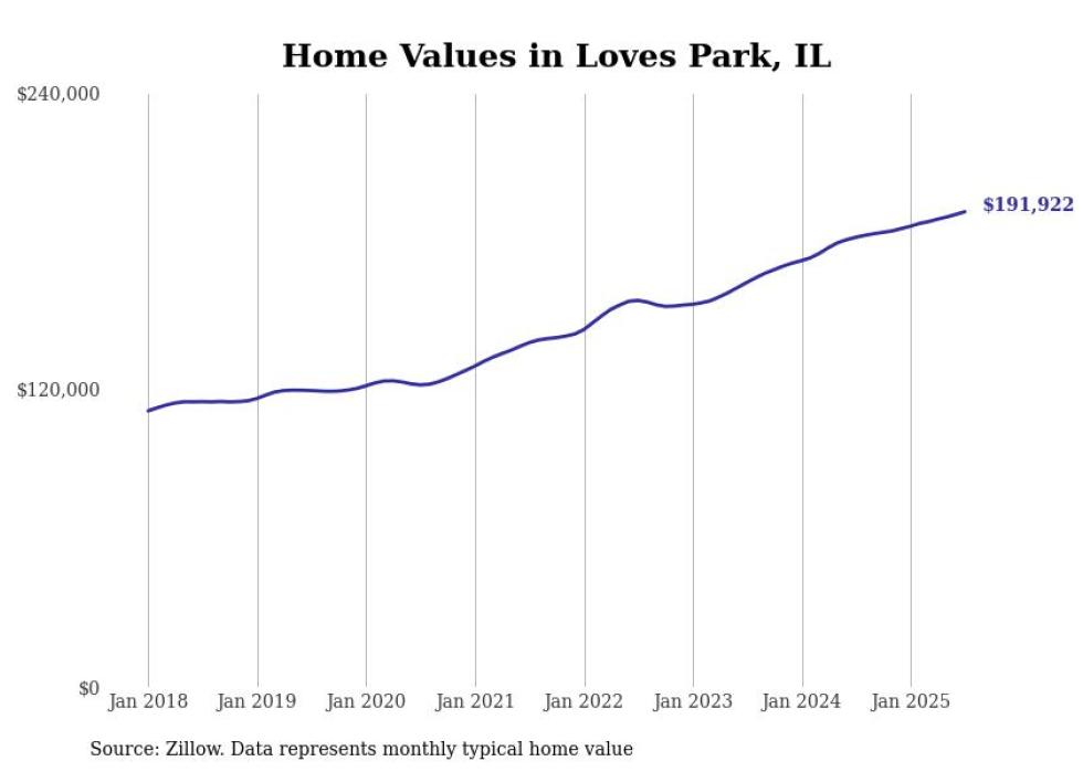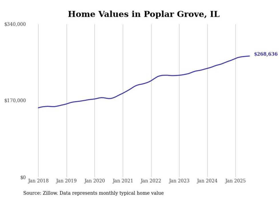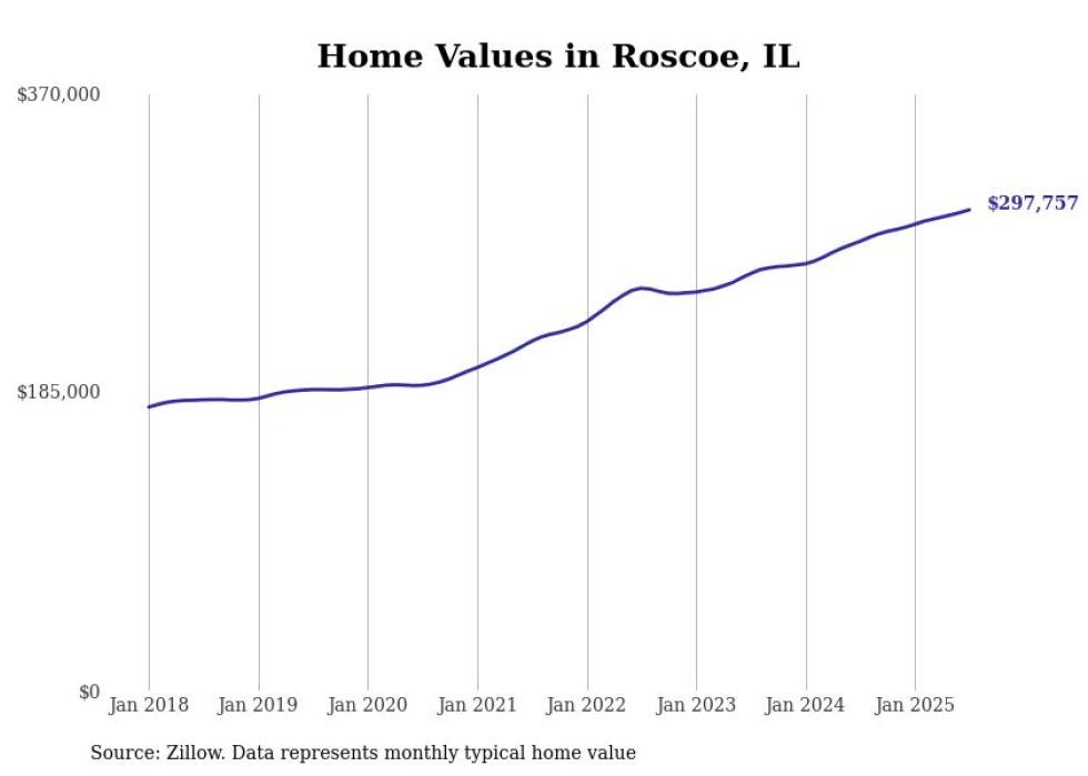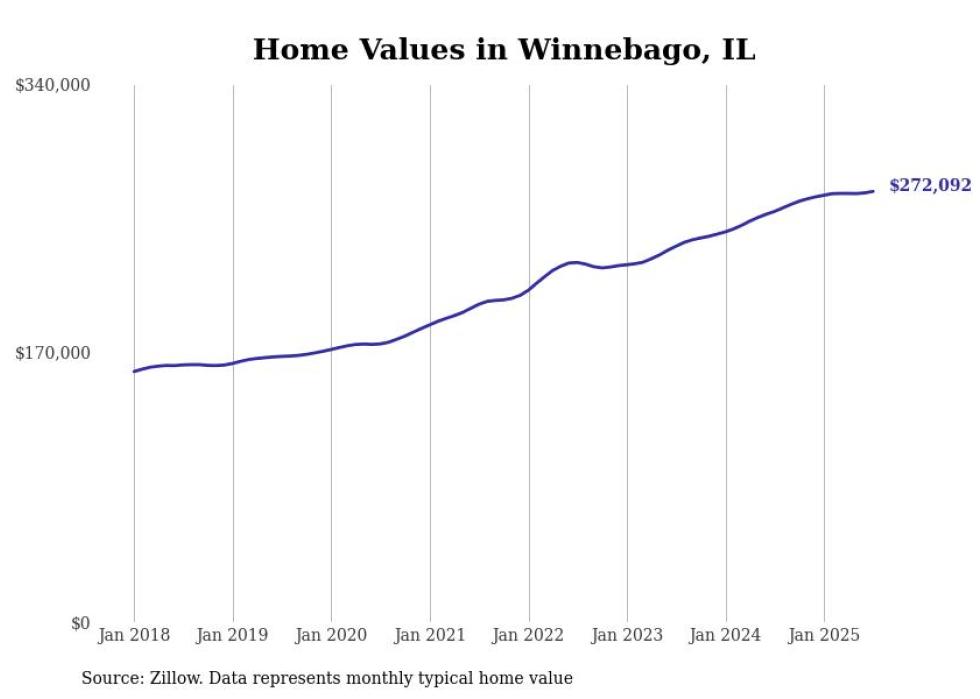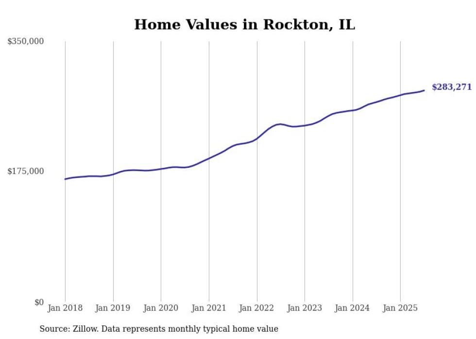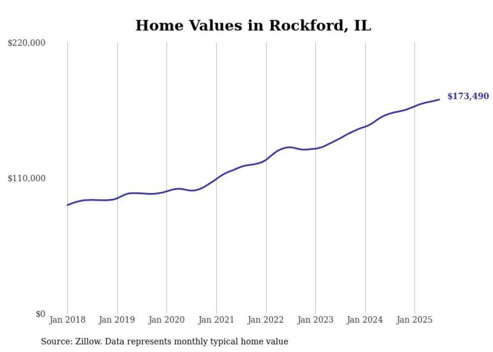 Stacker compiled a list of cities with the most expensive homes in the Rockford metro area using data from Zillow. Charts show the monthly typical home value since January 2018. All 16 cities and towns with data available were included in the list.