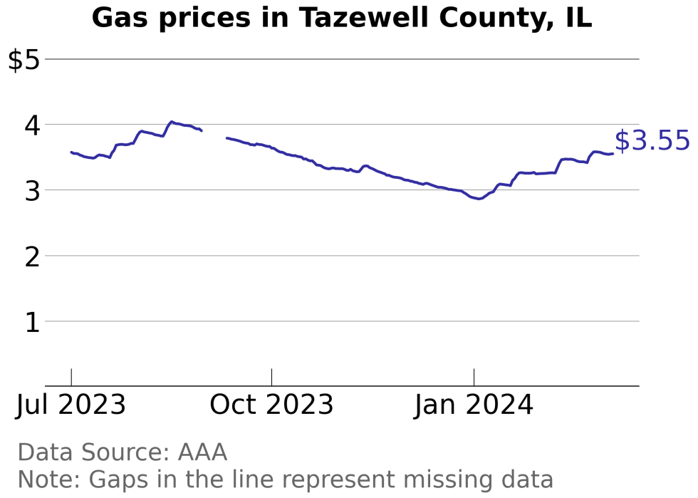How gas prices have changed in Tazewell County, Illinois in the last week
