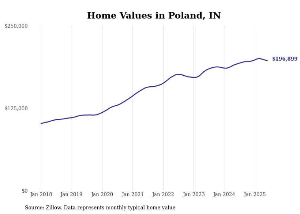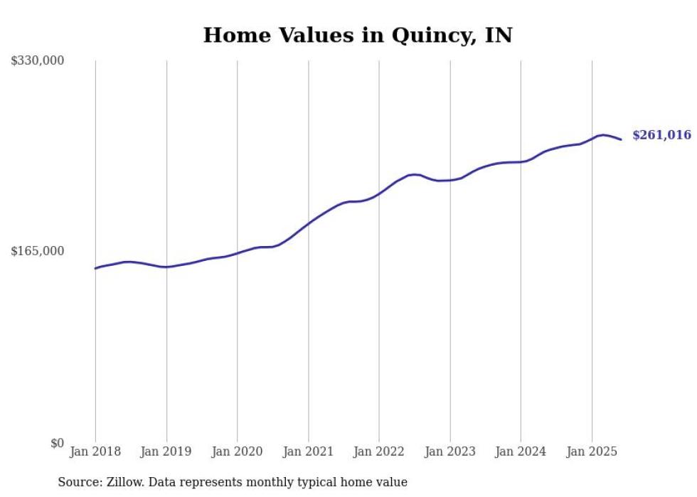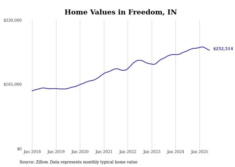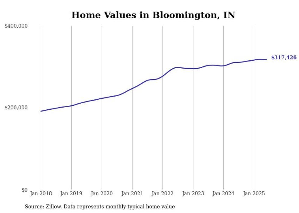 Stacker compiled a list of cities with the most expensive homes in the Bloomington, IN metro area using data from Zillow. Charts show the monthly typical home value since January 2018.