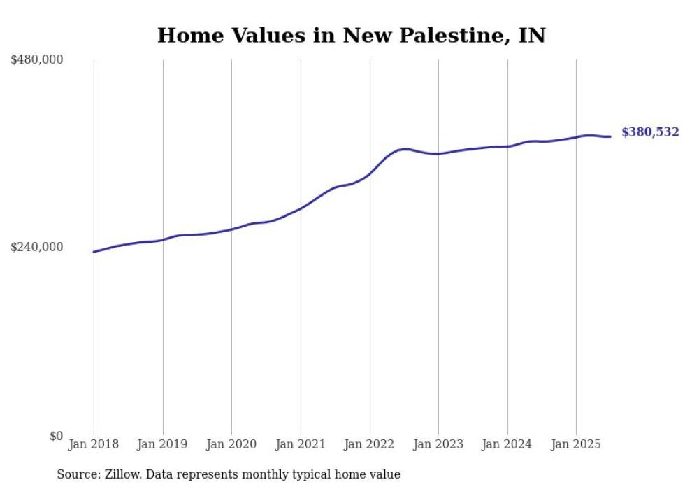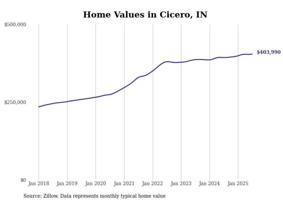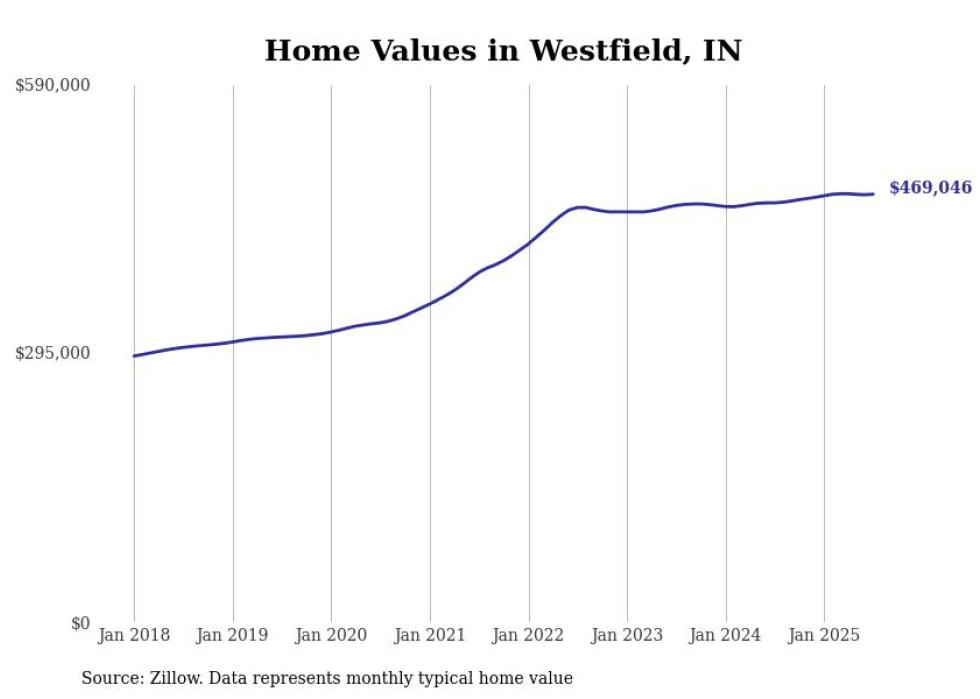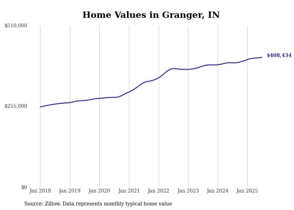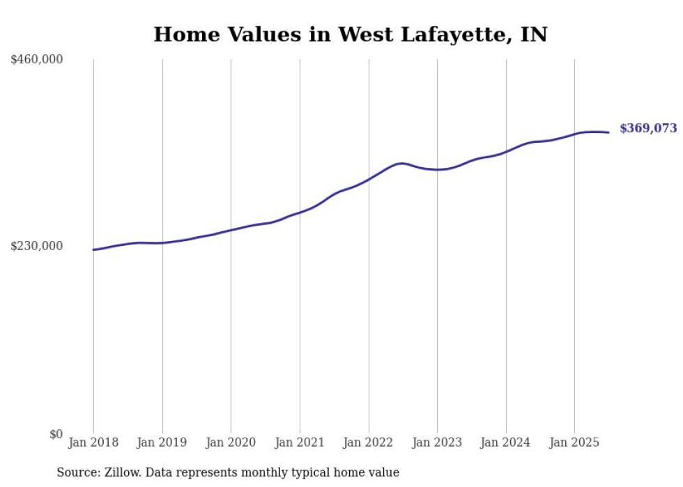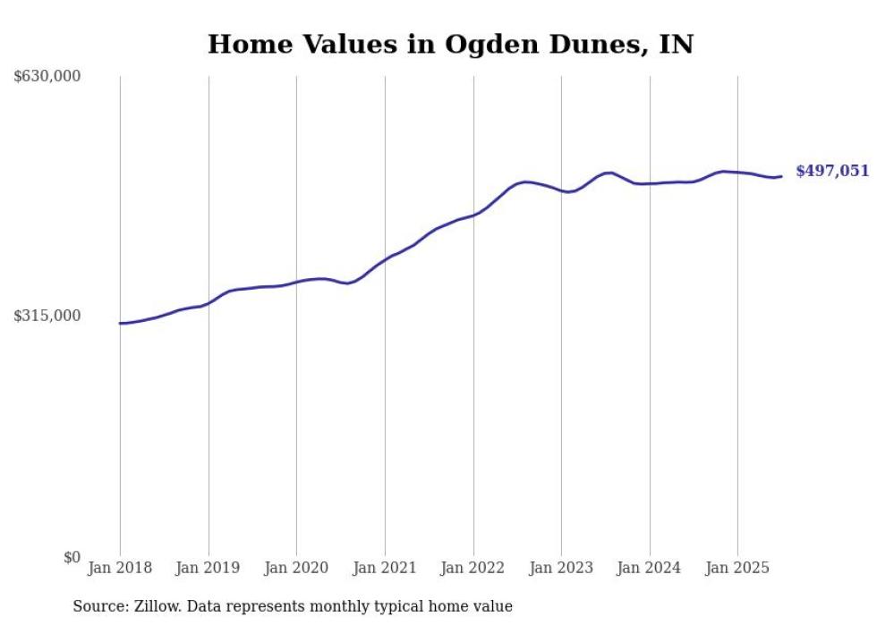 Stacker compiled a list of cities with the most expensive homes in Indiana using data from Zillow. Cities are ranked by the Zillow Home Values Index for all homes as of July 2025. The charts in this story were created automatically using Matplotlib.