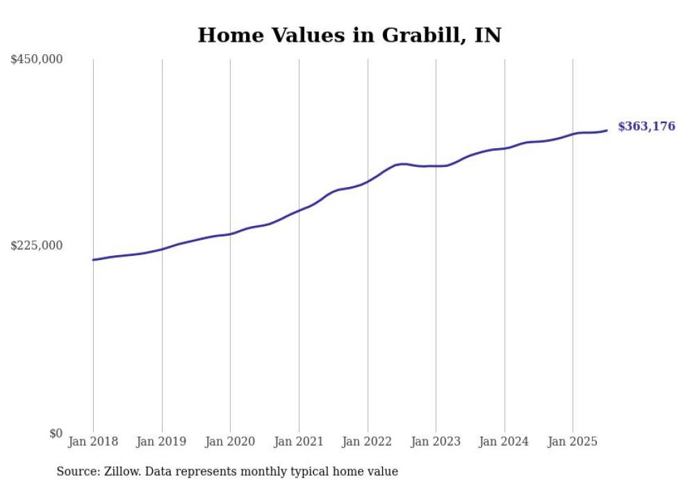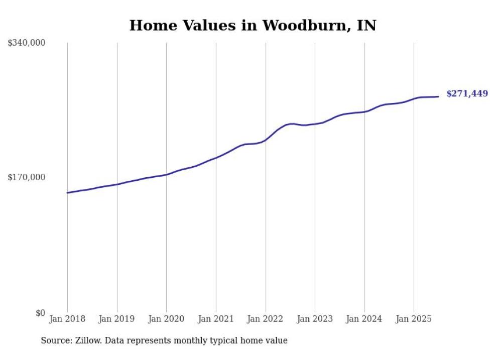 Stacker compiled a list of cities with the most expensive homes in the Fort Wayne metro area using data from Zillow. Charts show the monthly typical home value since January 2018. All 13 cities and towns with data available were included in the list.