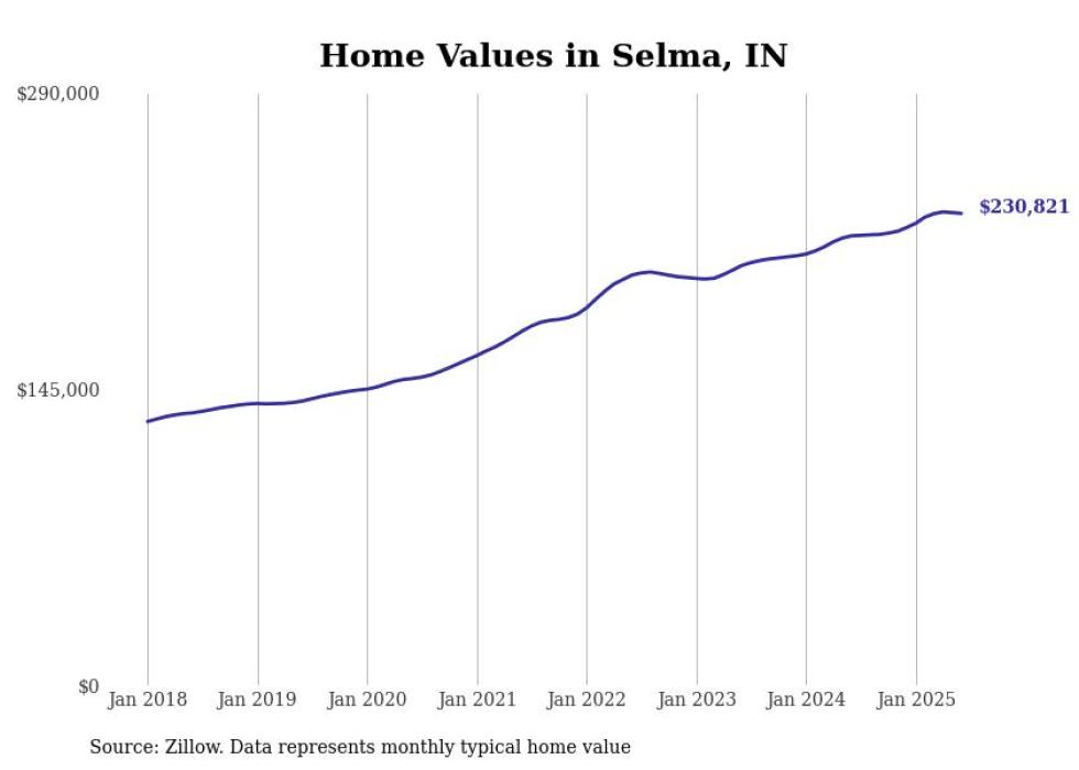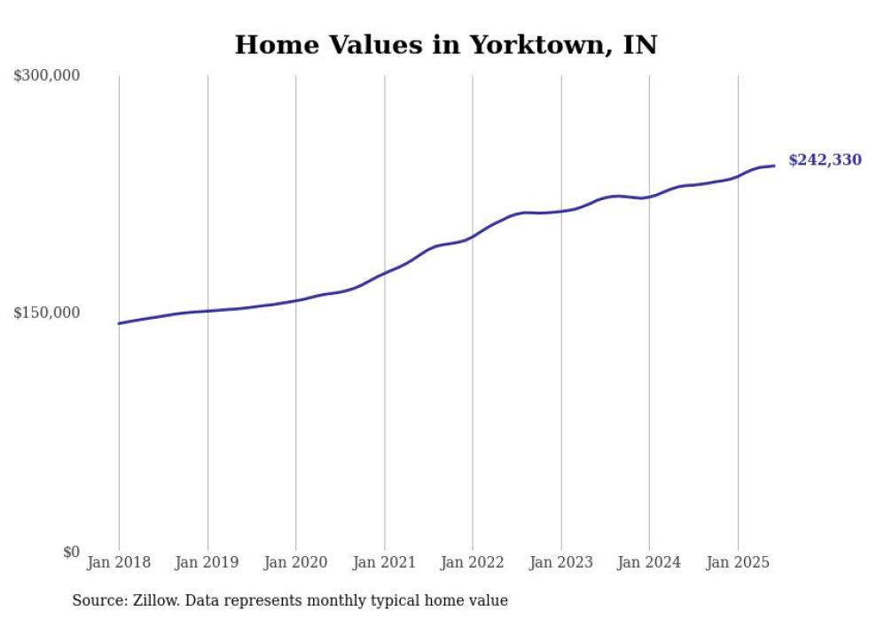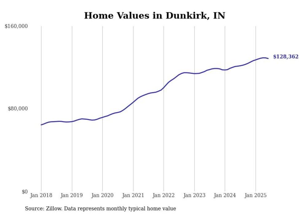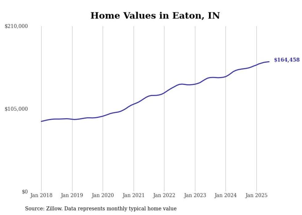 Stacker compiled a list of cities with the most expensive homes in the Muncie, IN metro area using data from Zillow. Charts show the monthly typical home value since January 2018.