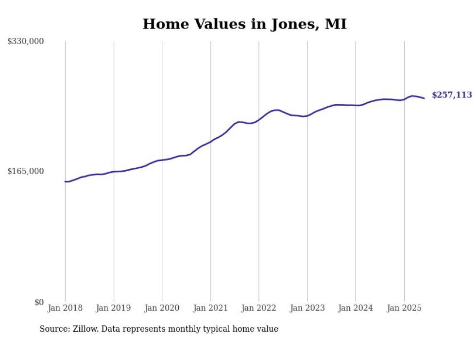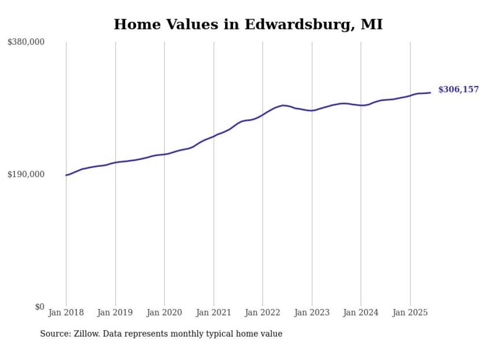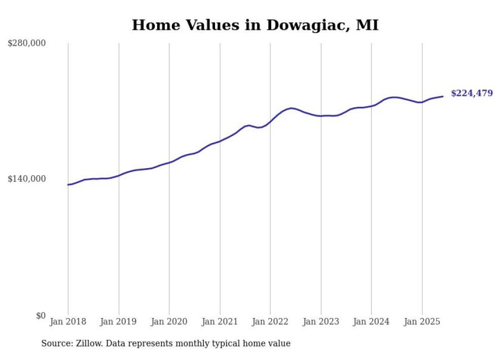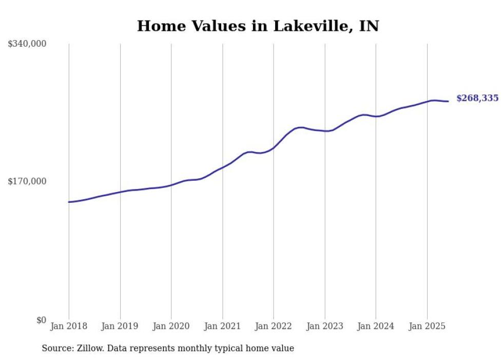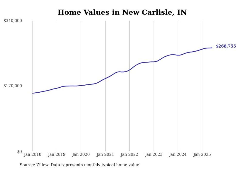 Stacker compiled a list of cities with the most expensive homes in the South Bend-Mishawaka, IN-MI metro area using data from Zillow. Charts show the monthly typical home value since January 2018.