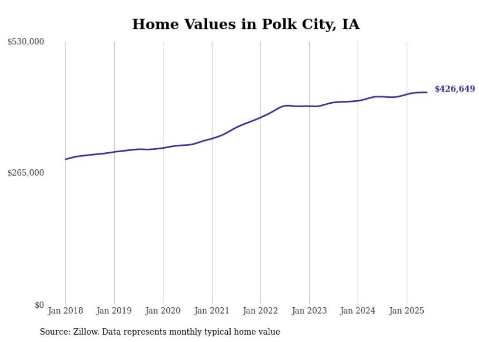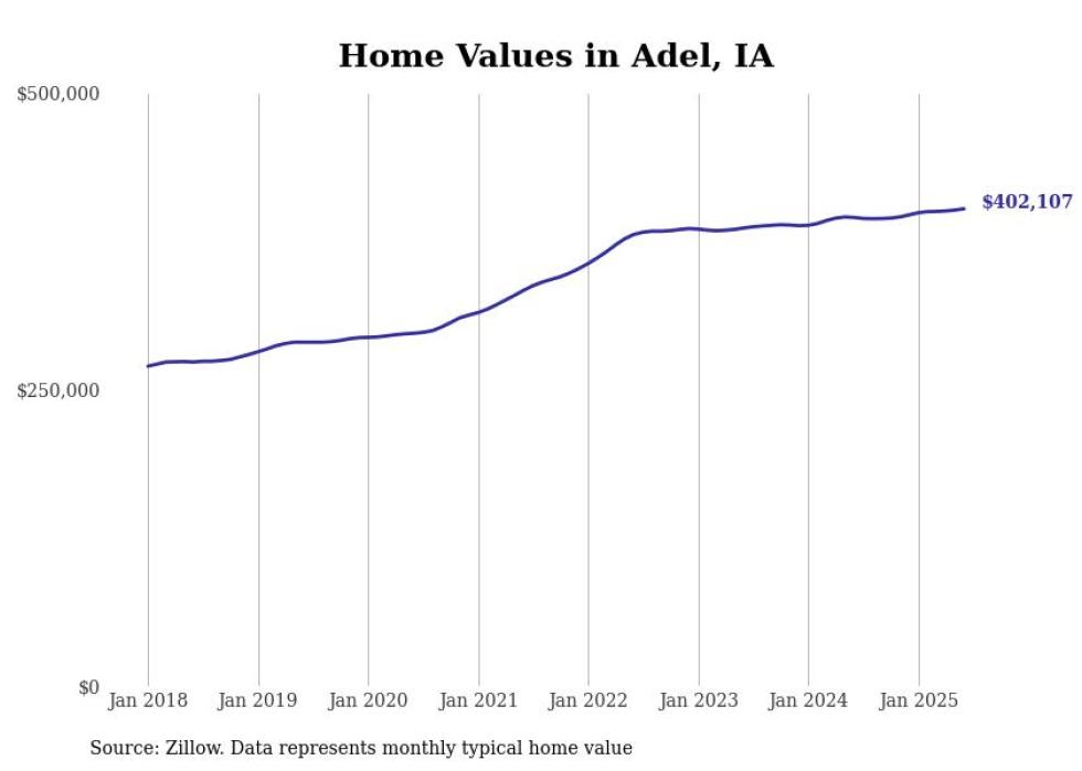 Cities with the fastest-growing home prices in the Des Moines metro area