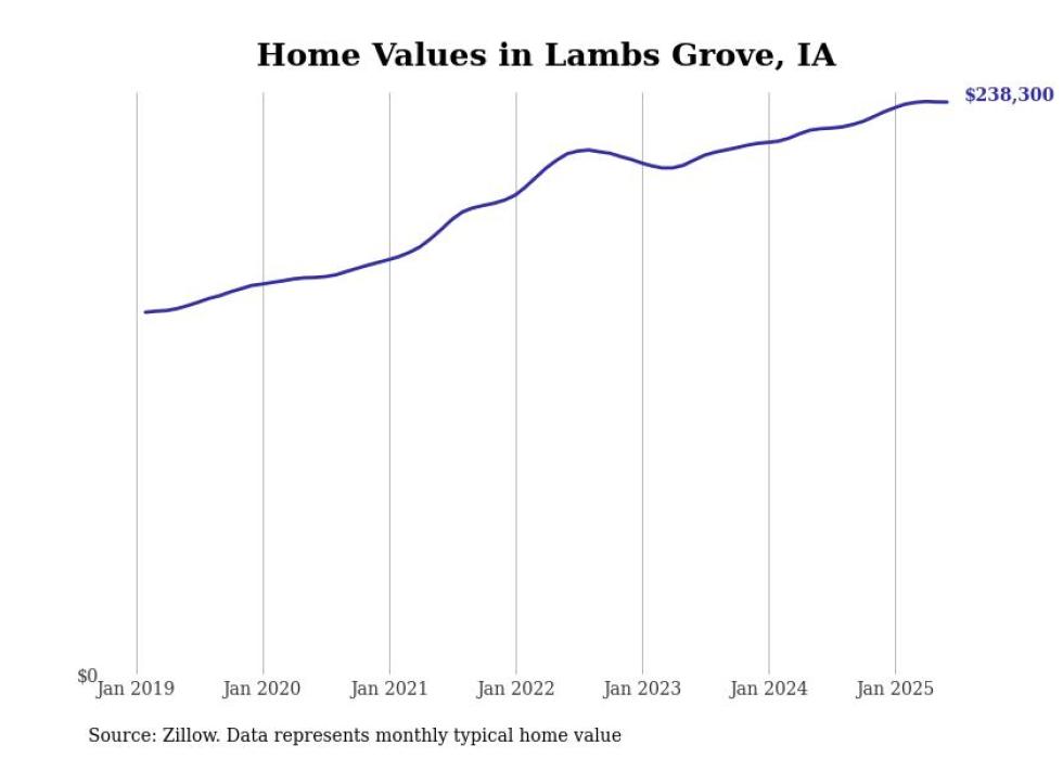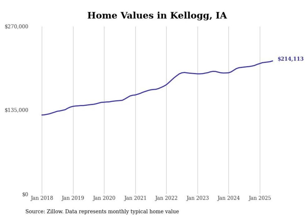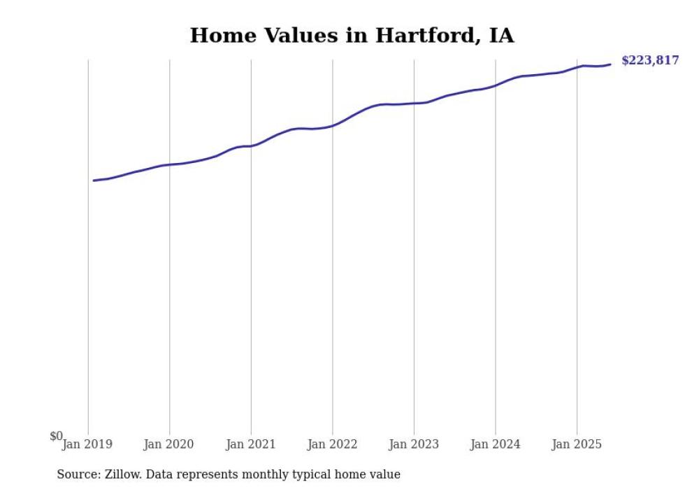 Stacker compiled a list of cities with the most expensive homes in the Des Moines-West Des Moines, IA metro area using data from Zillow. Charts show the monthly typical home value since January 2018.