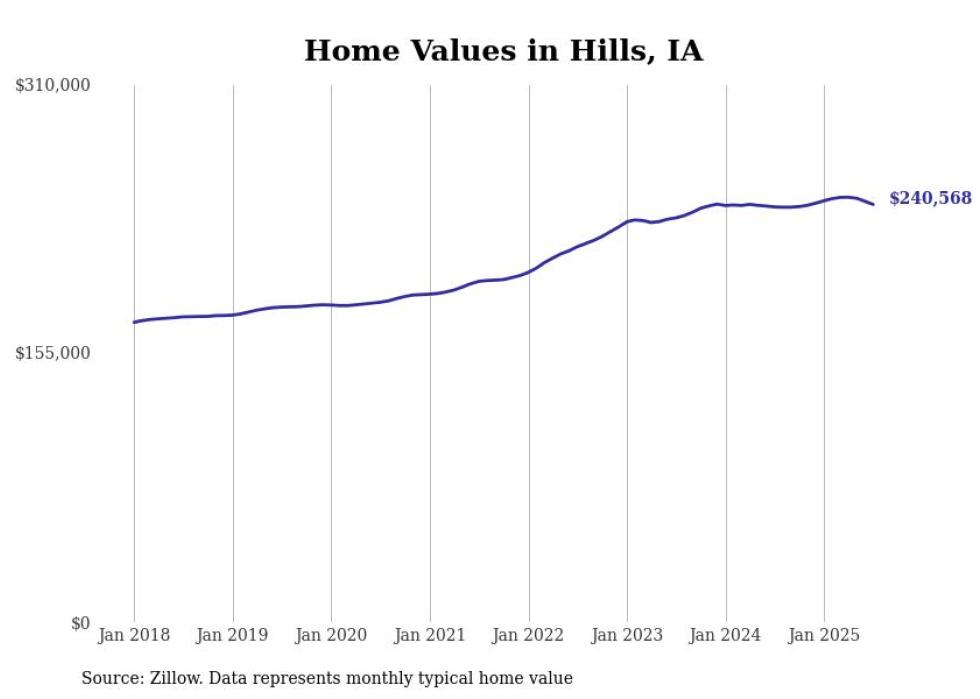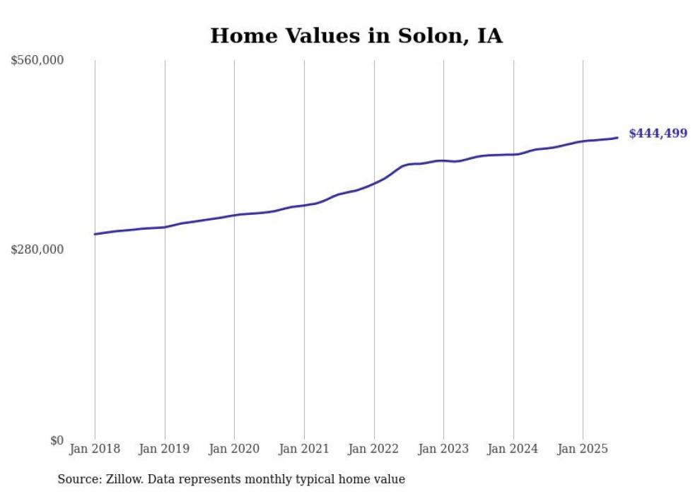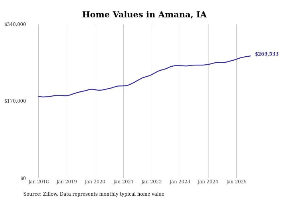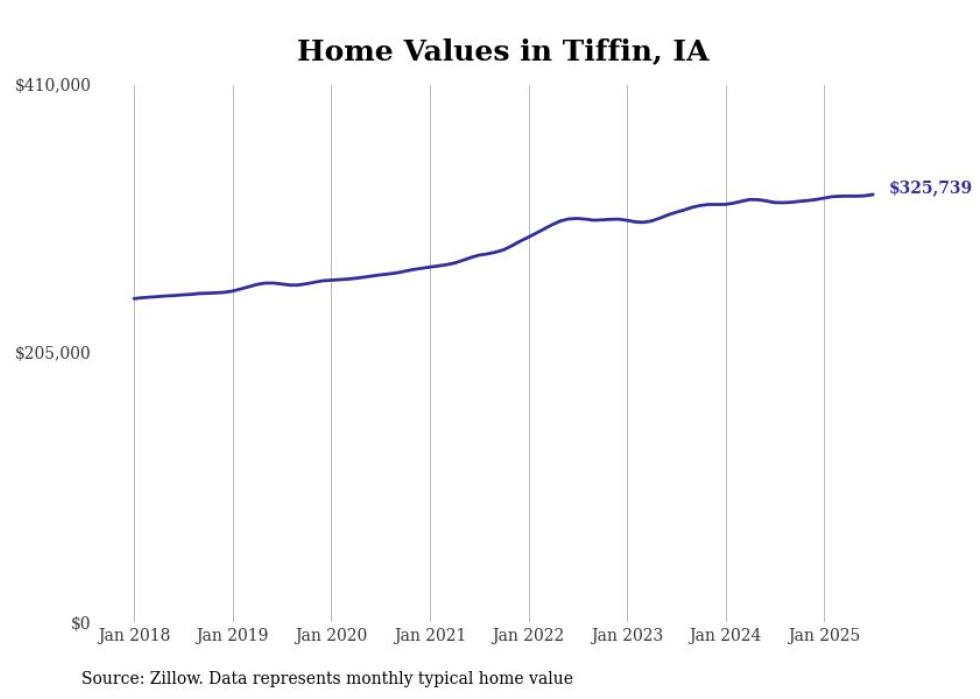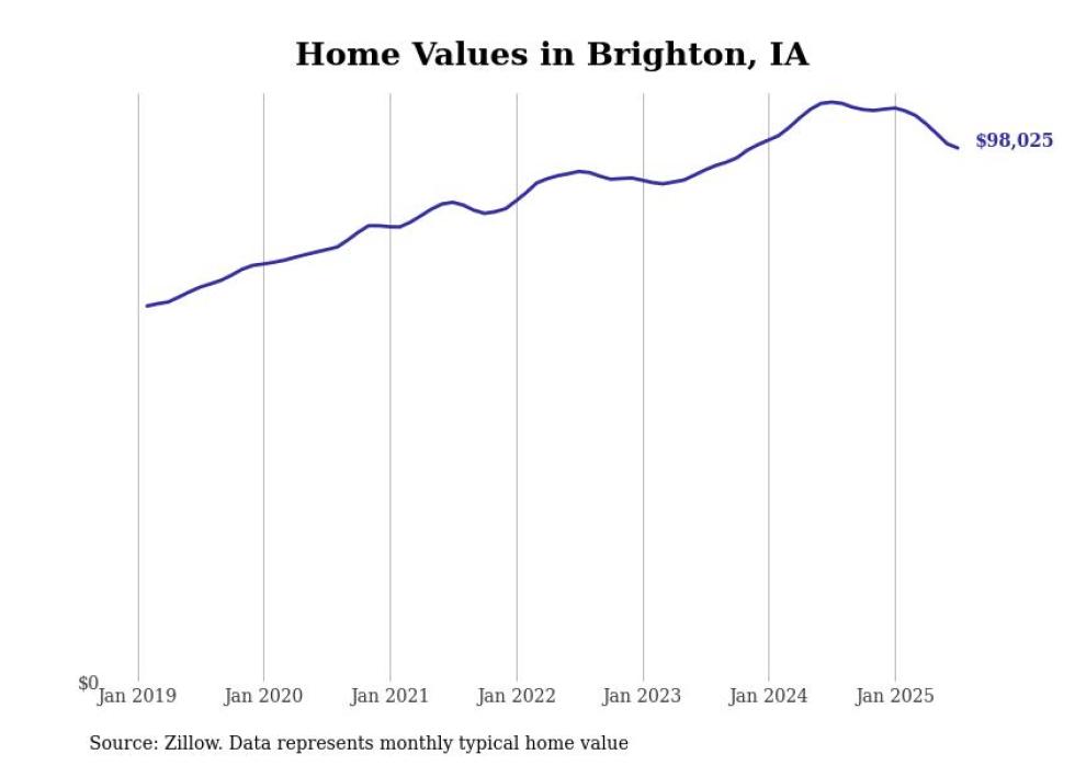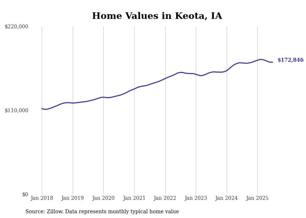 Stacker compiled a list of cities with the most expensive homes in the Iowa City metro area using data from Zillow. Charts show the monthly typical home value since January 2018. All 21 cities and towns with data available were included in the list.