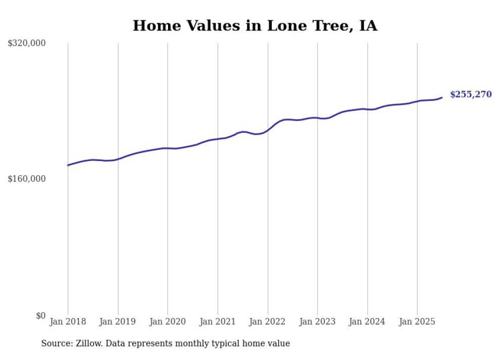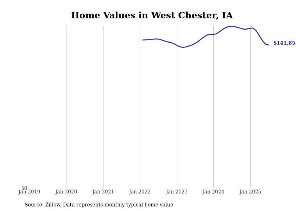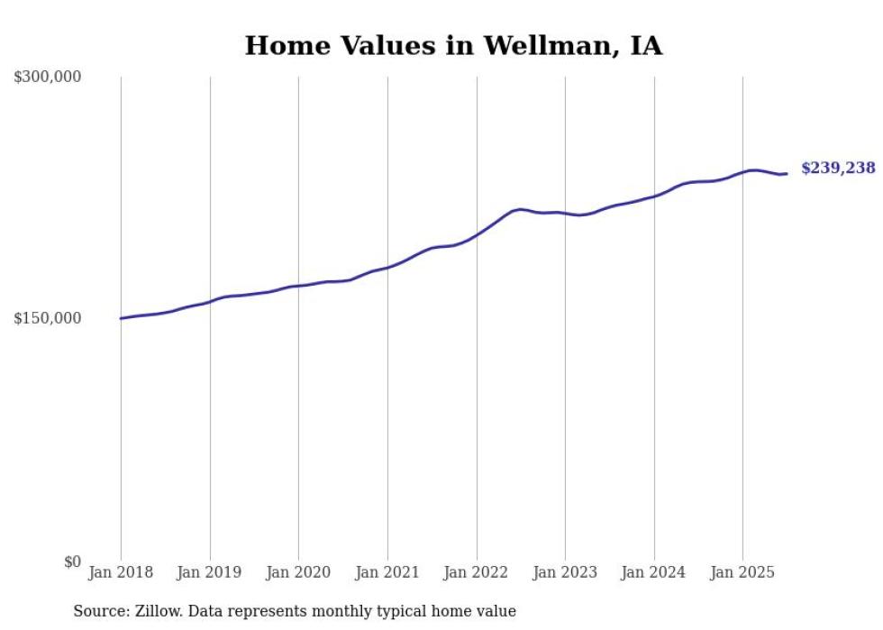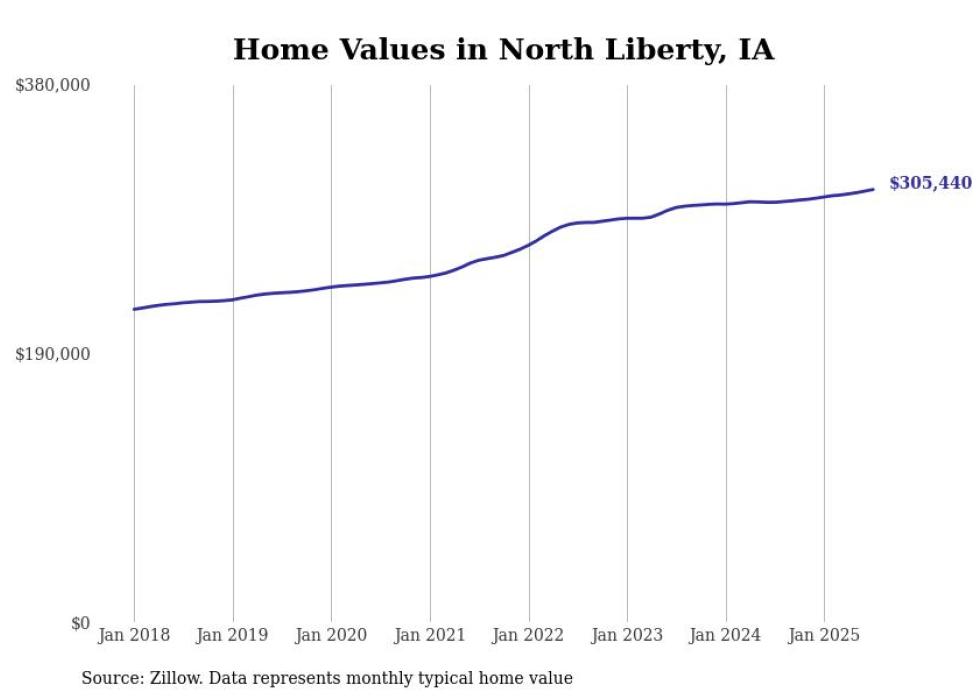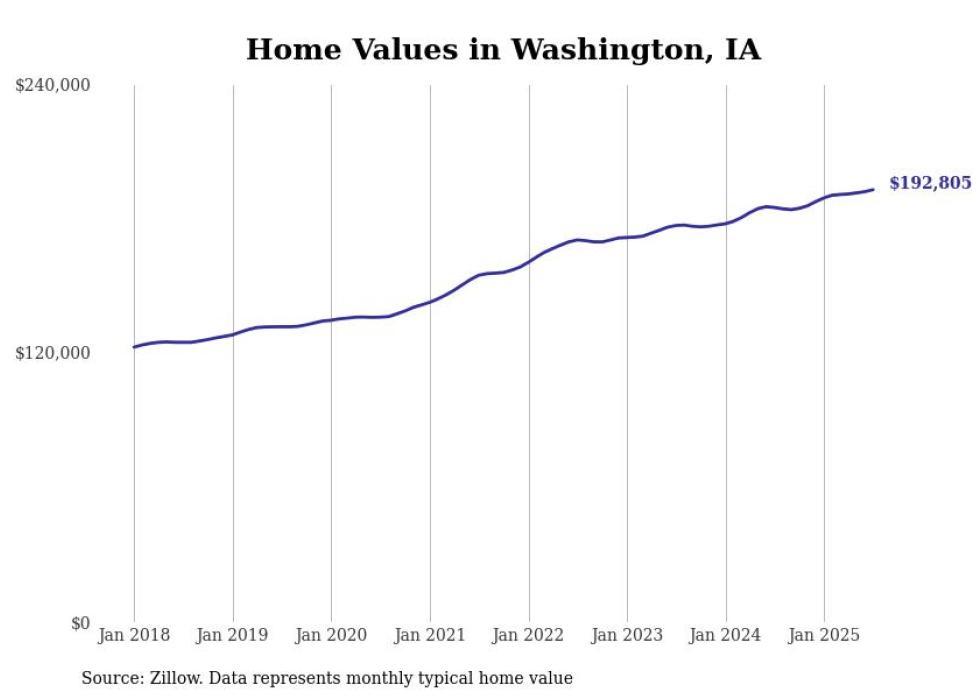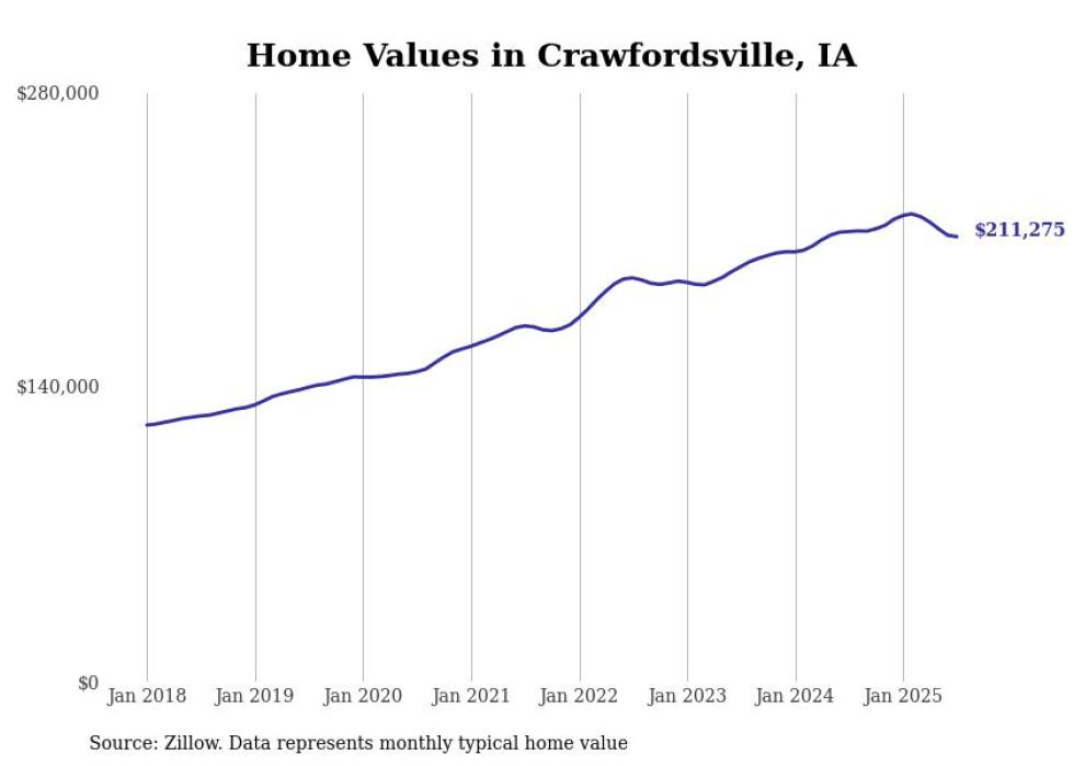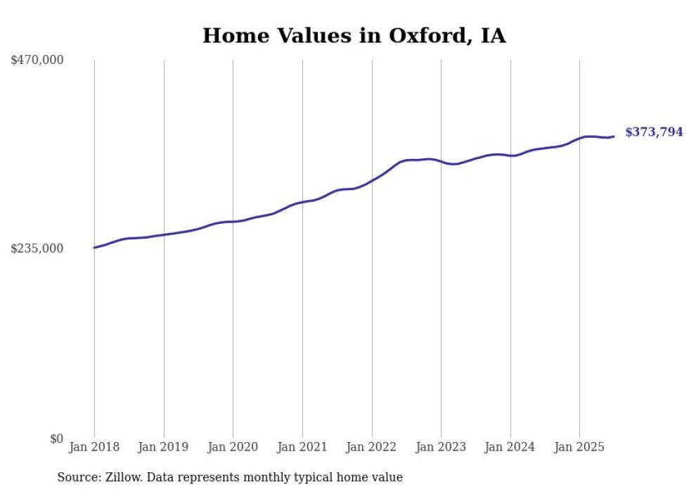 Stacker compiled a list of cities with the most expensive homes in the Iowa City metro area using data from Zillow. Charts show the monthly typical home value since January 2018. All 21 cities and towns with data available were included in the list.