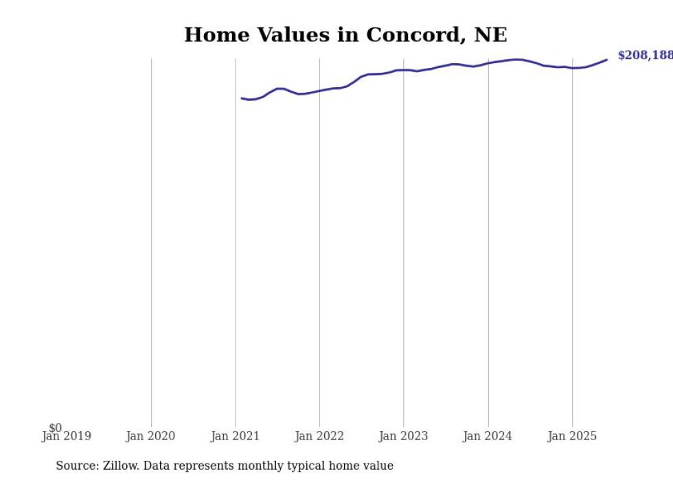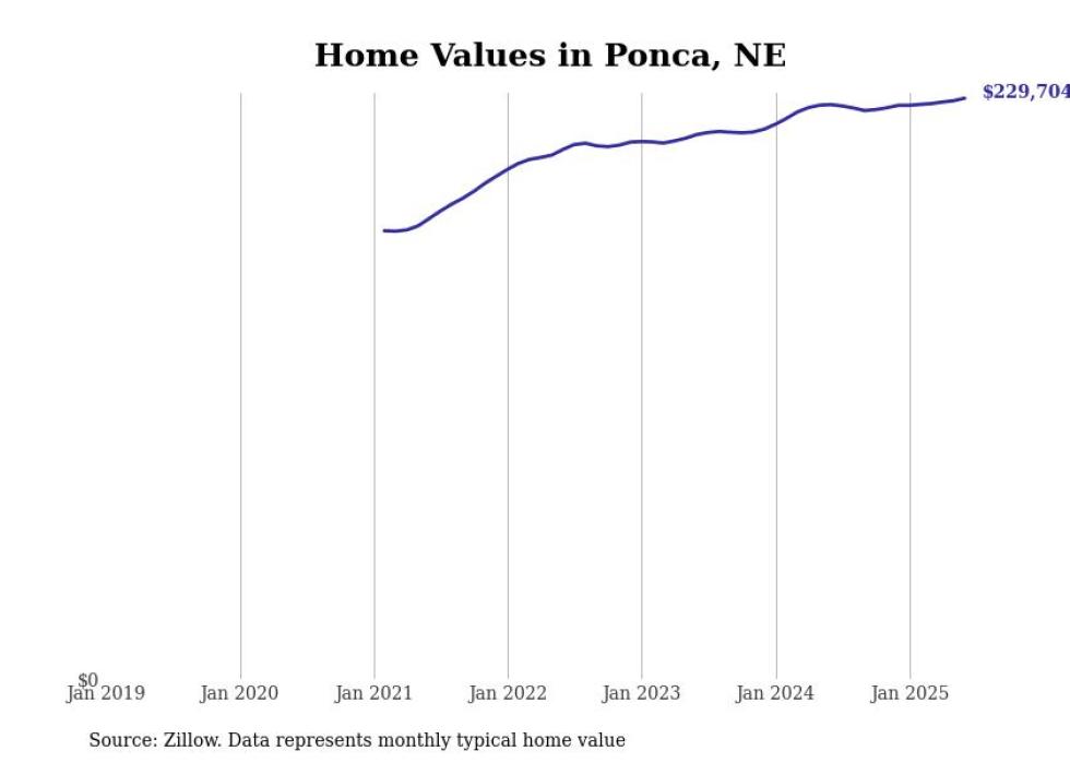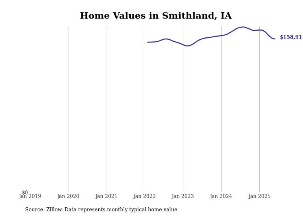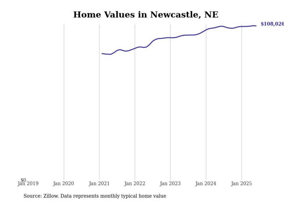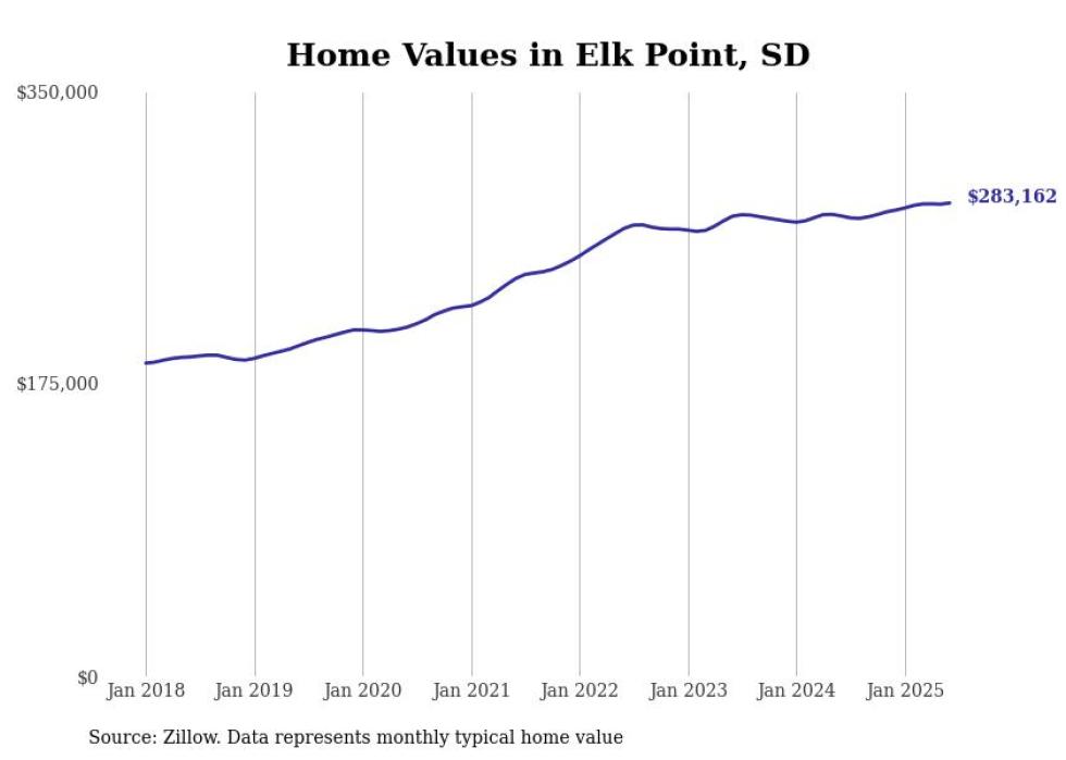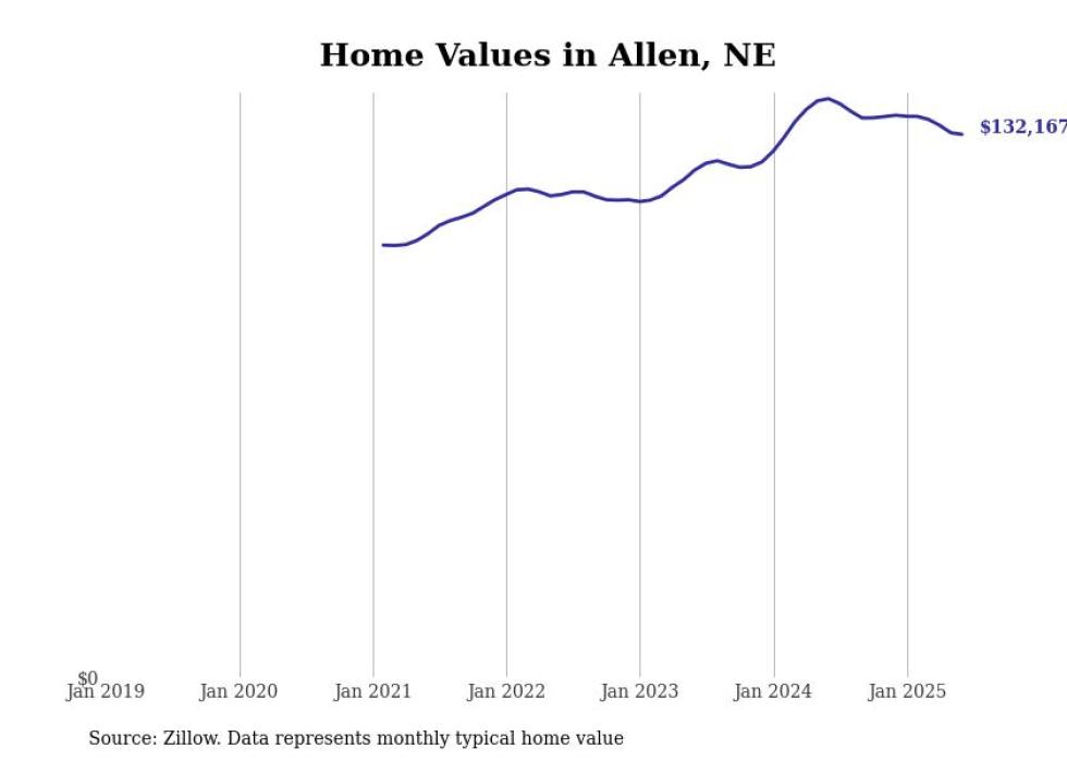Stacker compiled a list of cities with the most expensive homes in the Sioux City, IA-NE-SD metro area using data from Zillow. Charts show the monthly typical home value since January 2018.