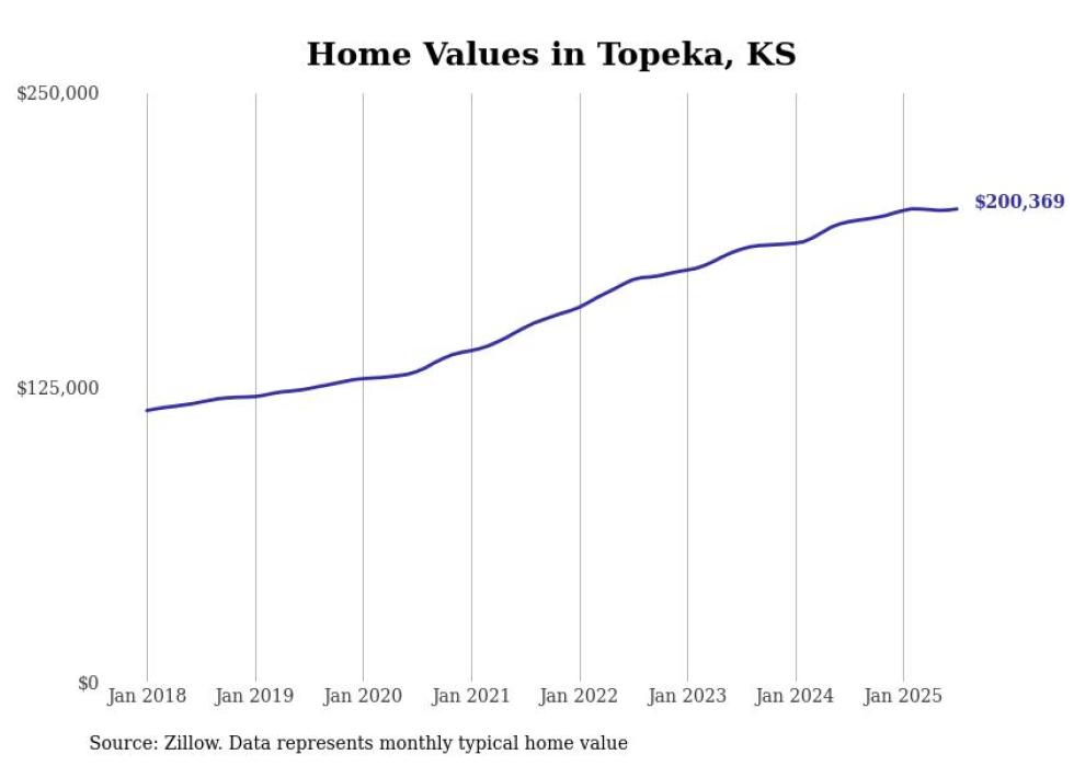 Stacker compiled a list of cities with the most expensive homes in the Topeka metro area using data from Zillow. Charts show the monthly typical home value since January 2018. Data was available for 38 cities and towns.