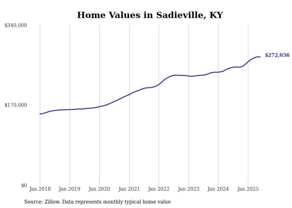 Stacker compiled a list of cities with the most expensive homes in the Lexington-Fayette, KY metro area using data from Zillow. Charts show the monthly typical home value since January 2018.