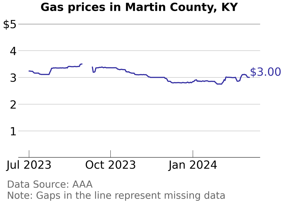 Stacker compiled statistics on gas prices in Martin County using data from AAA. Gas prices are current as of March 11.