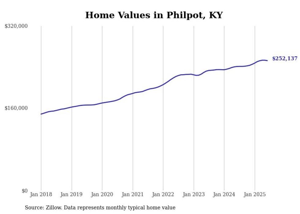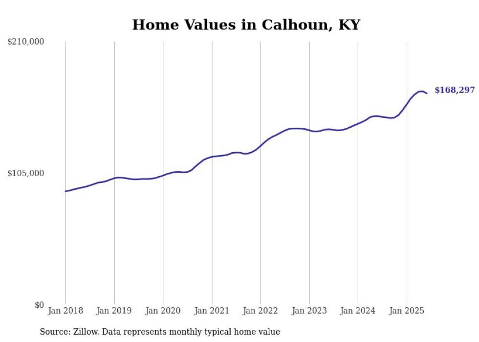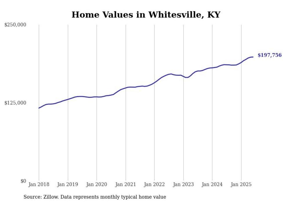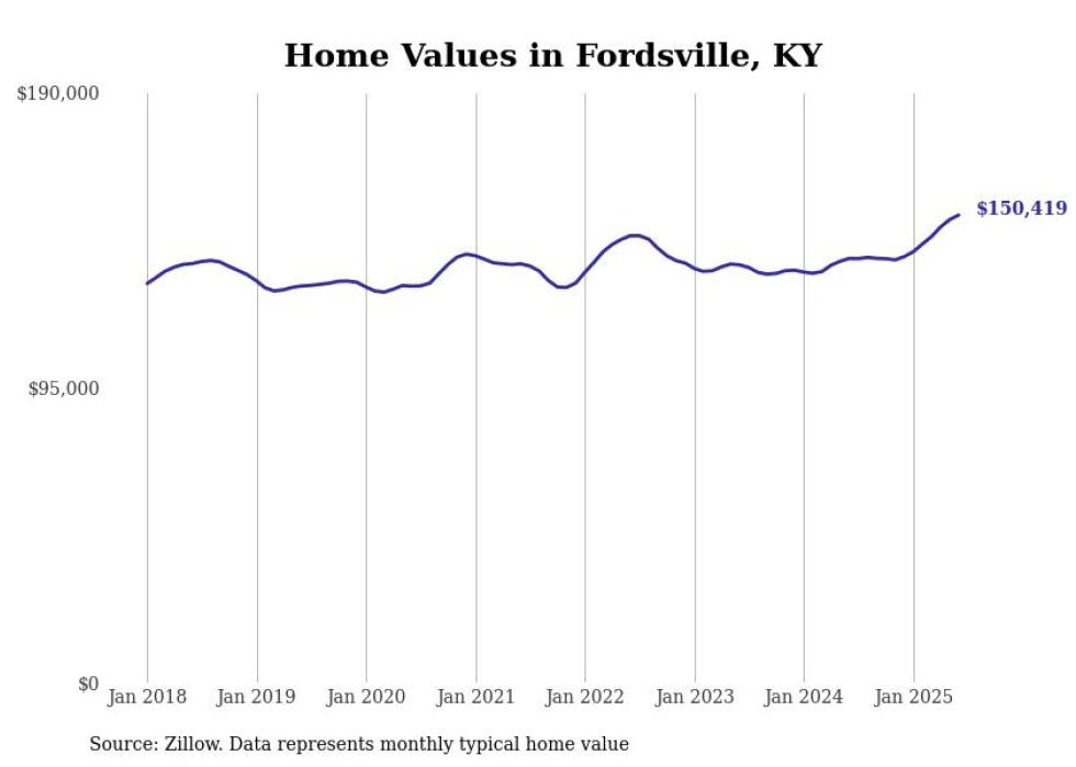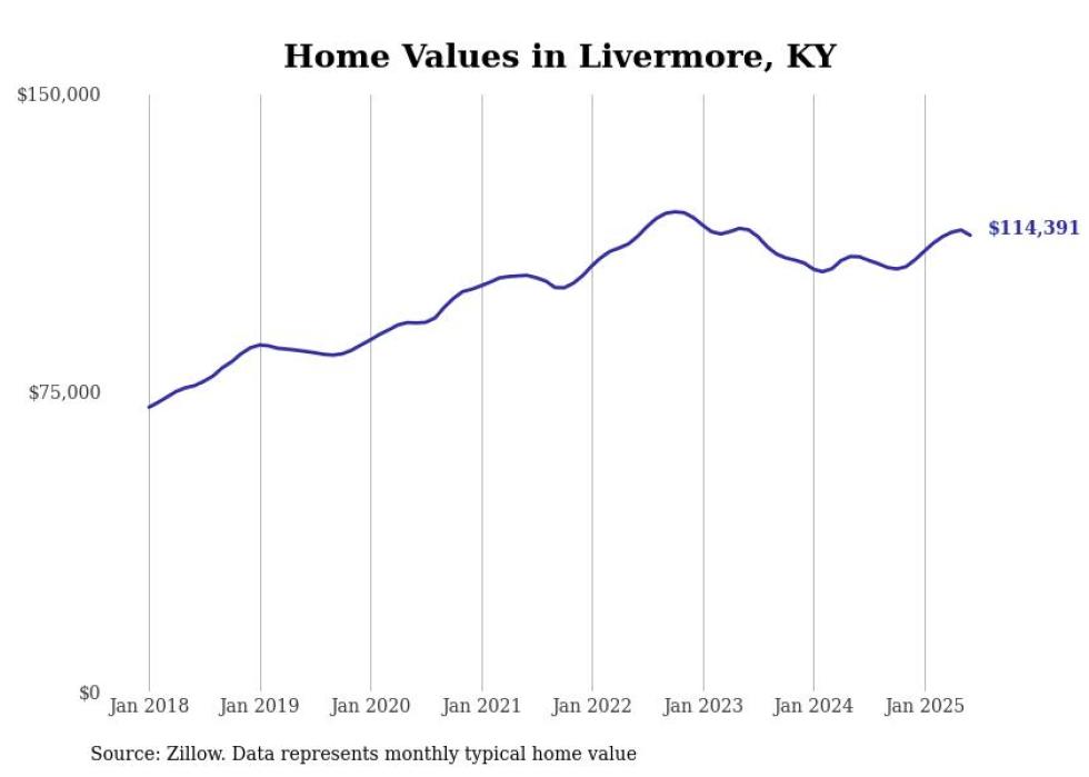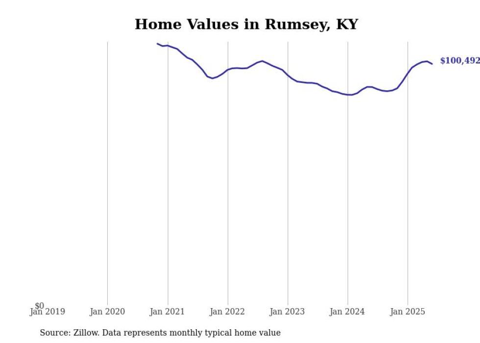 Stacker compiled a list of cities with the most expensive homes in the Owensboro, KY metro area using data from Zillow. Charts show the monthly typical home value since January 2018.